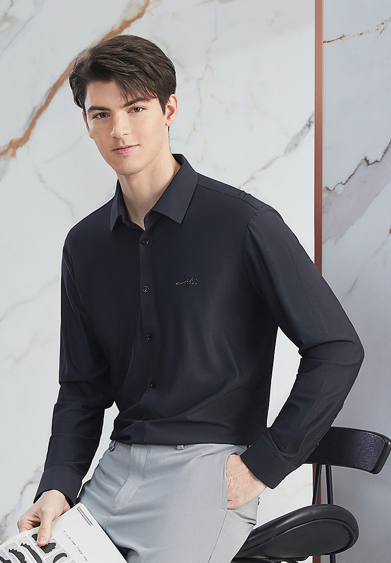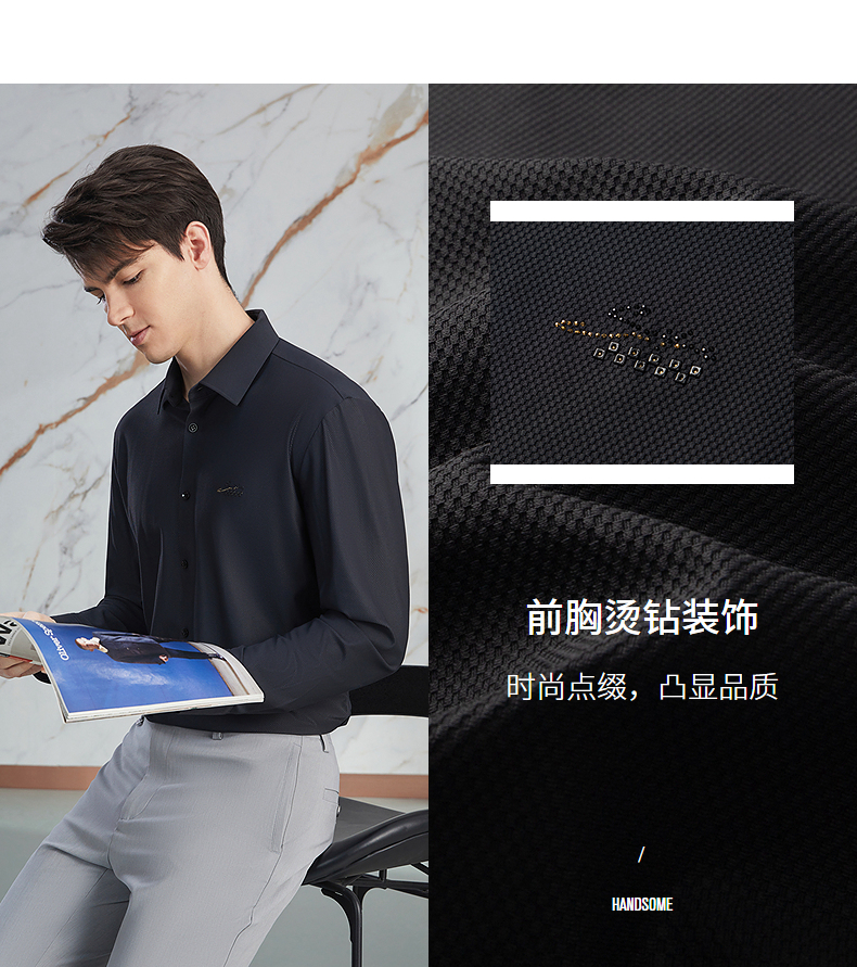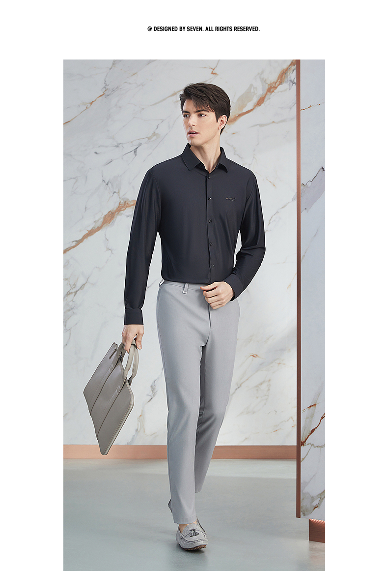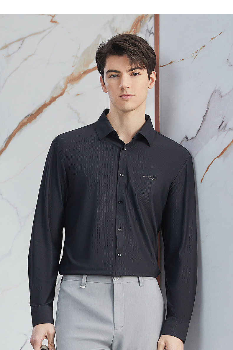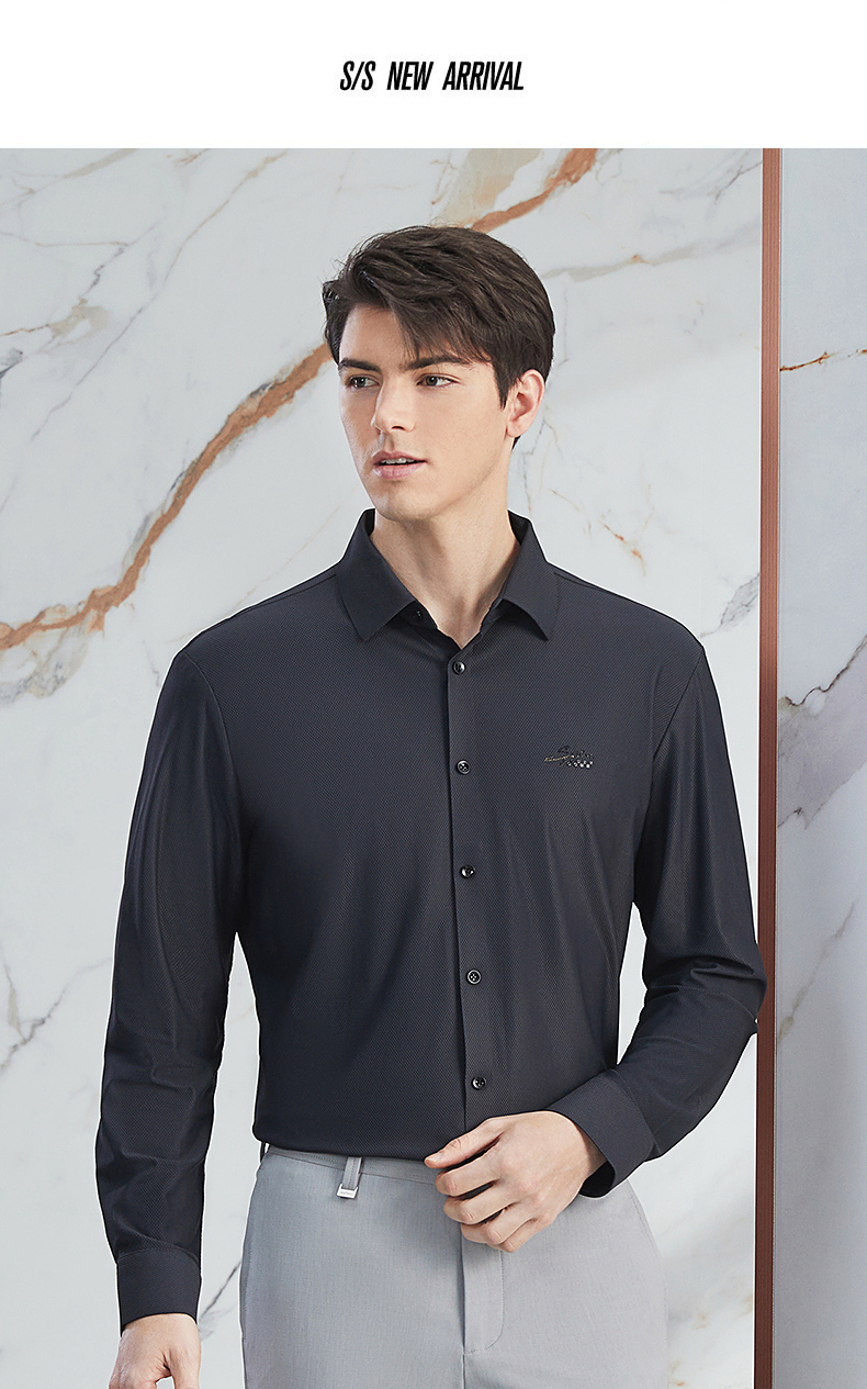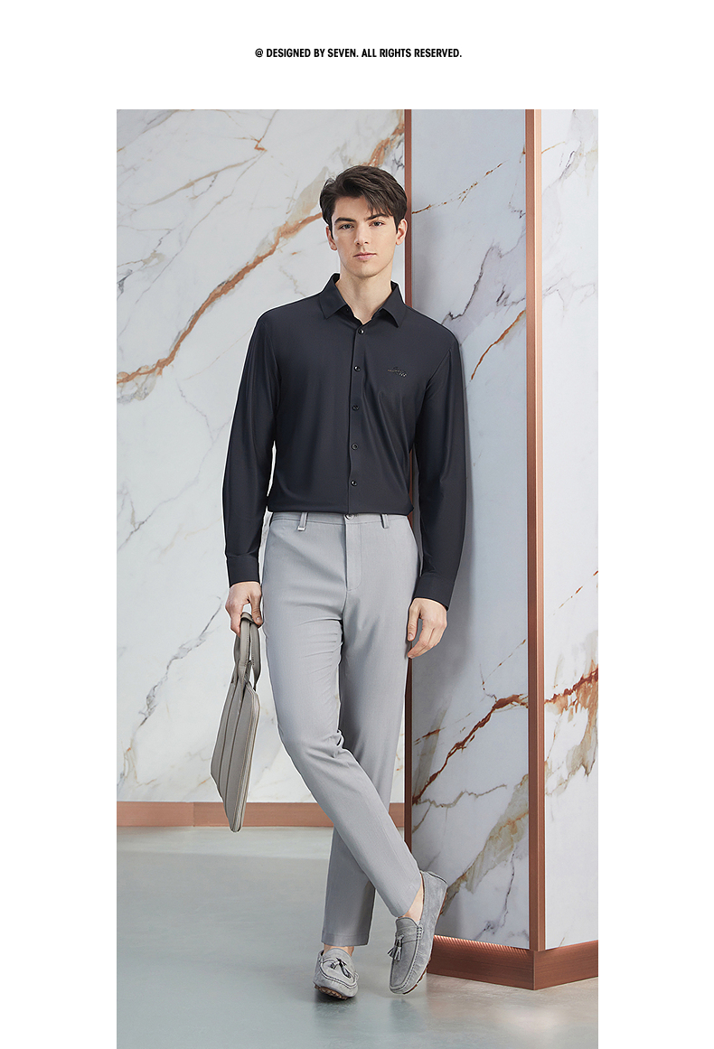 【高端系列】柒牌方领长袖衬衫男2024春秋季商务休闲男士弹力衬衣 126A71260
