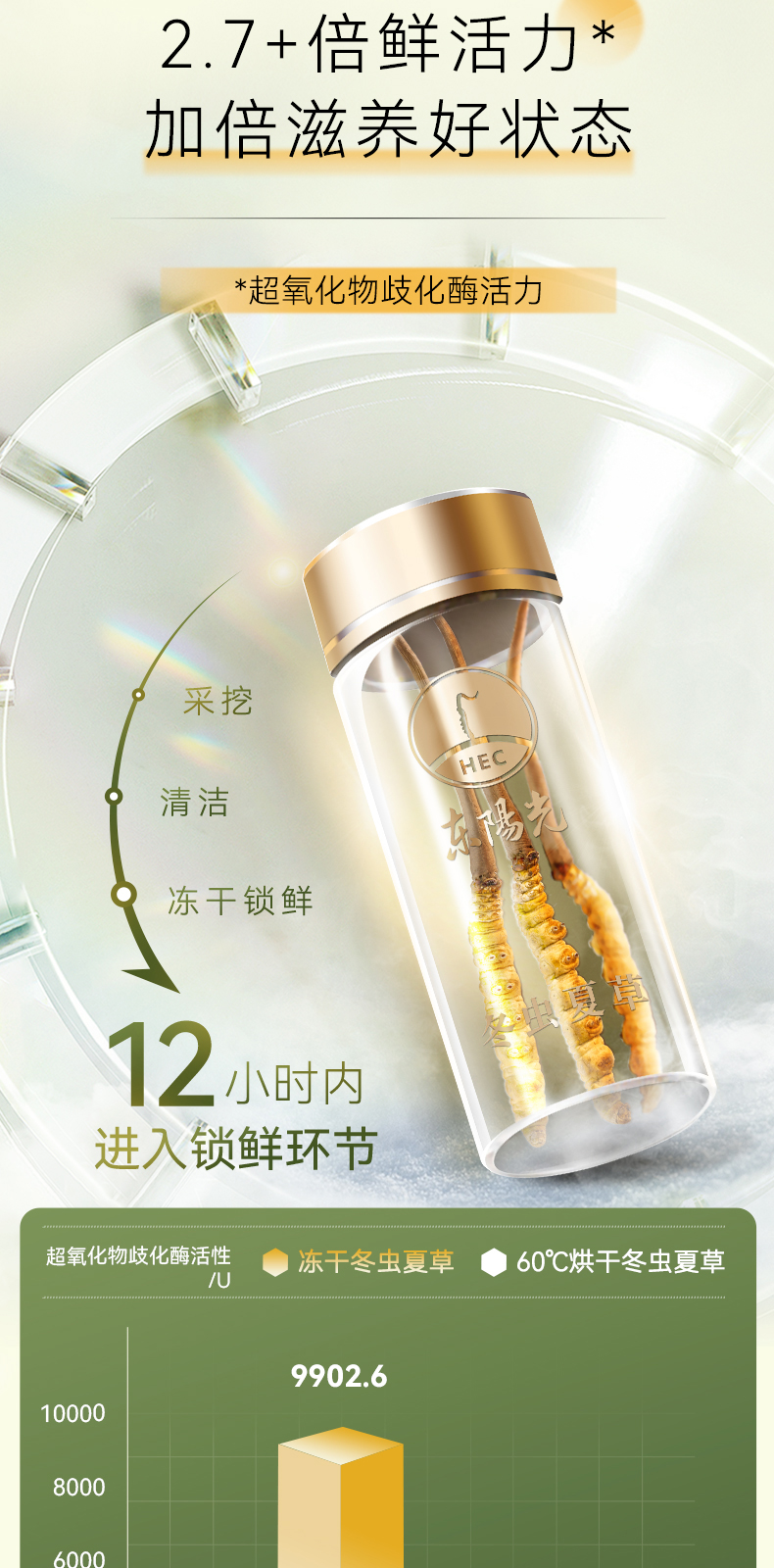 【小橙盒 】东阳光冬虫夏草 冻干鲜虫草7根装 天赐的声音同款