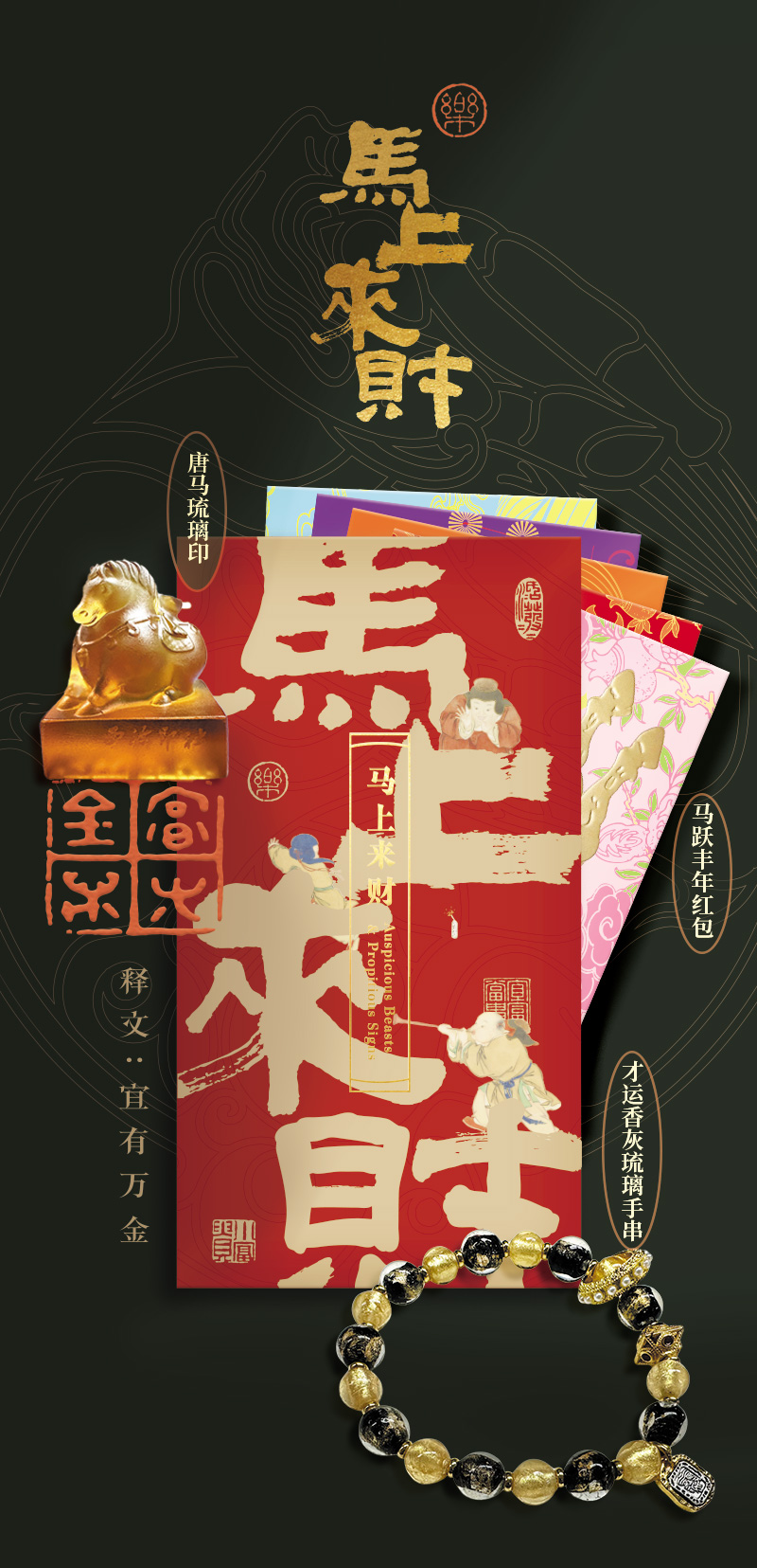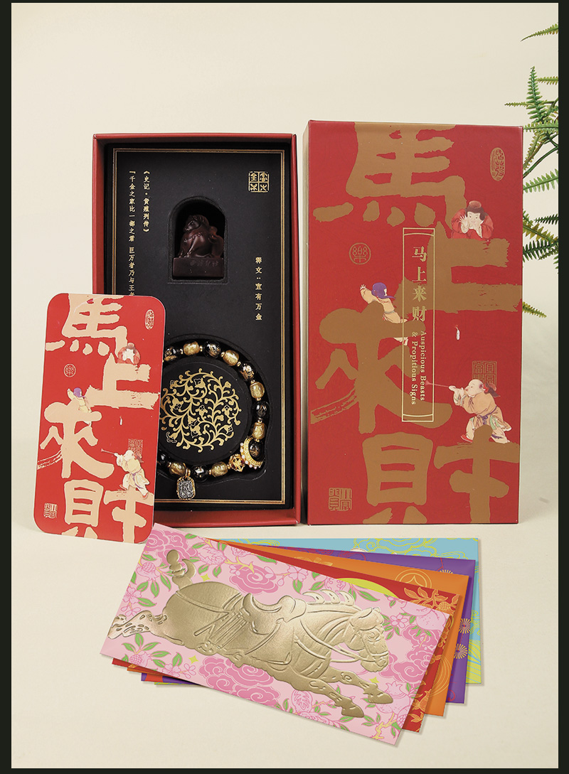 财运香灰琉璃手串唐马琉璃印马跃丰年红包福运套装