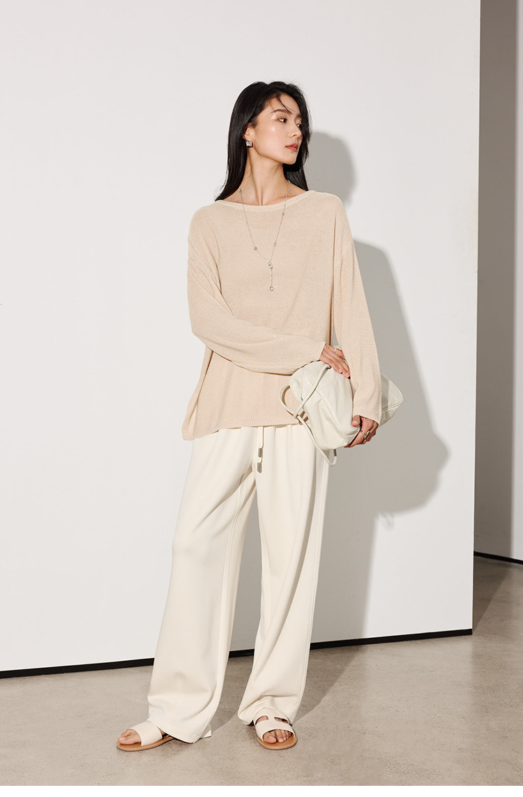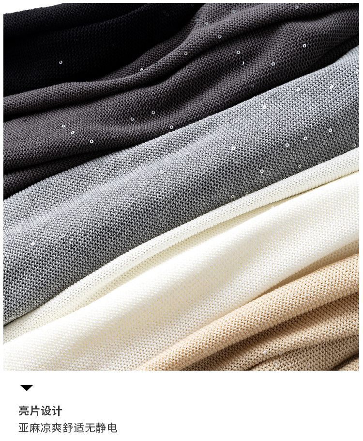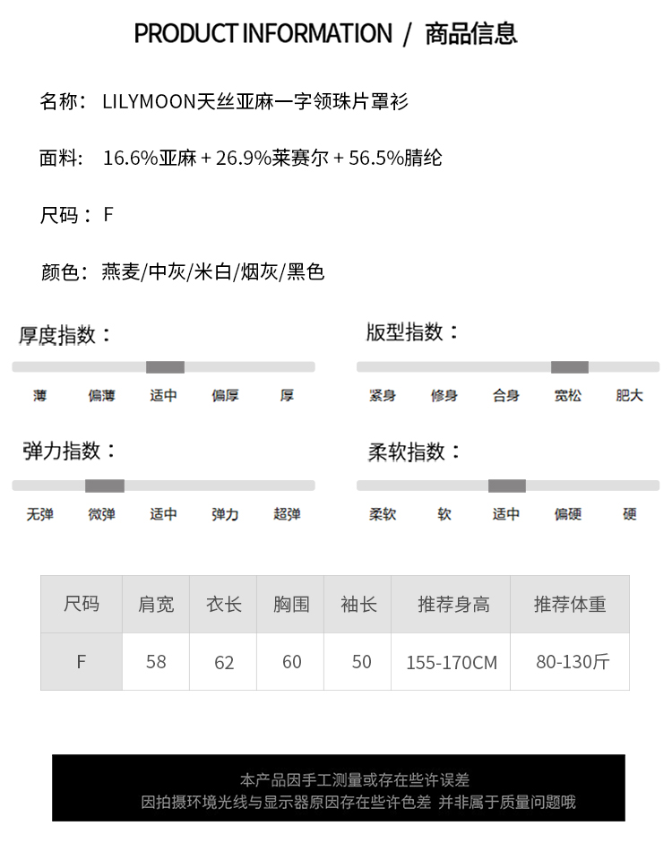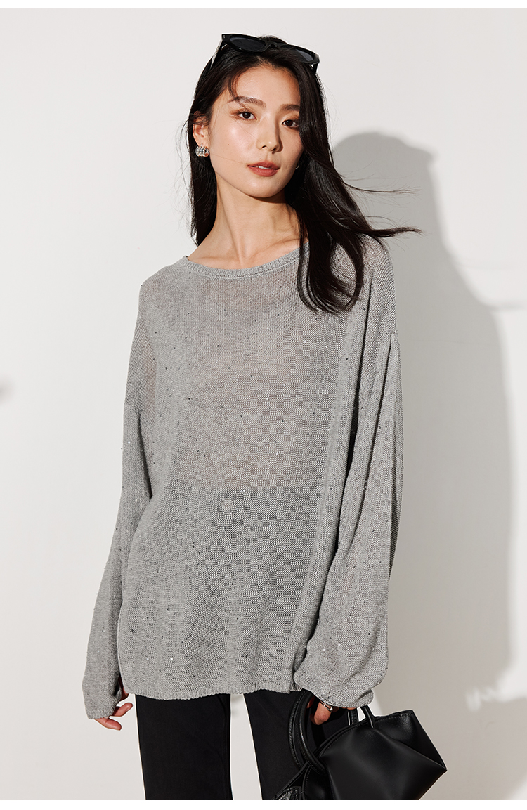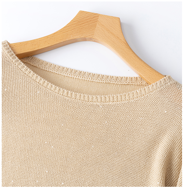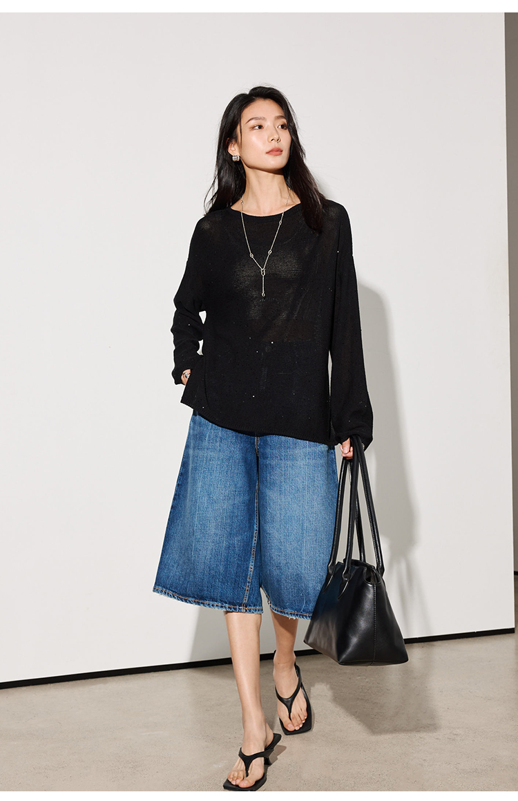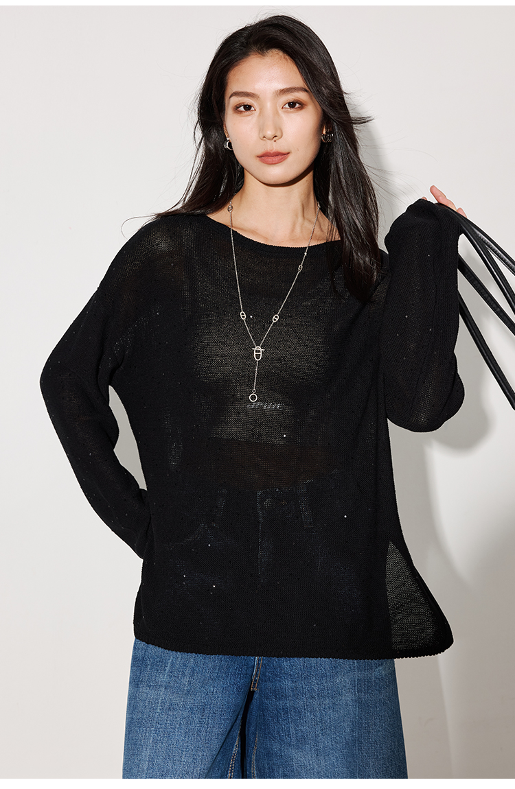 LILYMOON【一字领珠片罩衫】夏季天丝亚麻镂空罩衫细闪