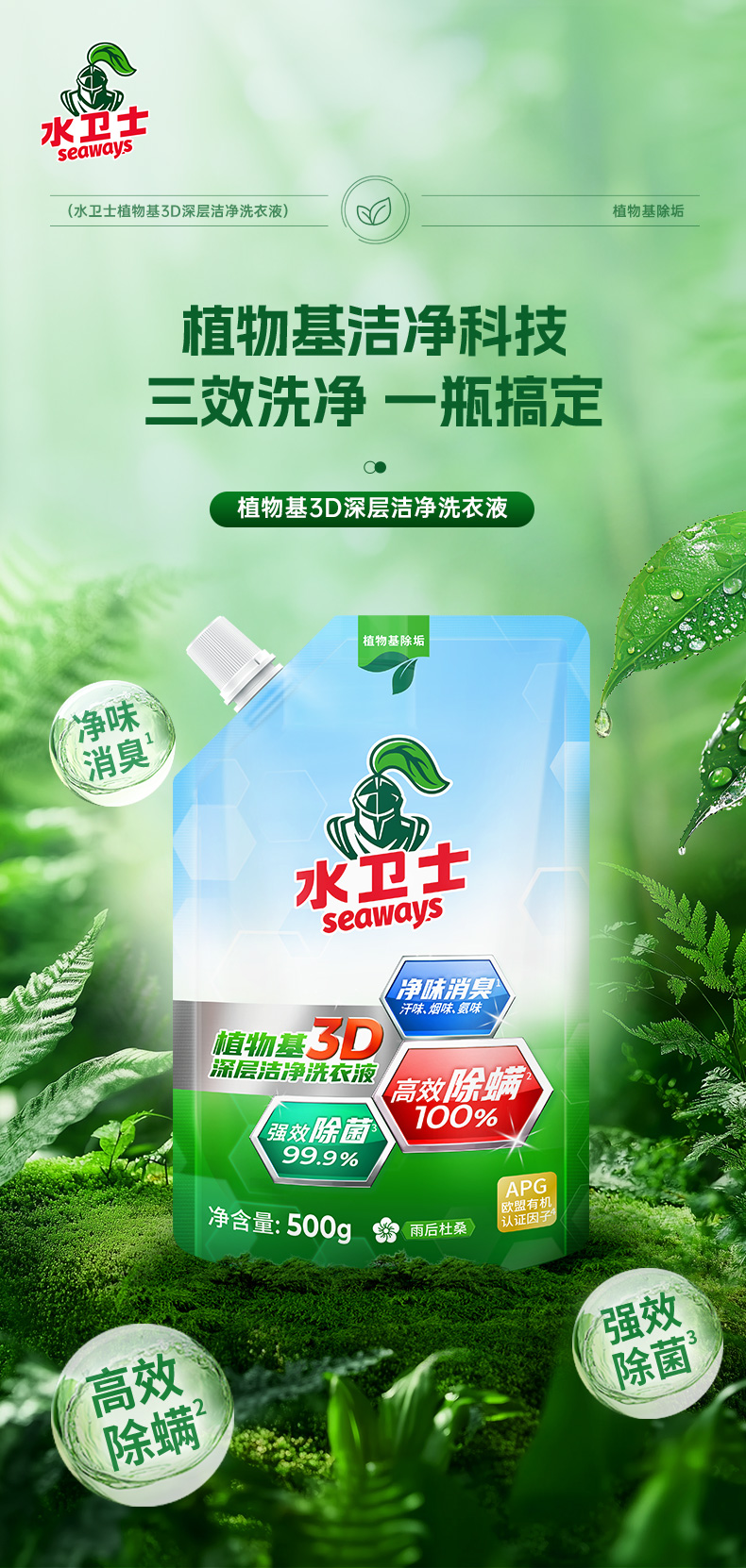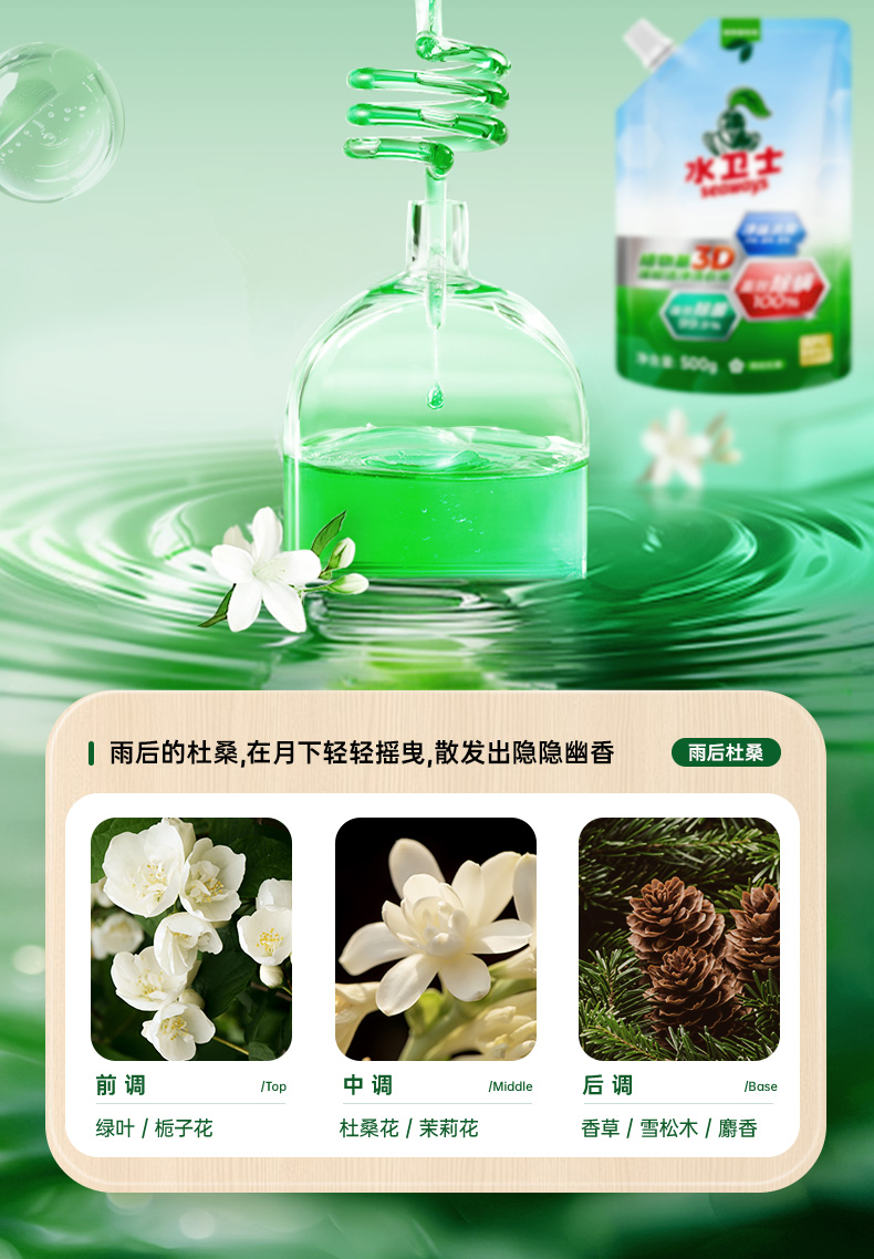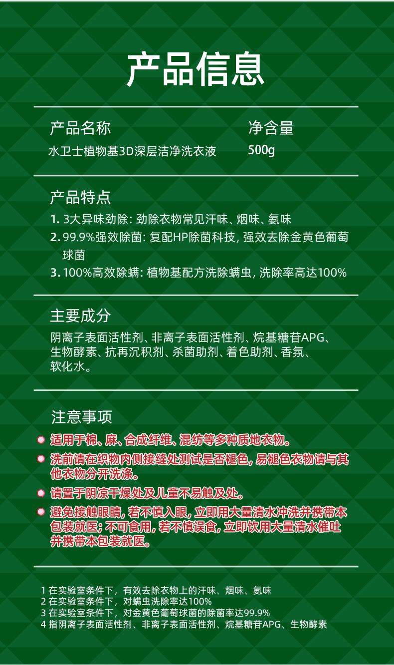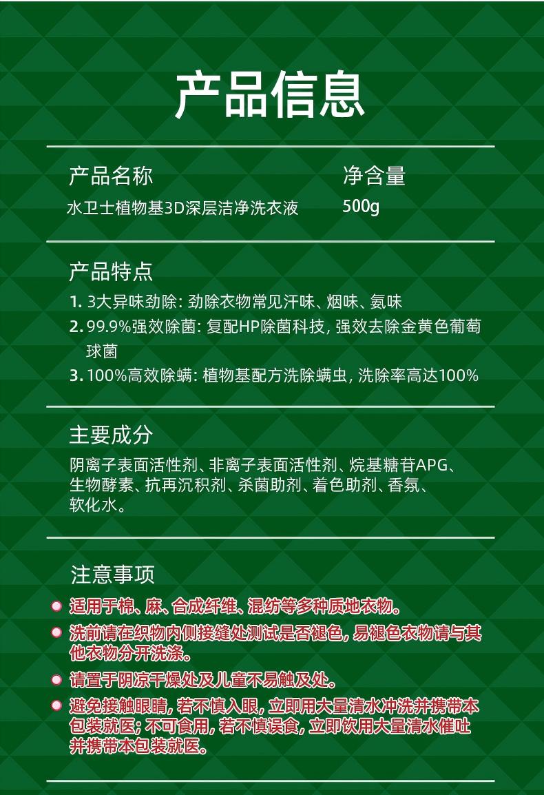 产品名称:水卫士3D深层洁净洗衣液500g/袋