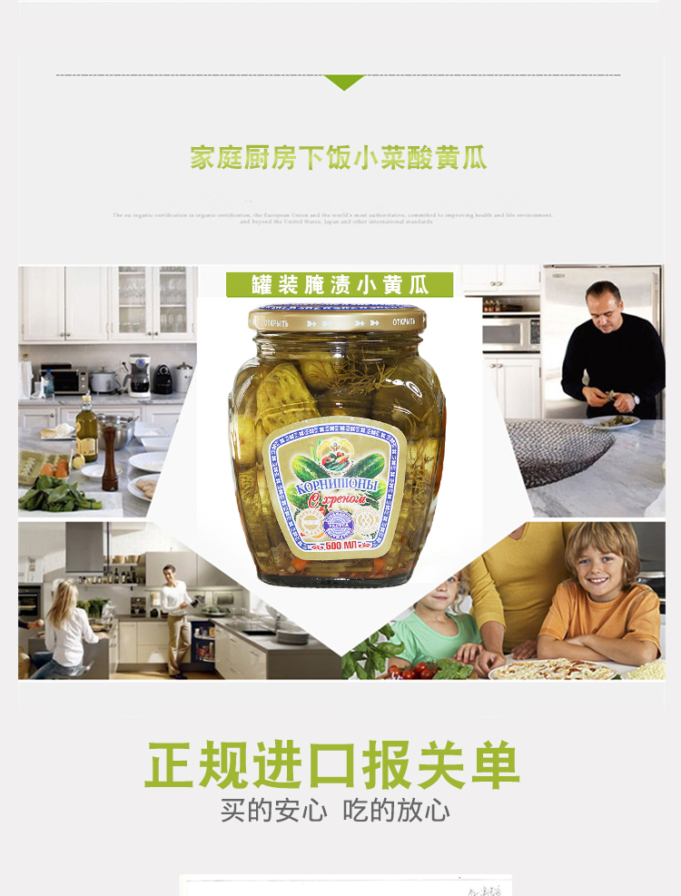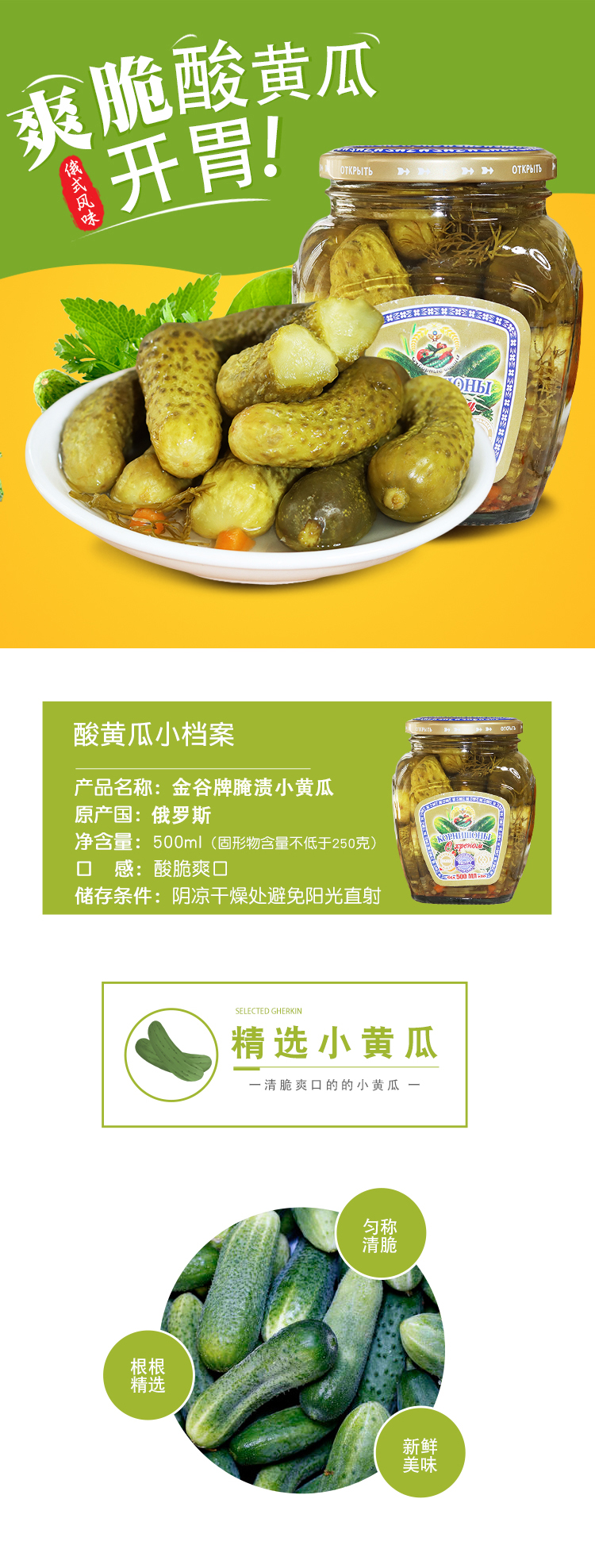 【中欧班列精选】 俄罗斯酸黄瓜 原装进口金谷牌酸黄瓜 腌制蔬泡菜即食俄式腌渍小黄瓜罐头500g