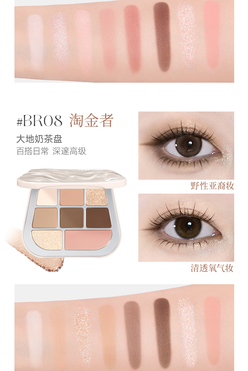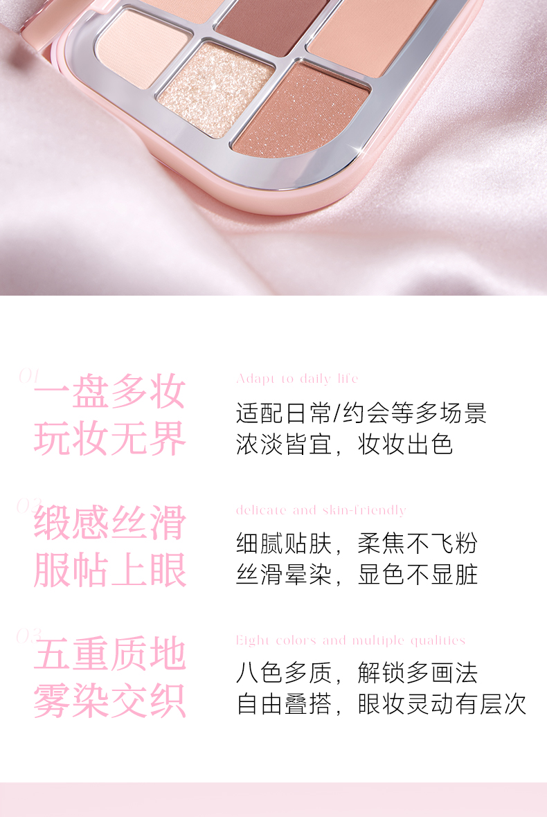【新色上线】菲鹿儿缎光八色粉盘眼影高光腮红一体盘大地色哑光珠光细闪粉亮片初学者