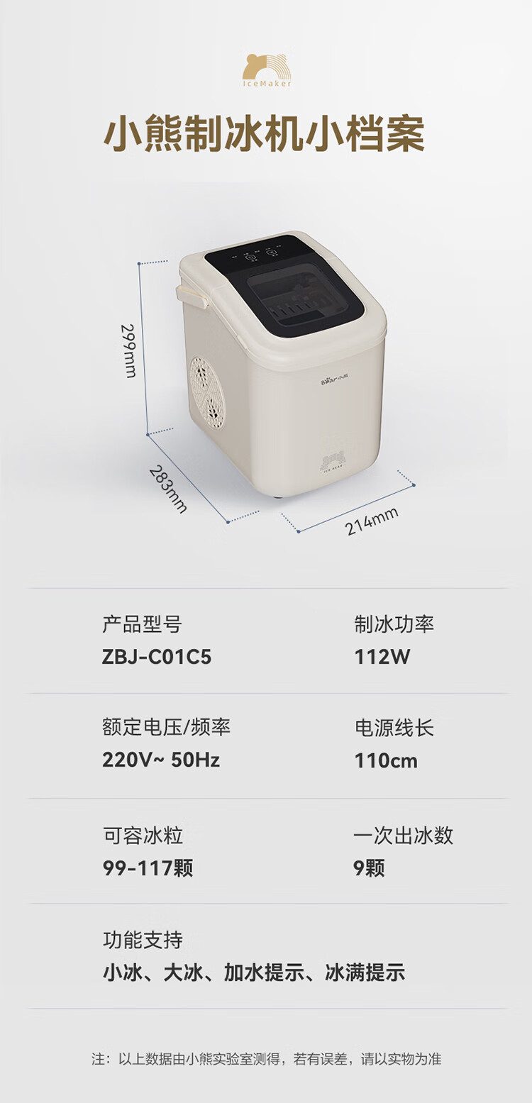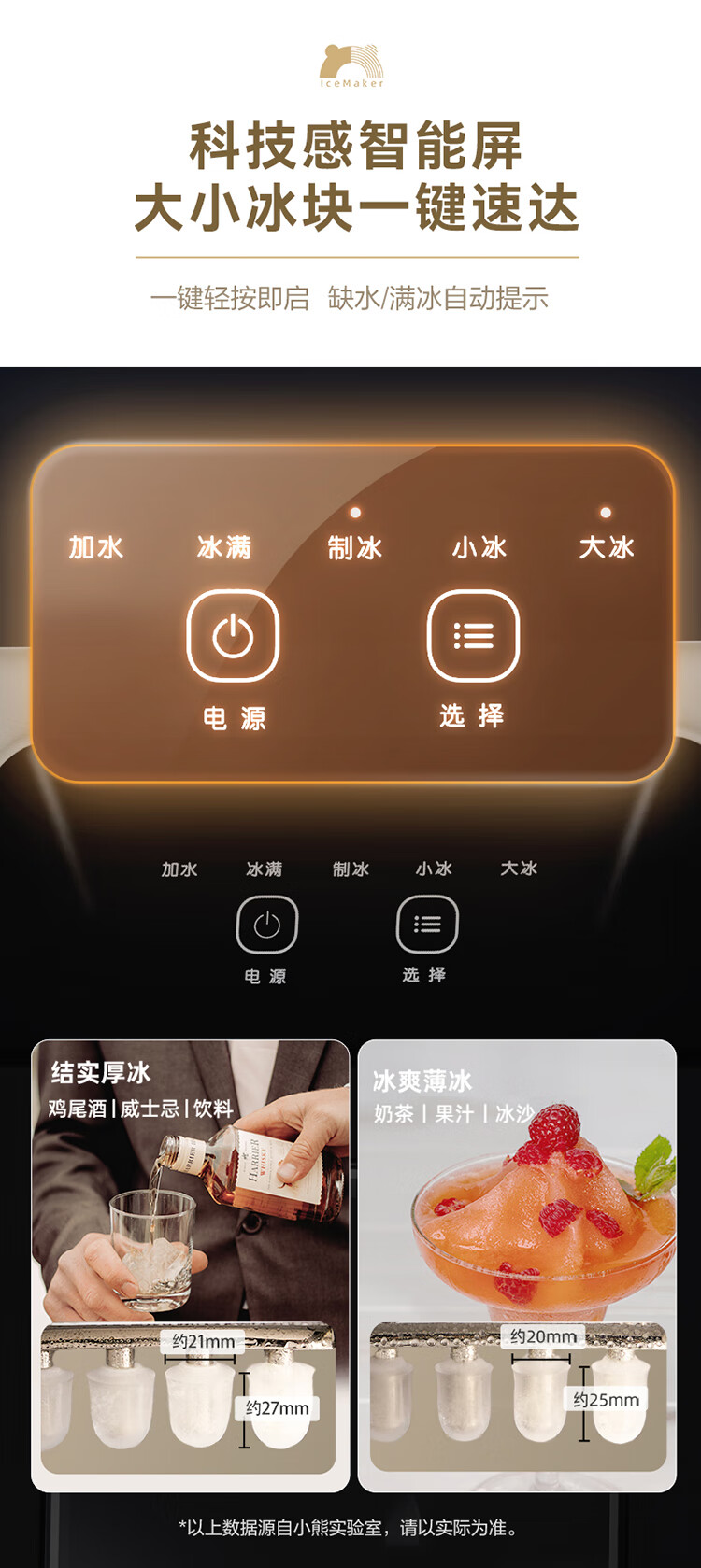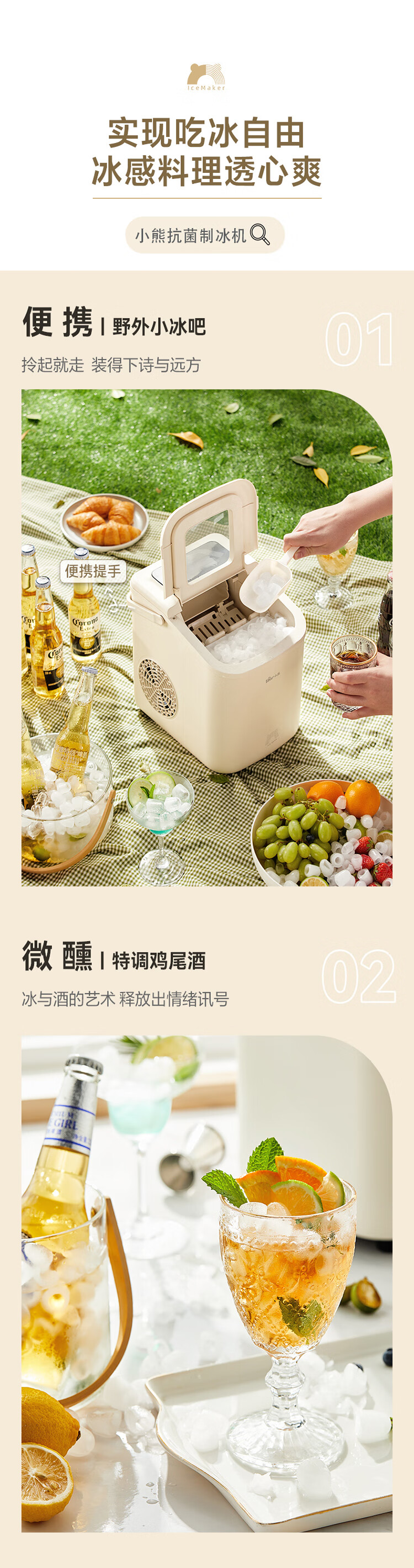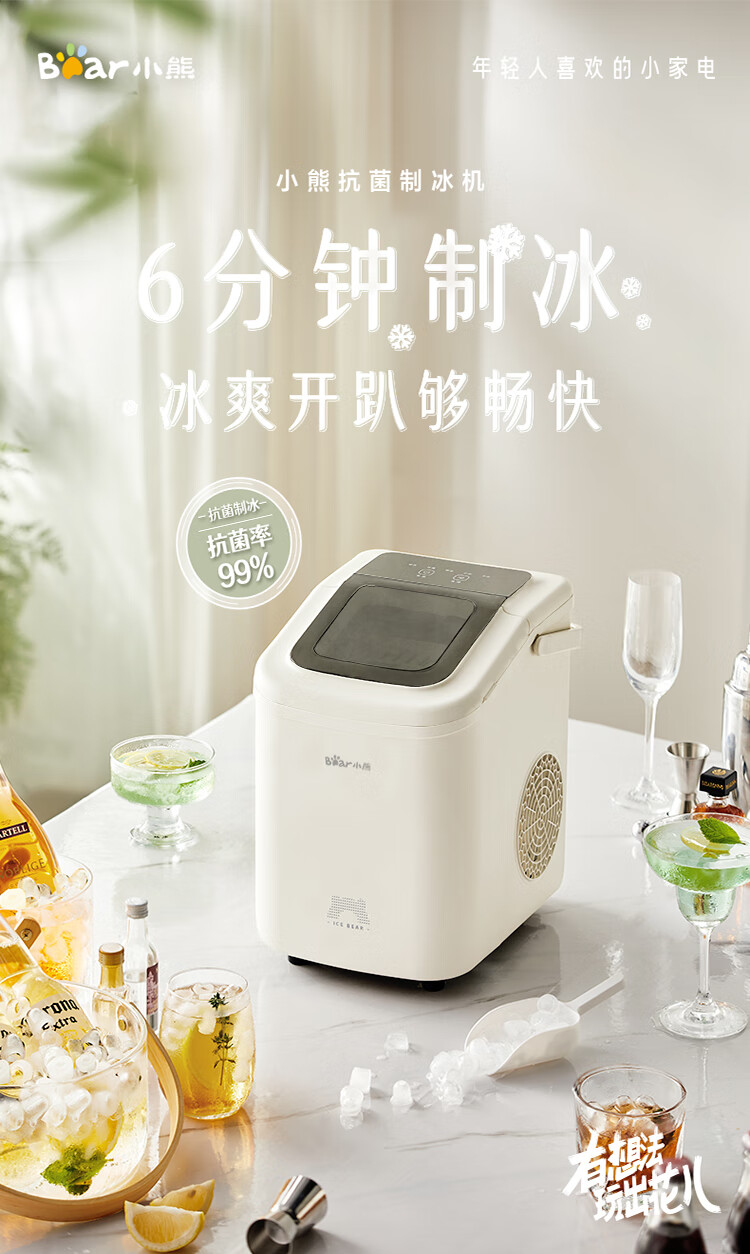 小熊(Bear)制冰机 家用宿舍迷你造冰机 小型办公室冷饮雪花机 冰沙鸡尾酒调制全自动圆冰块制作机 ZBJ-C01C5