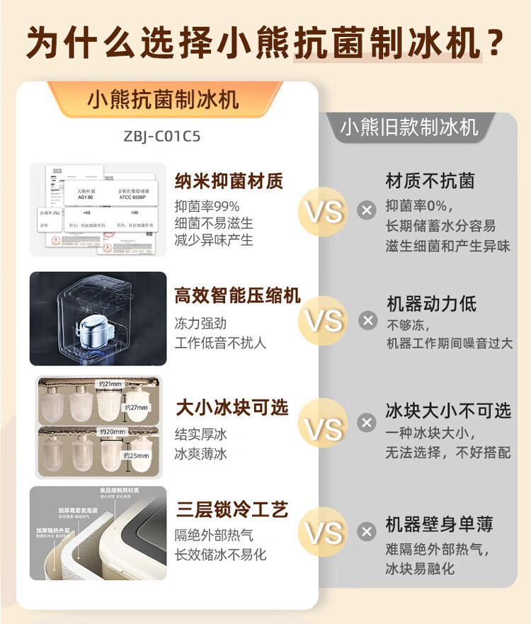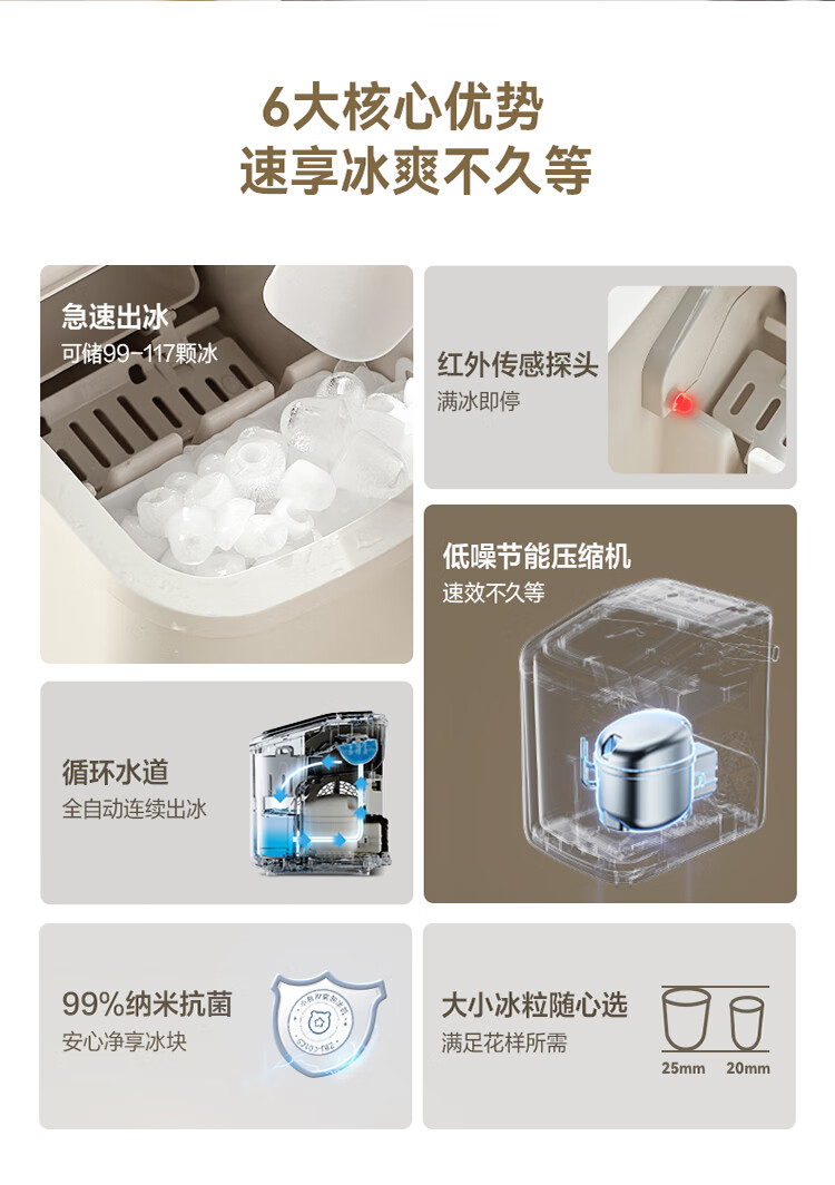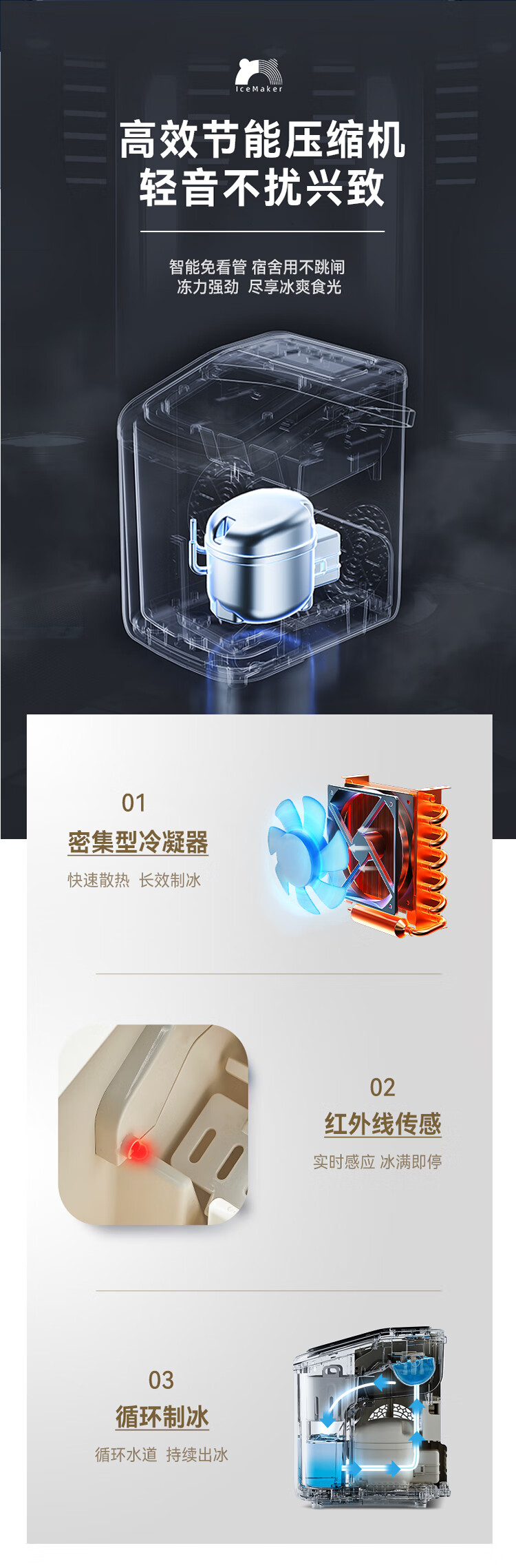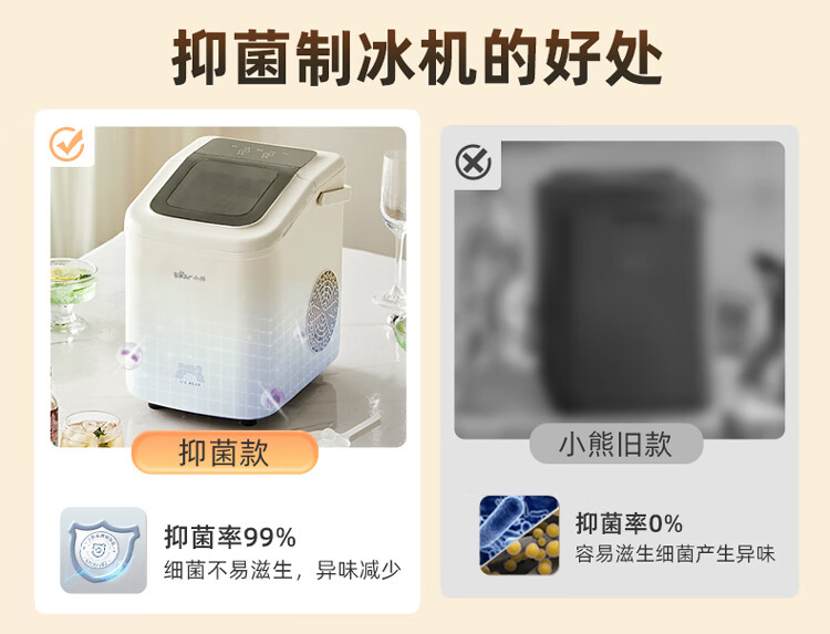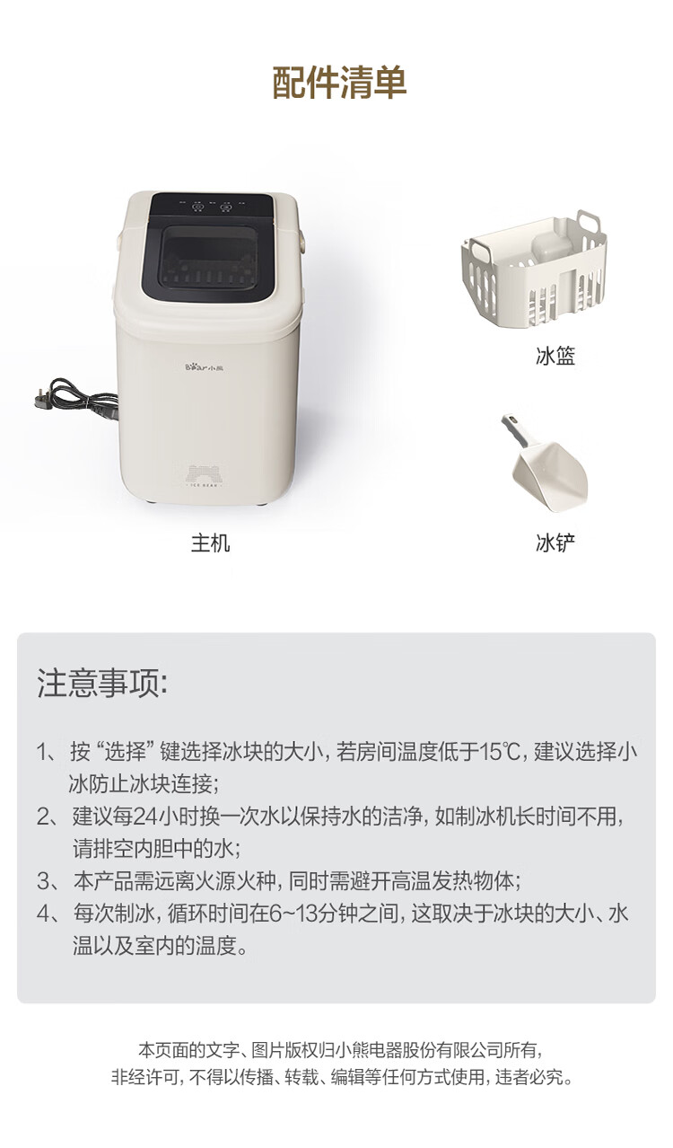 小熊(Bear)制冰机 家用宿舍迷你造冰机 小型办公室冷饮雪花机 冰沙鸡尾酒调制全自动圆冰块制作机 ZBJ-C01C5