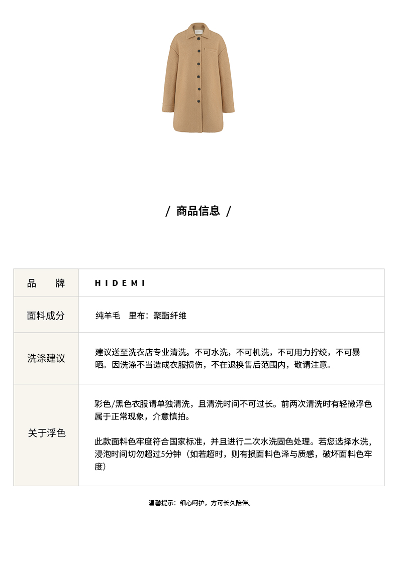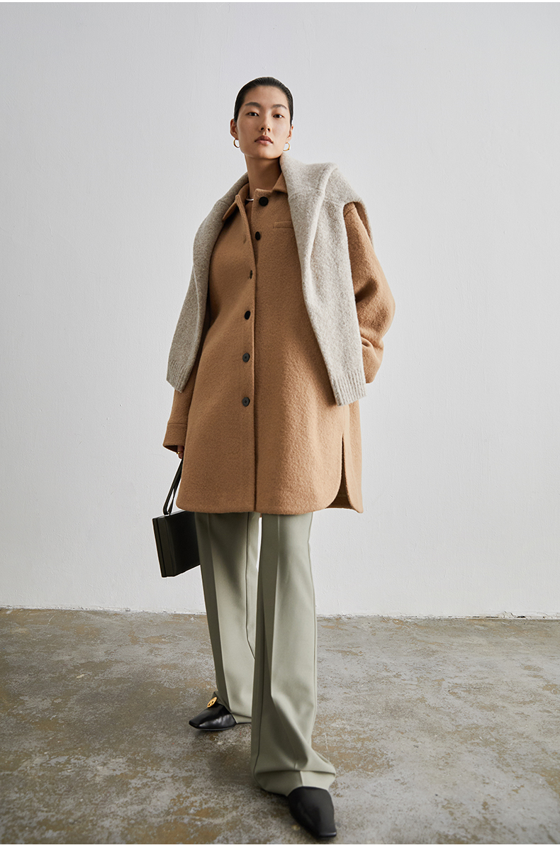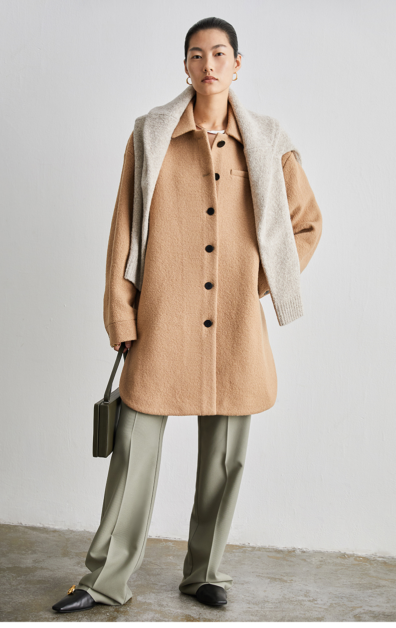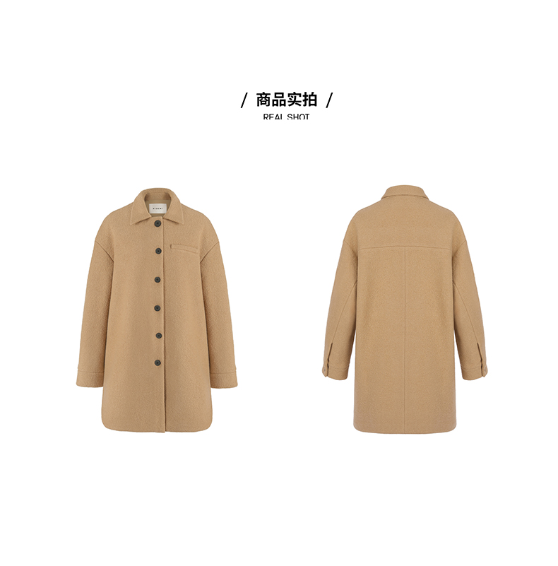 HIDEMI 简约设计感廓形纽扣小翻领厚羊毛大衣