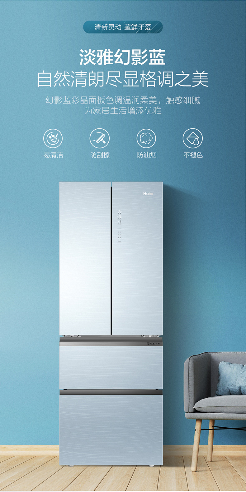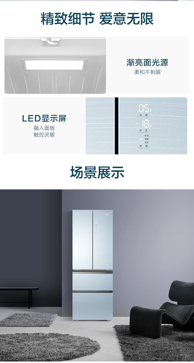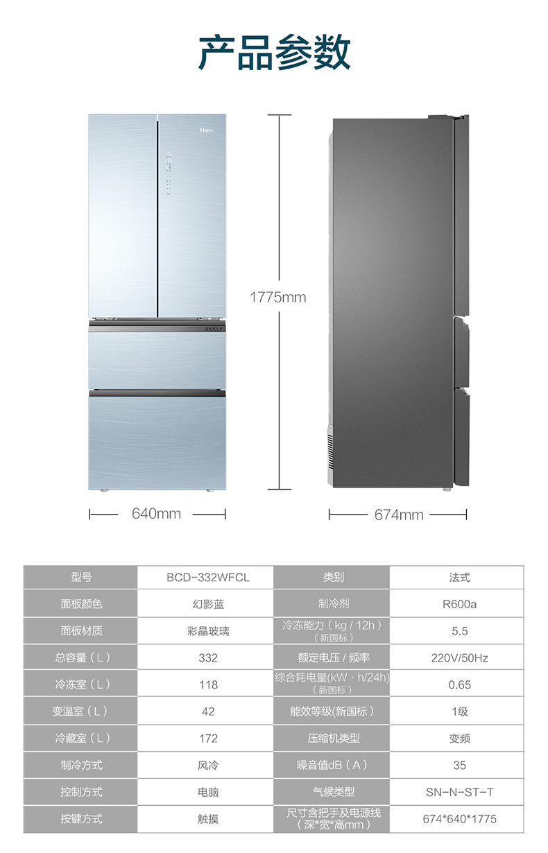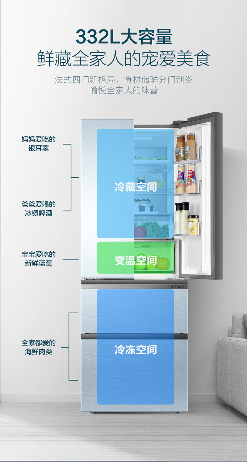 海尔(Haier)332升多门双变频冰箱 风冷无霜 阻氧干湿分储 专属母婴空间 钢化玻璃面板BCD-332WFCL