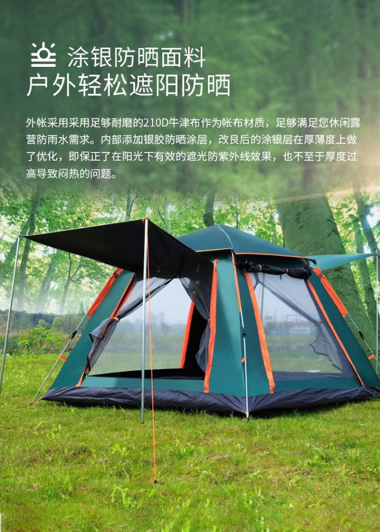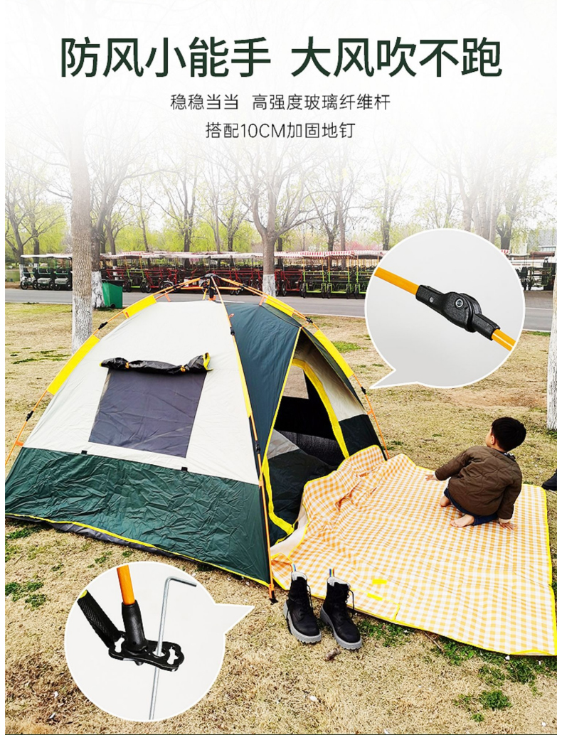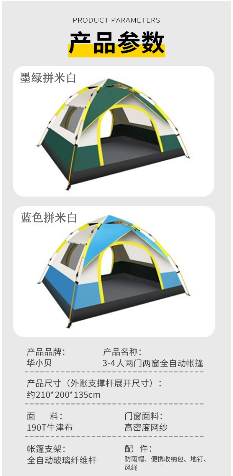【品牌优选】华小贝 速开全自动折叠拼色帐篷防雨防蚊虫户外露营帐篷一抛即开