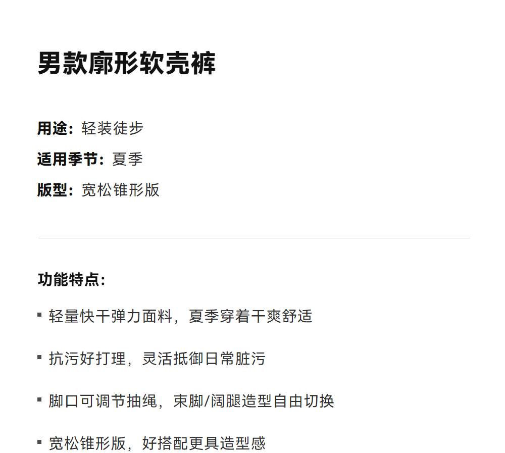 KAILAS凯乐石 男款廓形轻量软壳裤 KG2615309