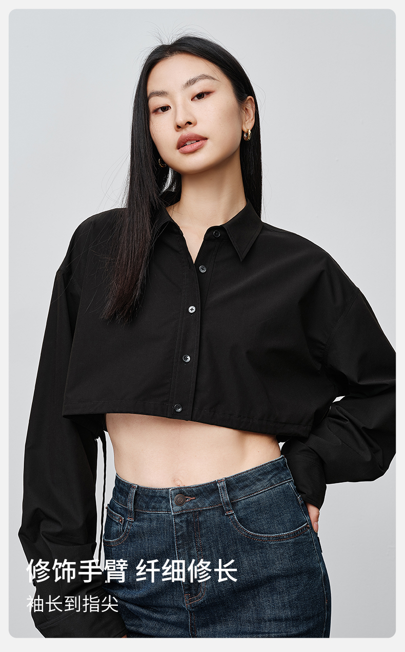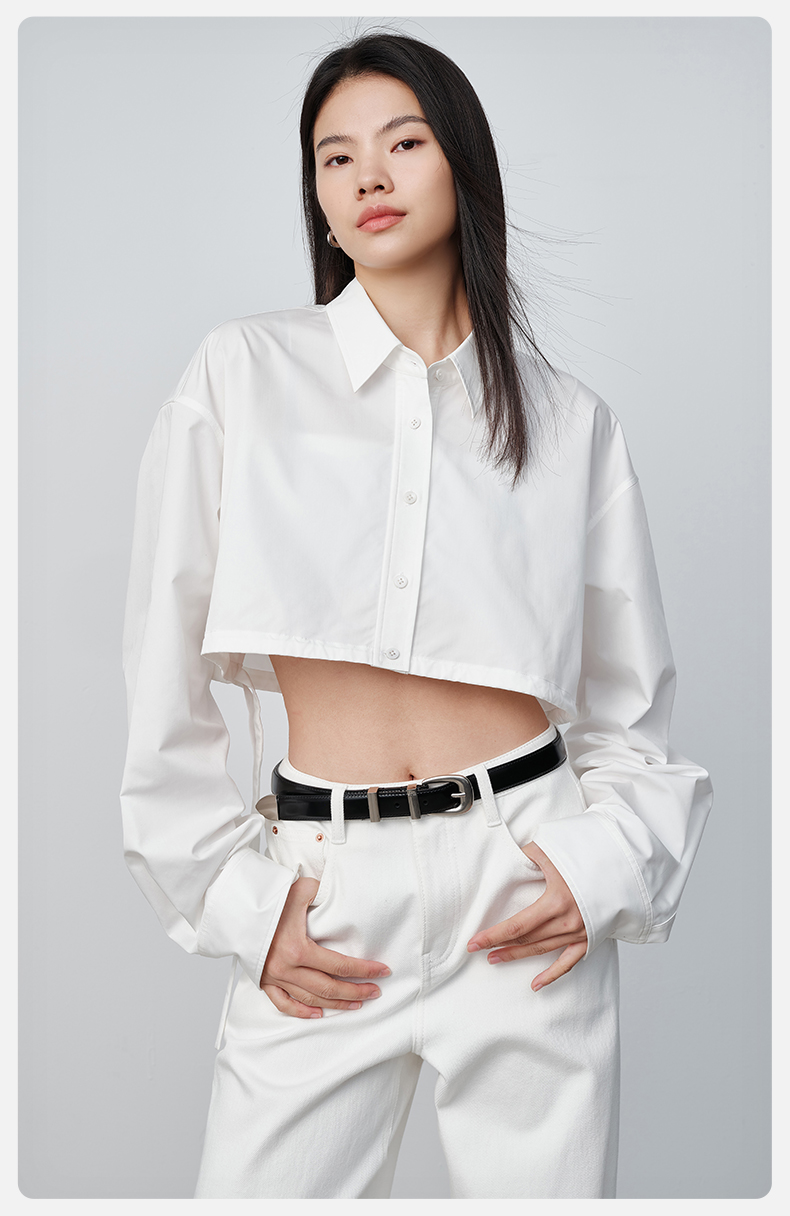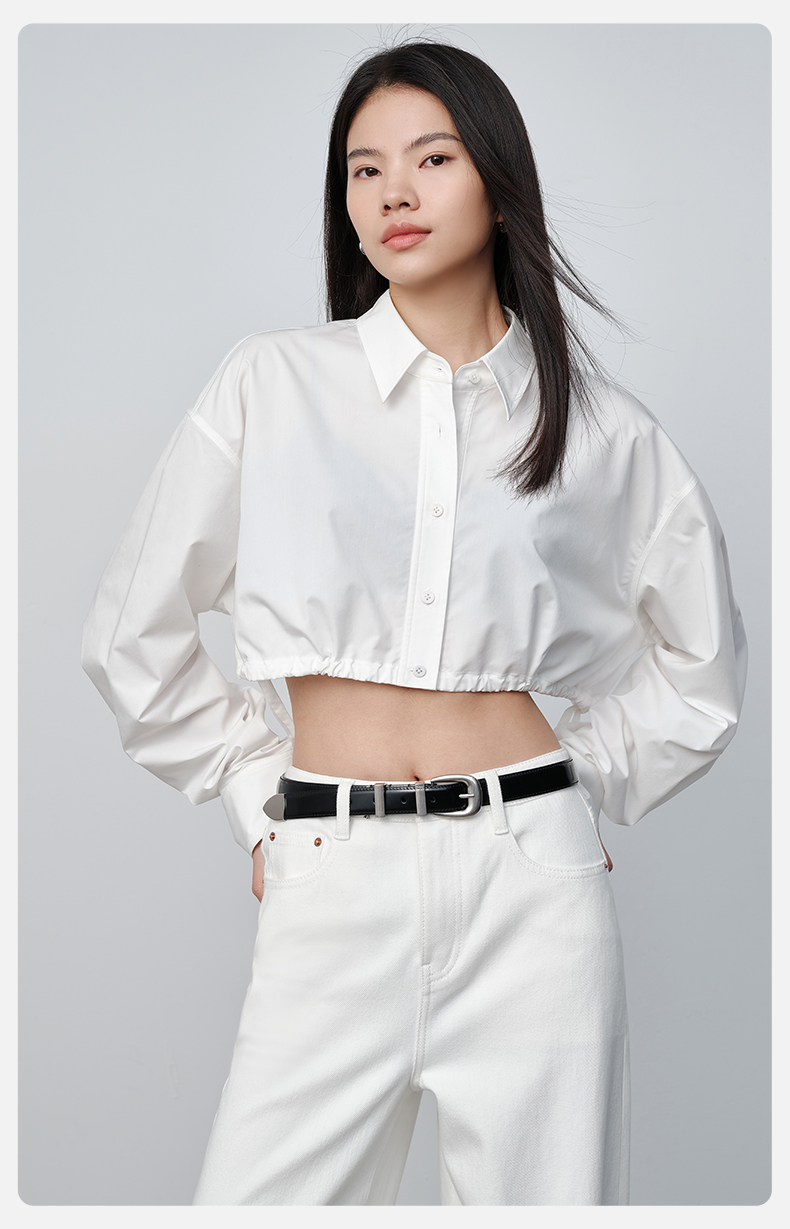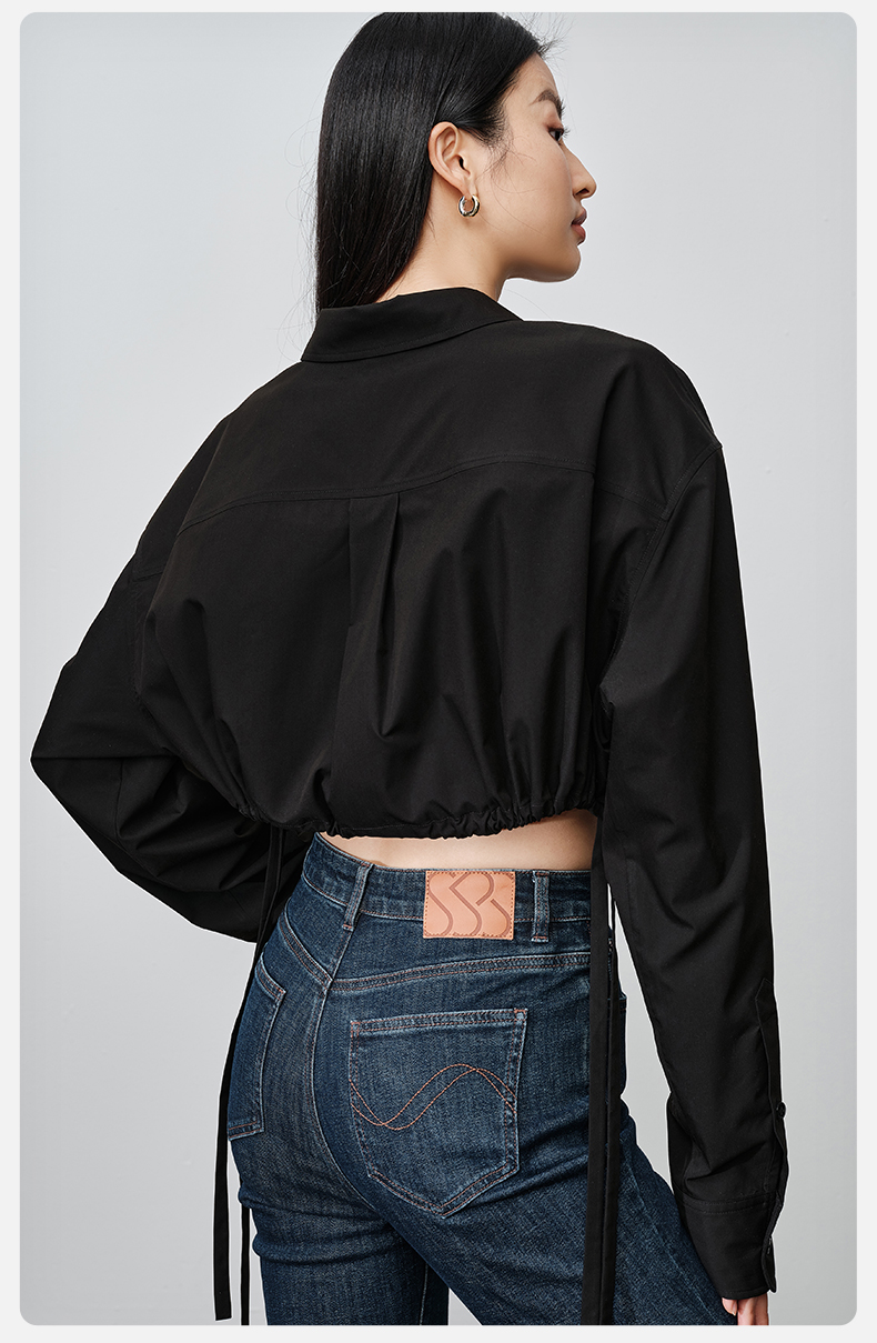 simplepieces女春季新品SPS衬衫短款收腰抽绳衬衫