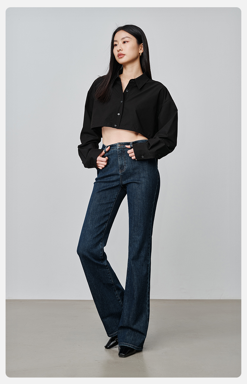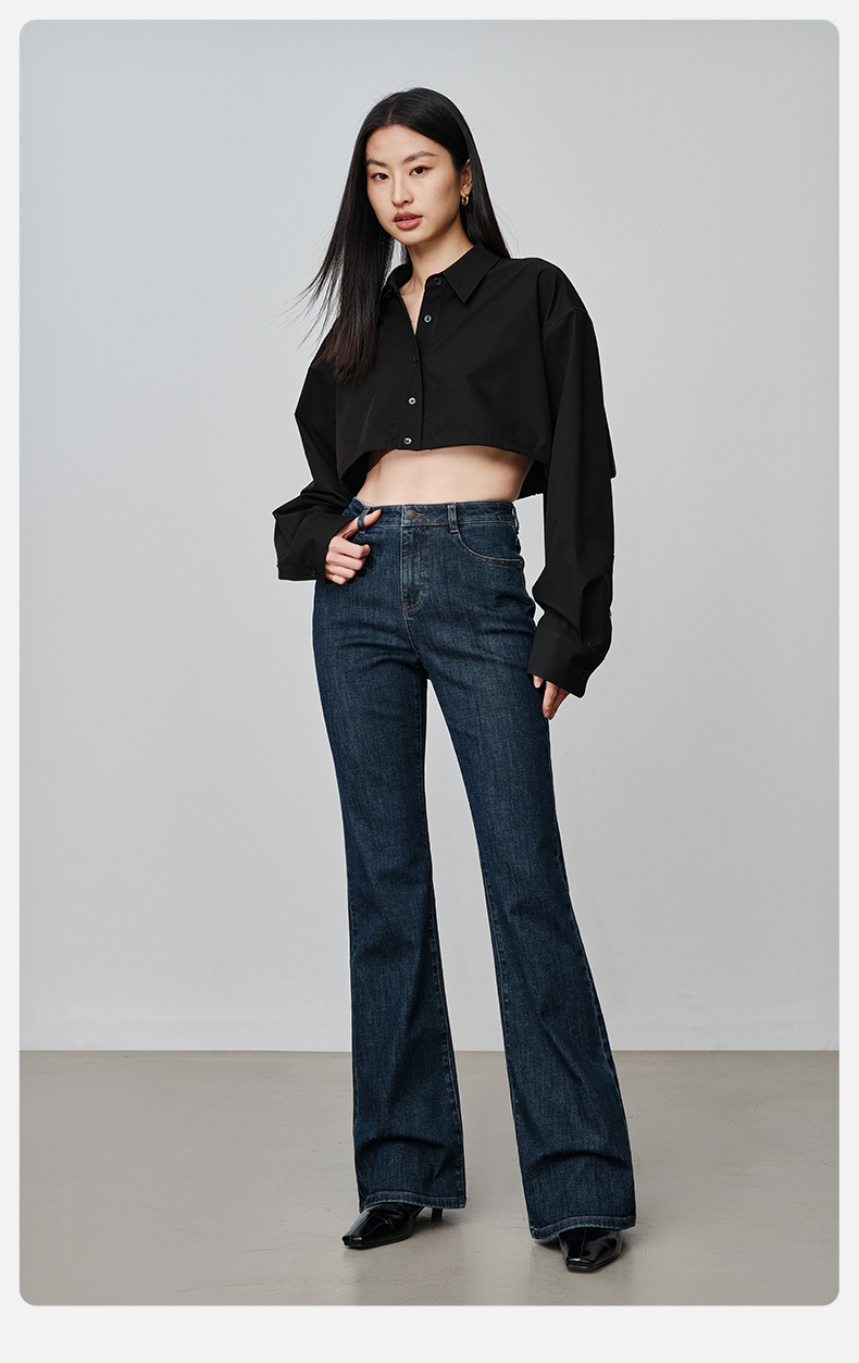 【四面弹超模裤】simplepieces春新款SPS牛仔修身拖地微喇喇叭裤