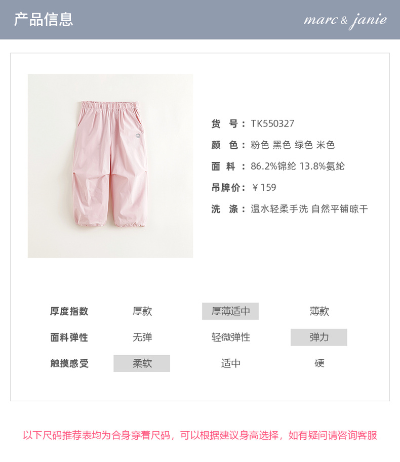 【速干】马克珍妮男女童超轻高弹工装裤儿童运动裤春装新款550327