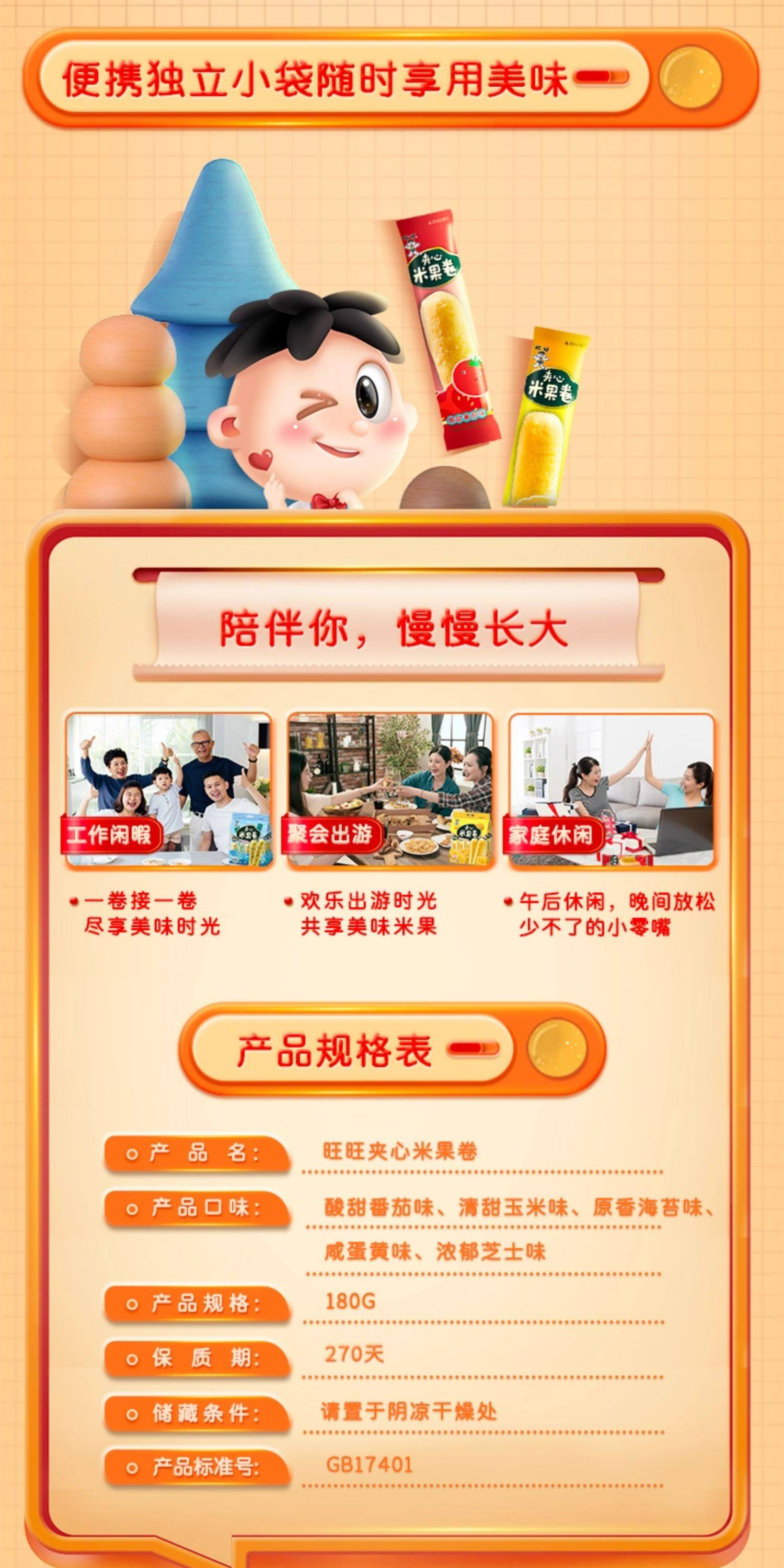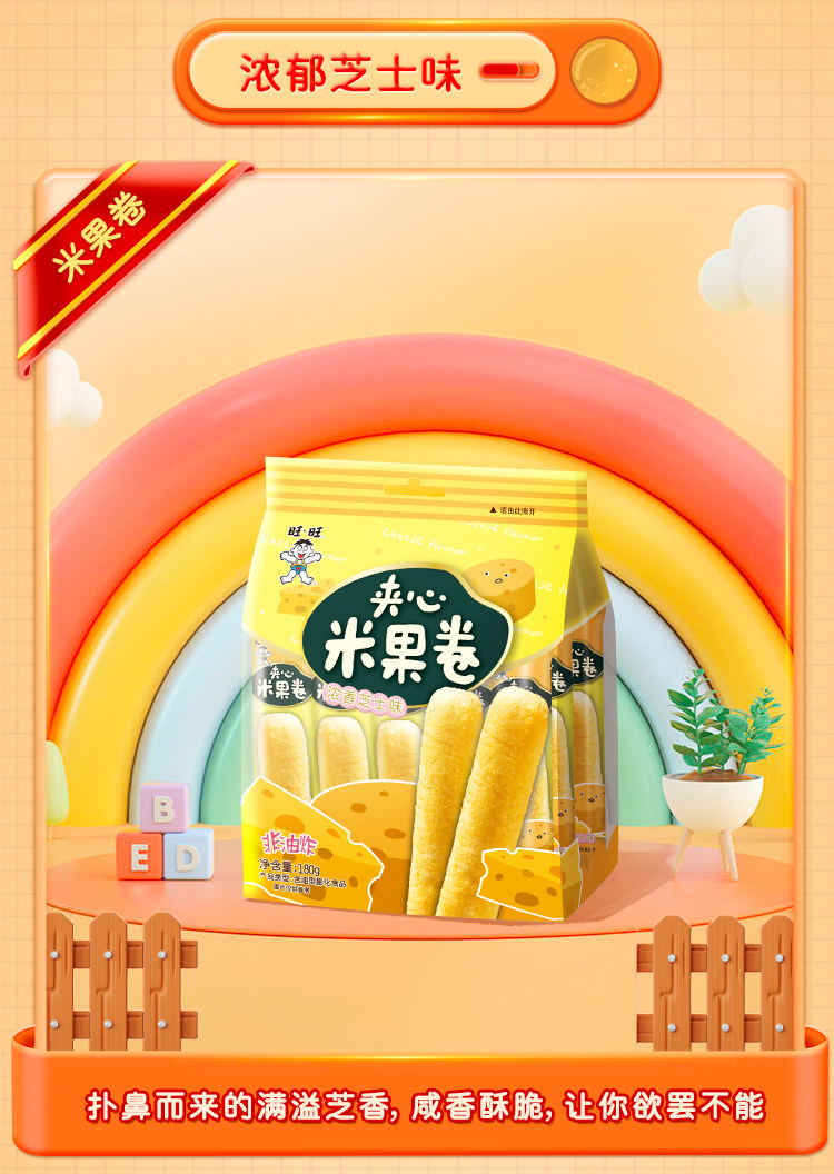 旺旺 夹心米果卷 玉米味/芝士味 180g/袋