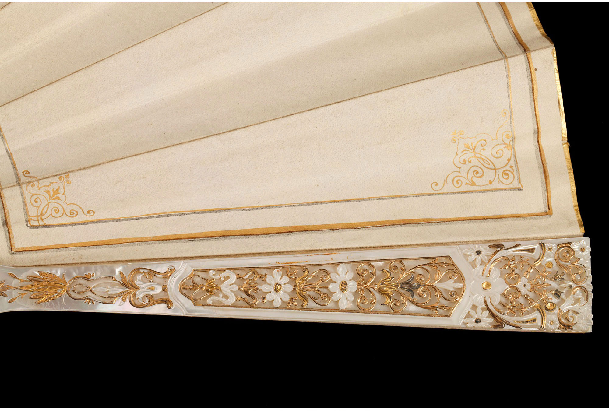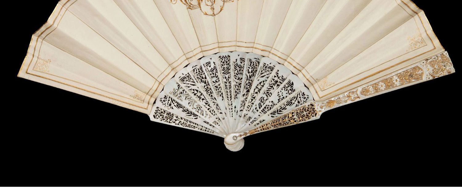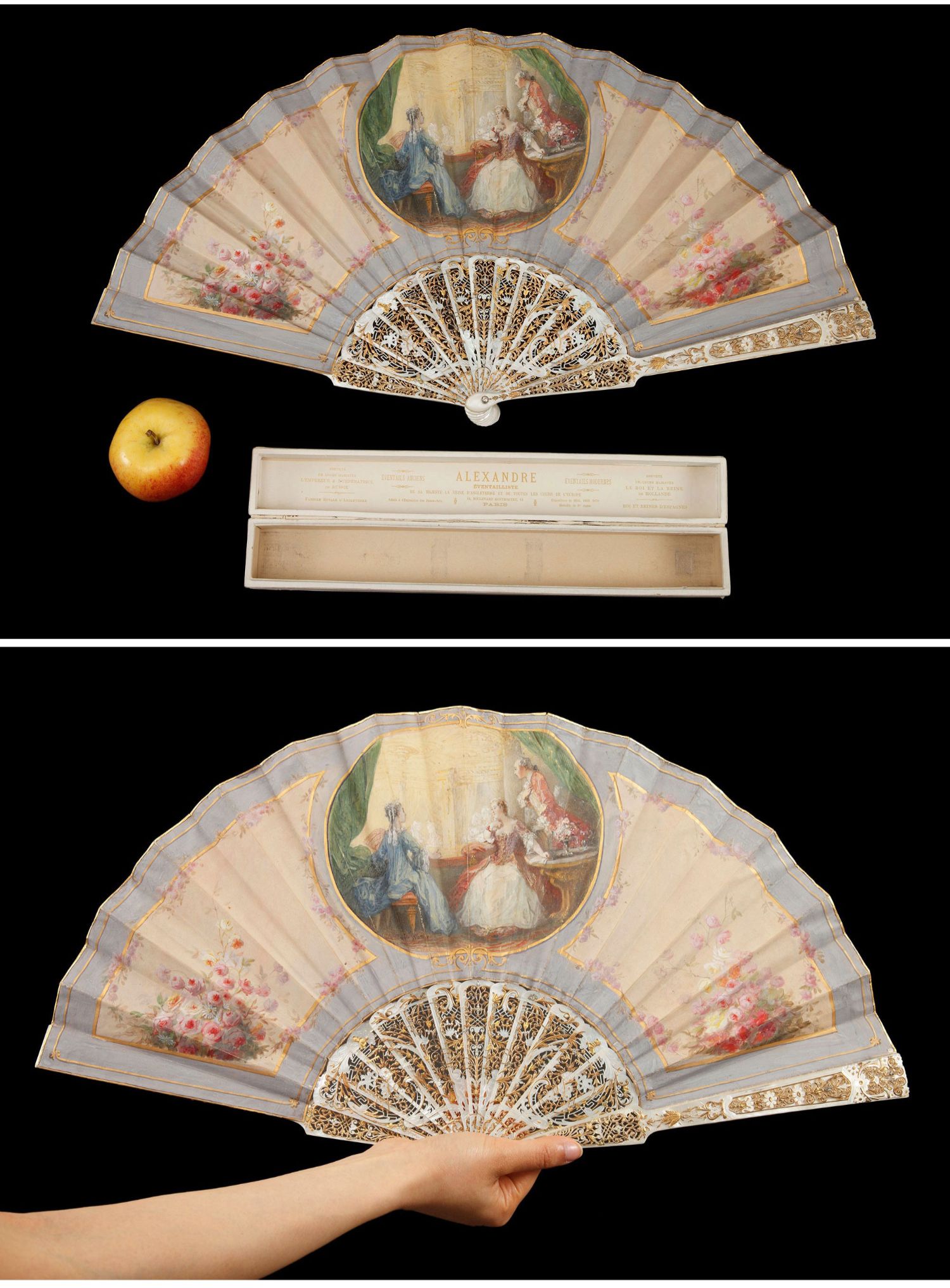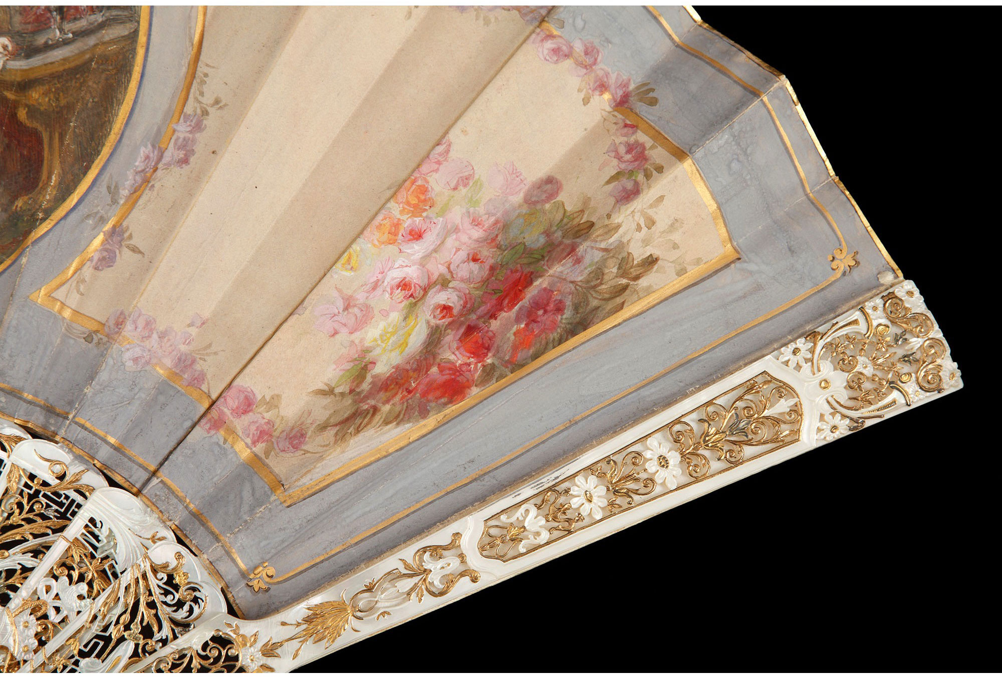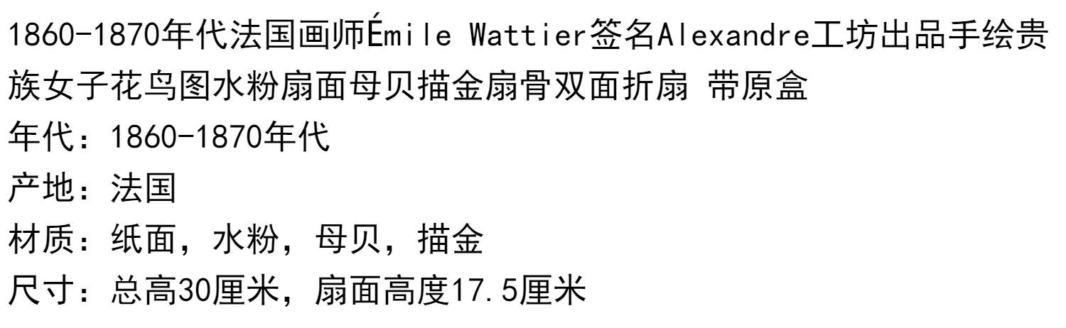 独角鹿西洋古董法国画师手绘纸面水粉扇面母贝描金扇骨双面折扇