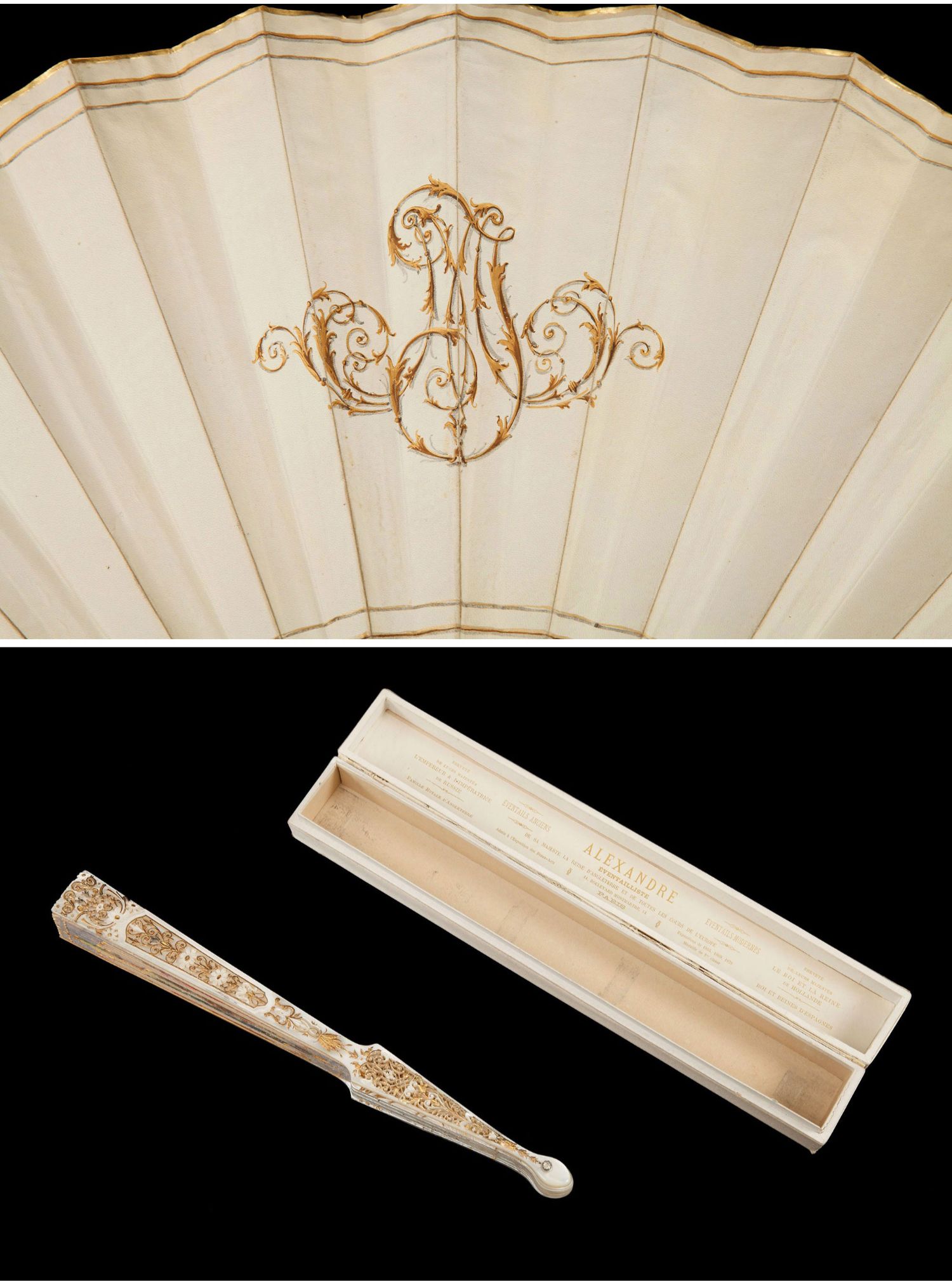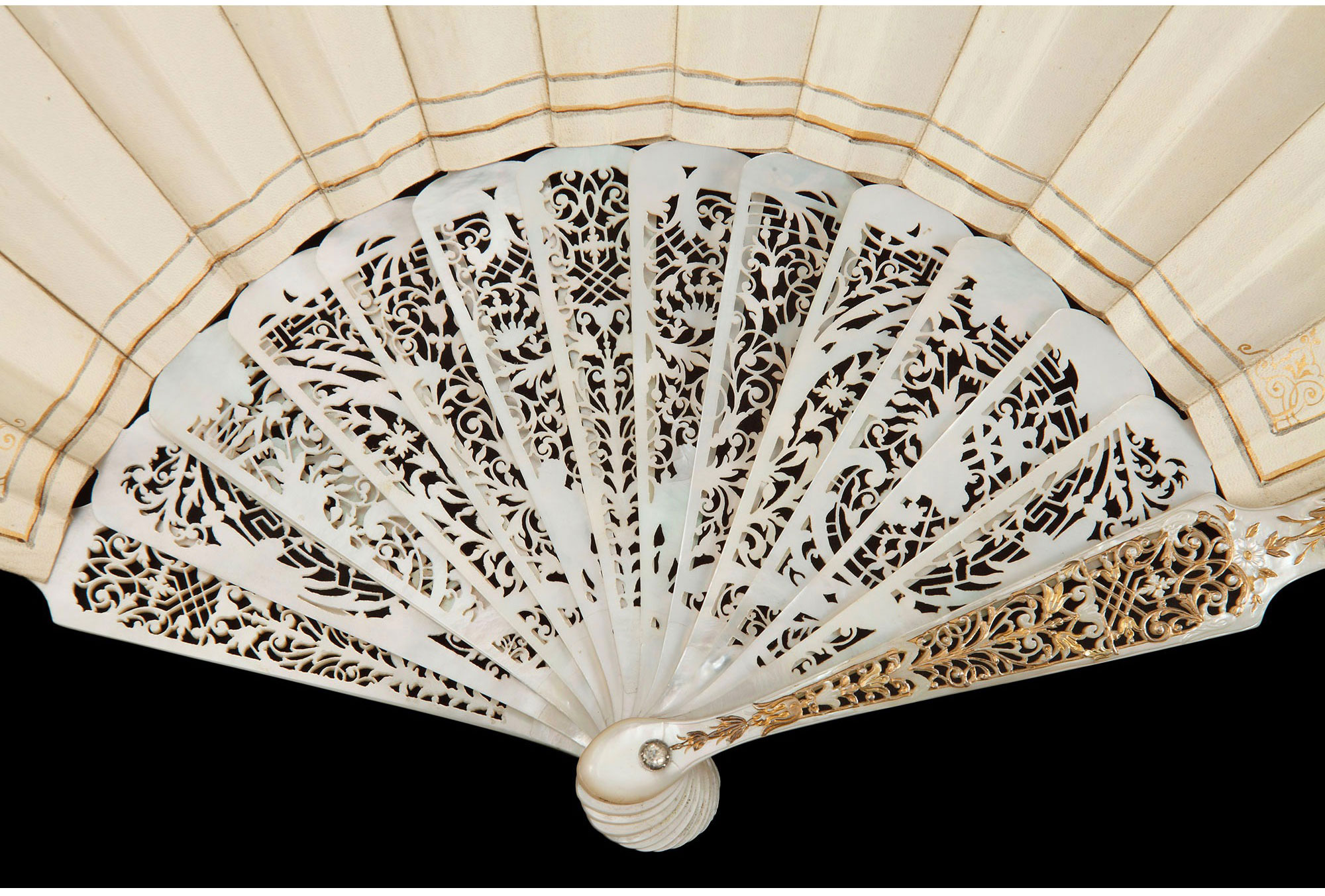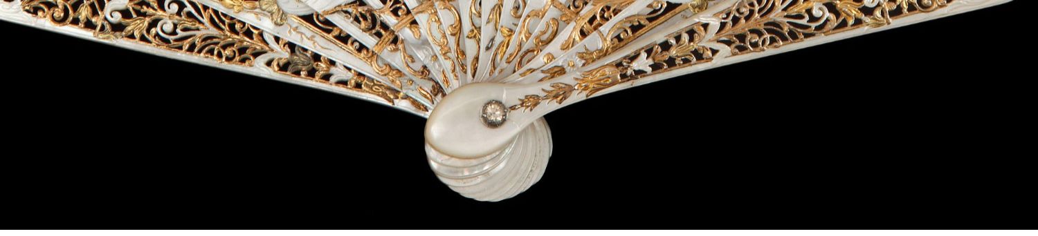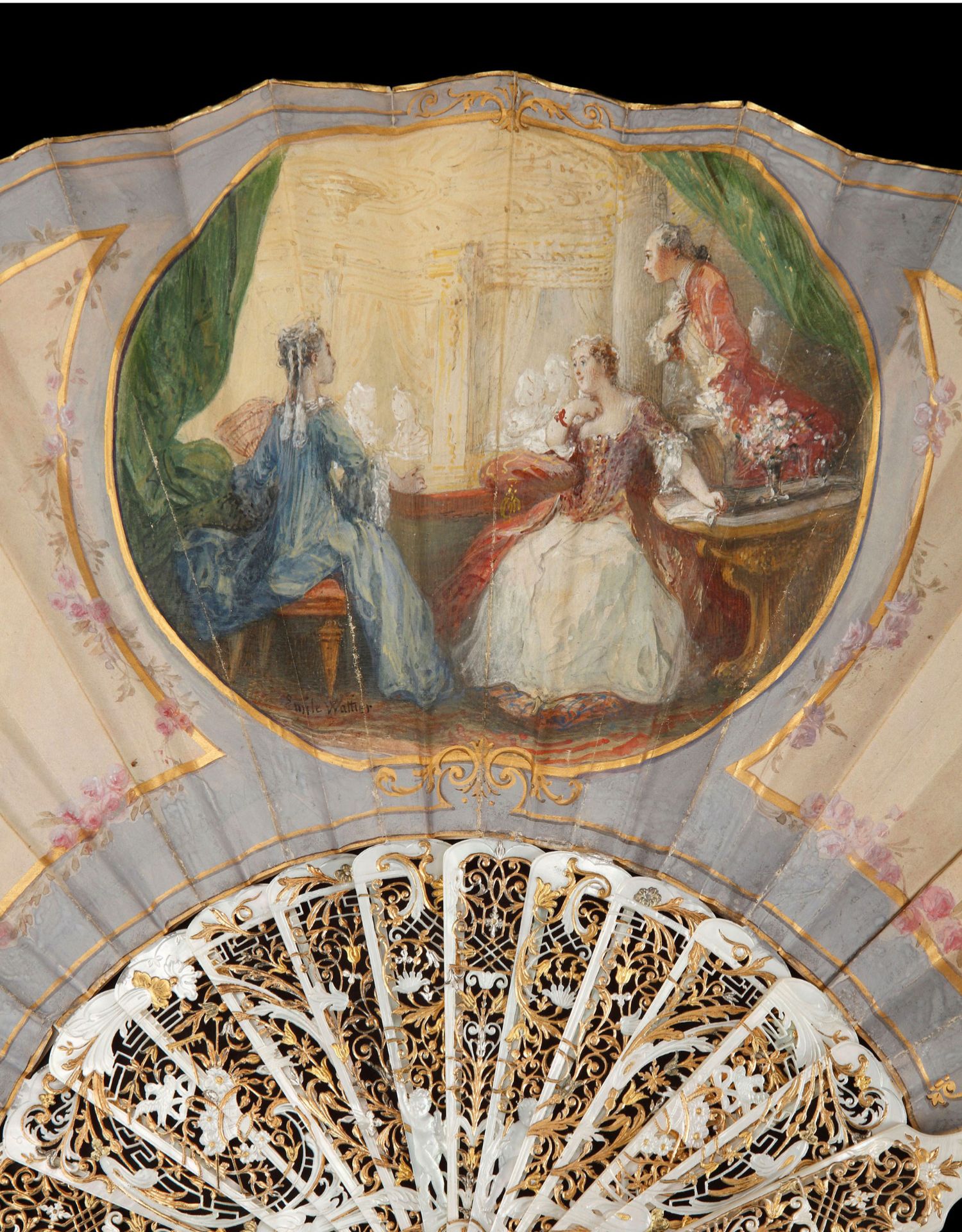 独角鹿西洋古董法国画师手绘纸面水粉扇面母贝描金扇骨双面折扇