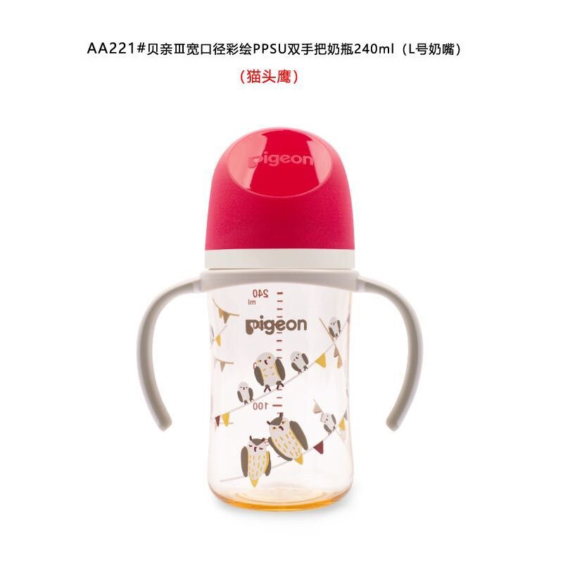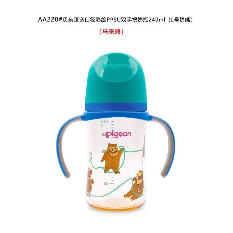 贝亲自然实感宽口径彩绘PPSU双把手奶瓶240ml