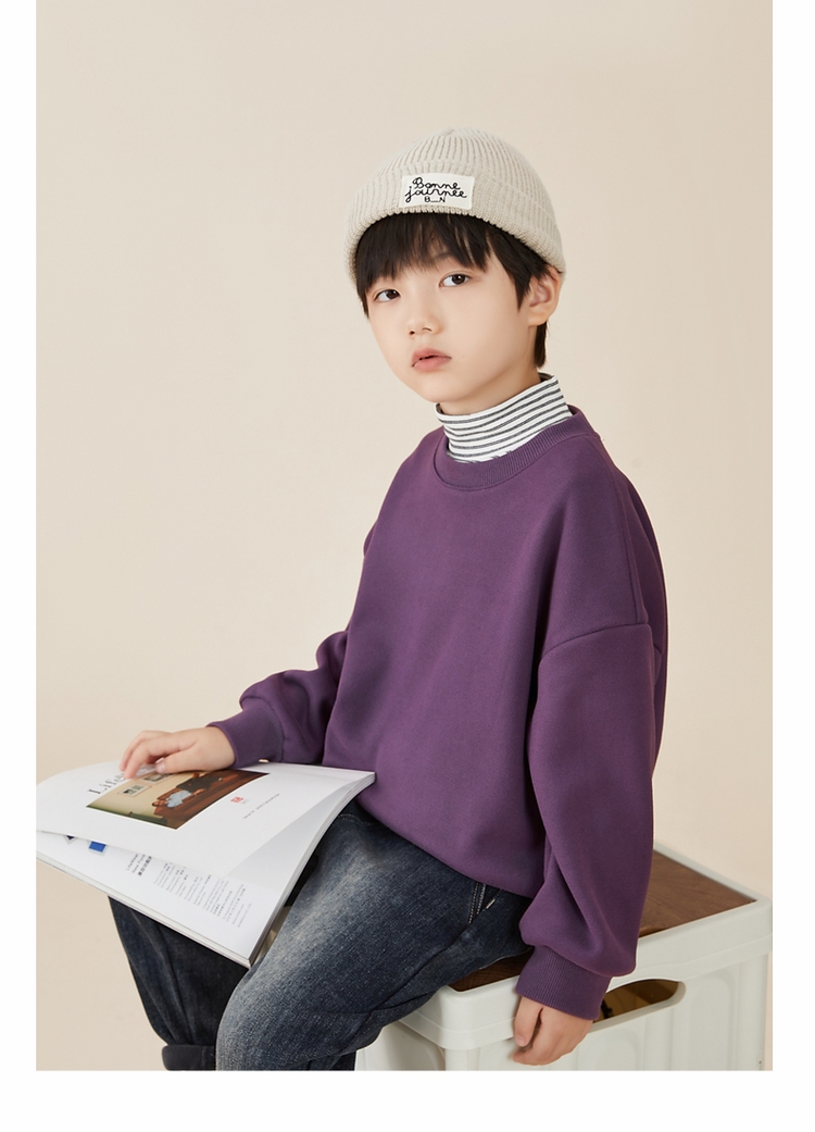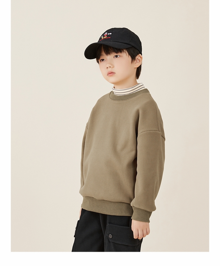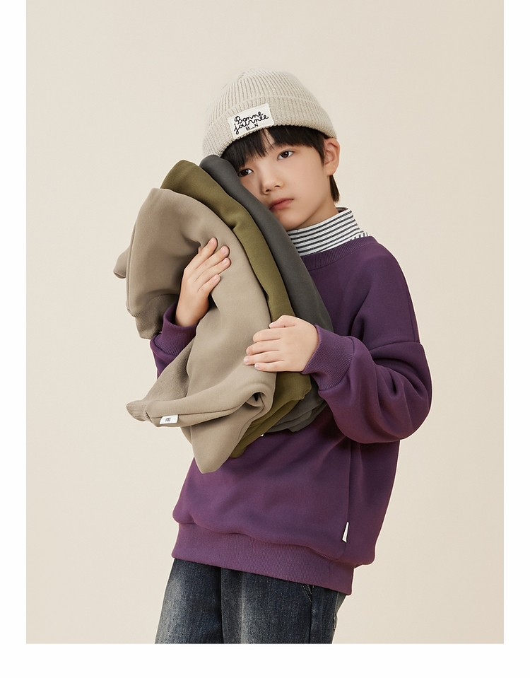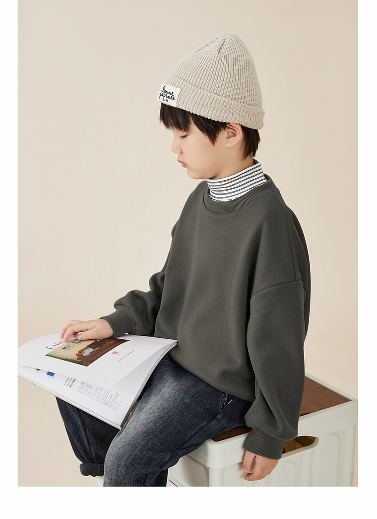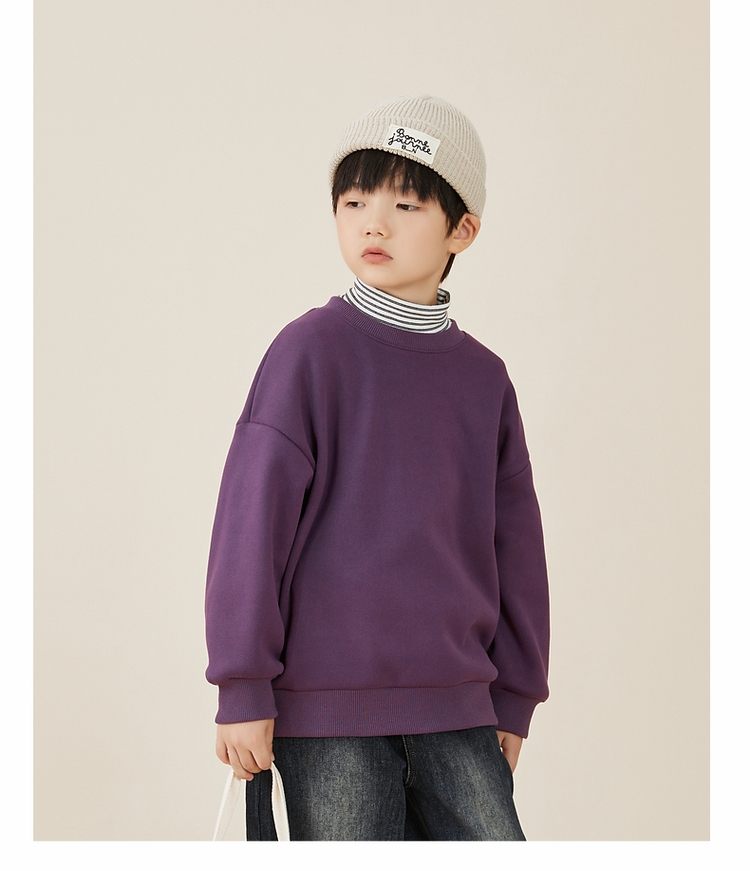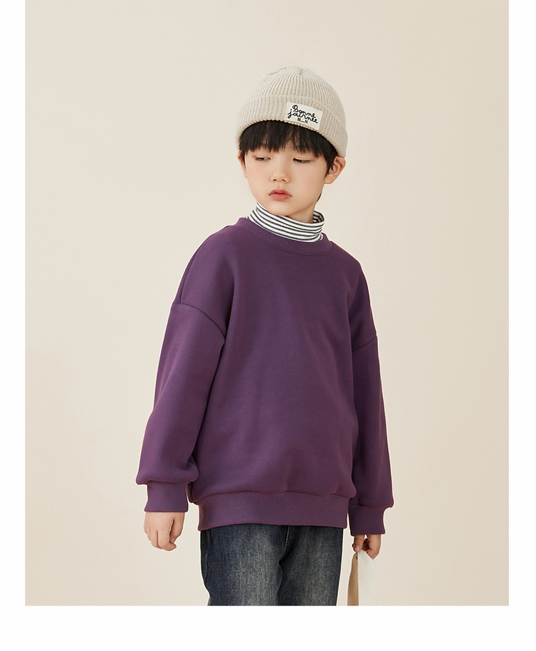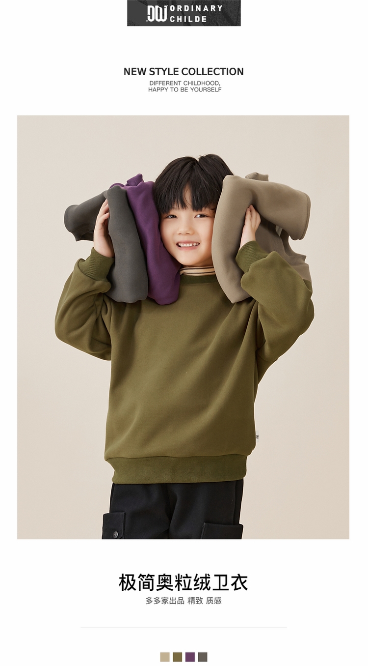【宠粉专享团购价59.9元】多多家中大童儿童时尚简约百搭纯色秋冬加绒卫衣8455