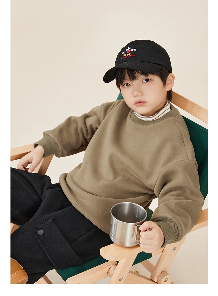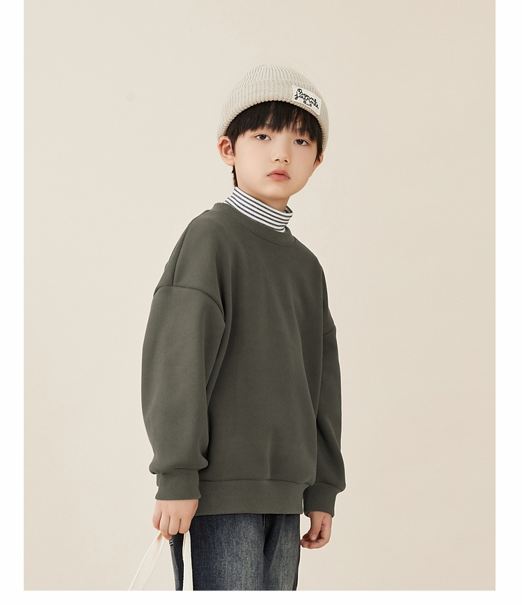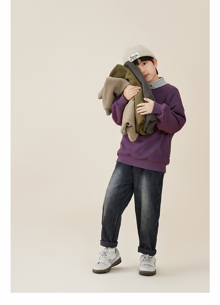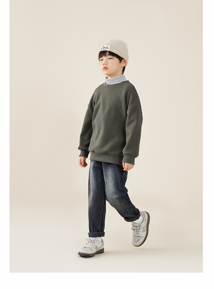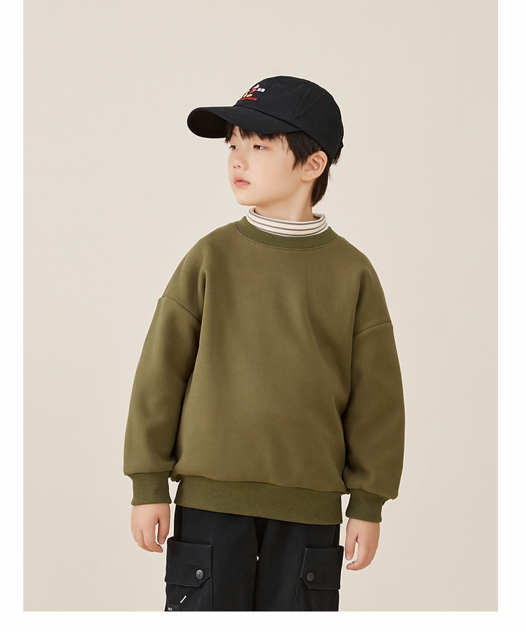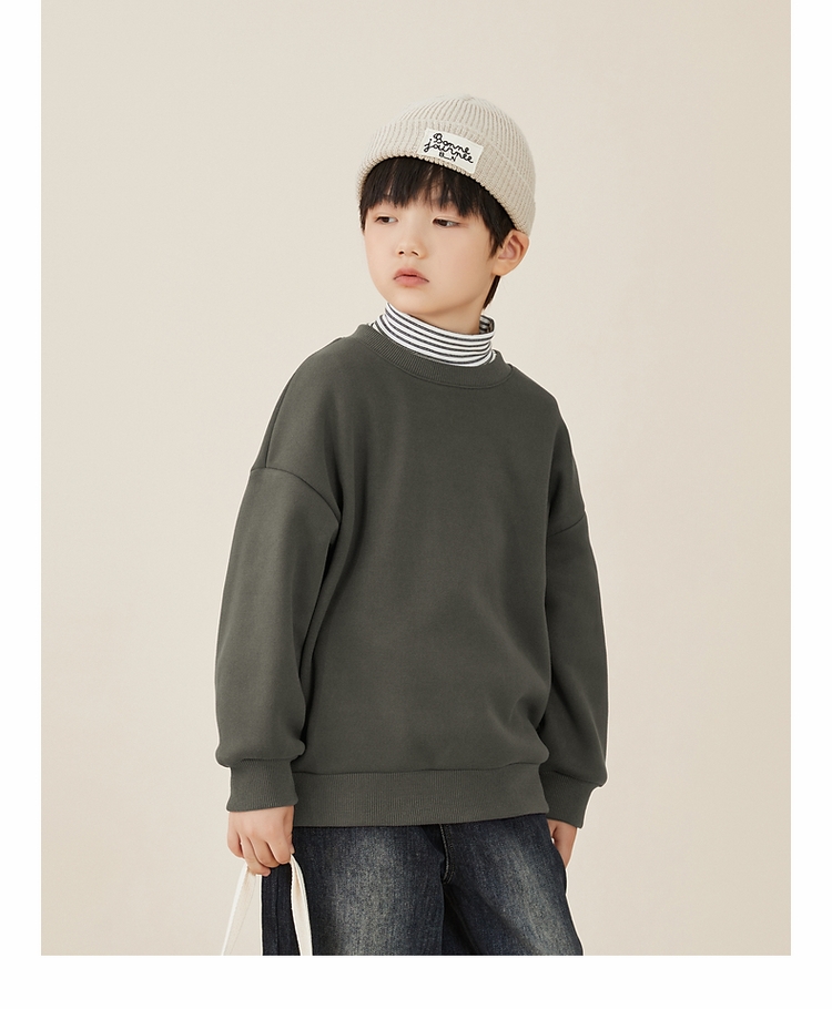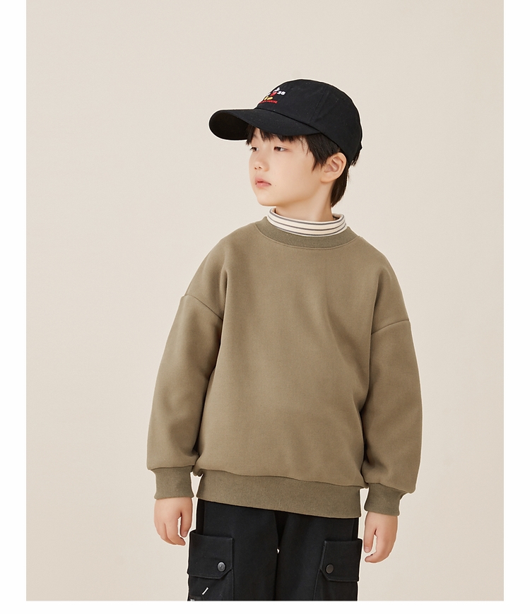 【宠粉专享团购价59.9元】多多家中大童儿童时尚简约百搭纯色秋冬加绒卫衣8455