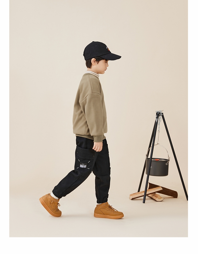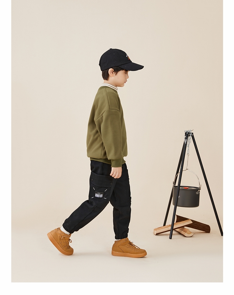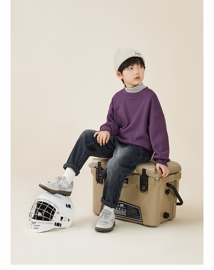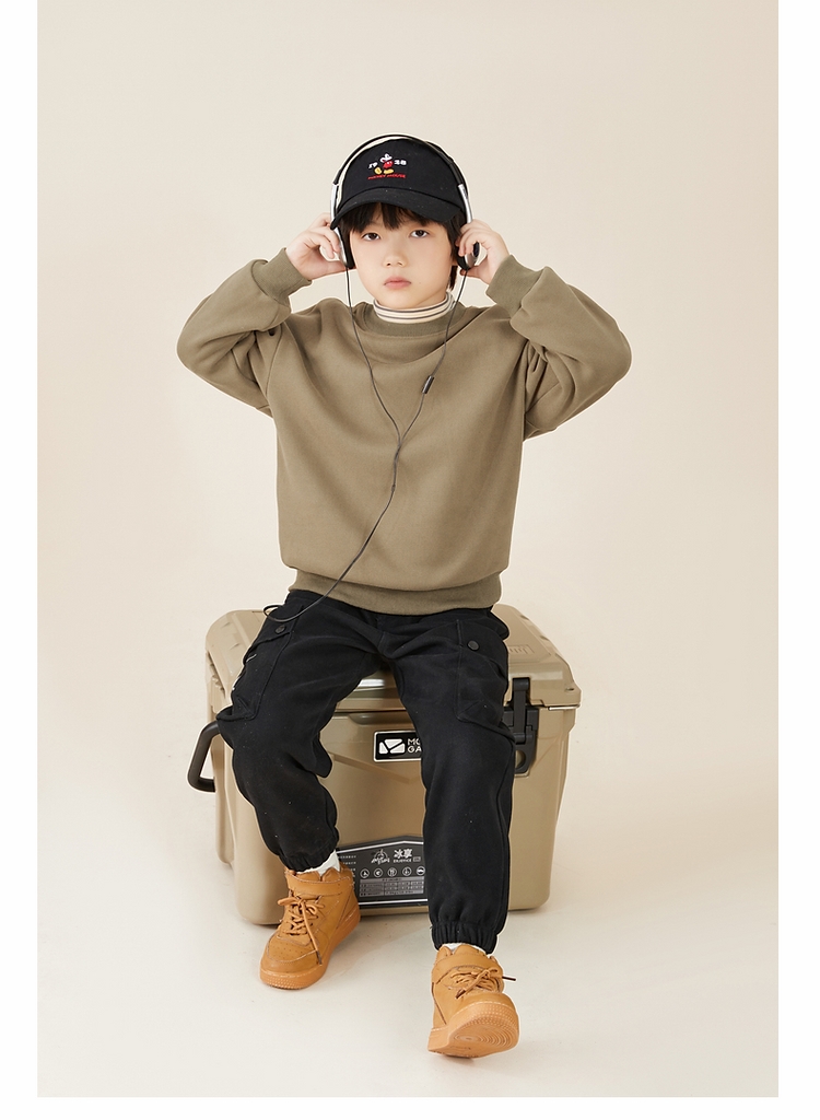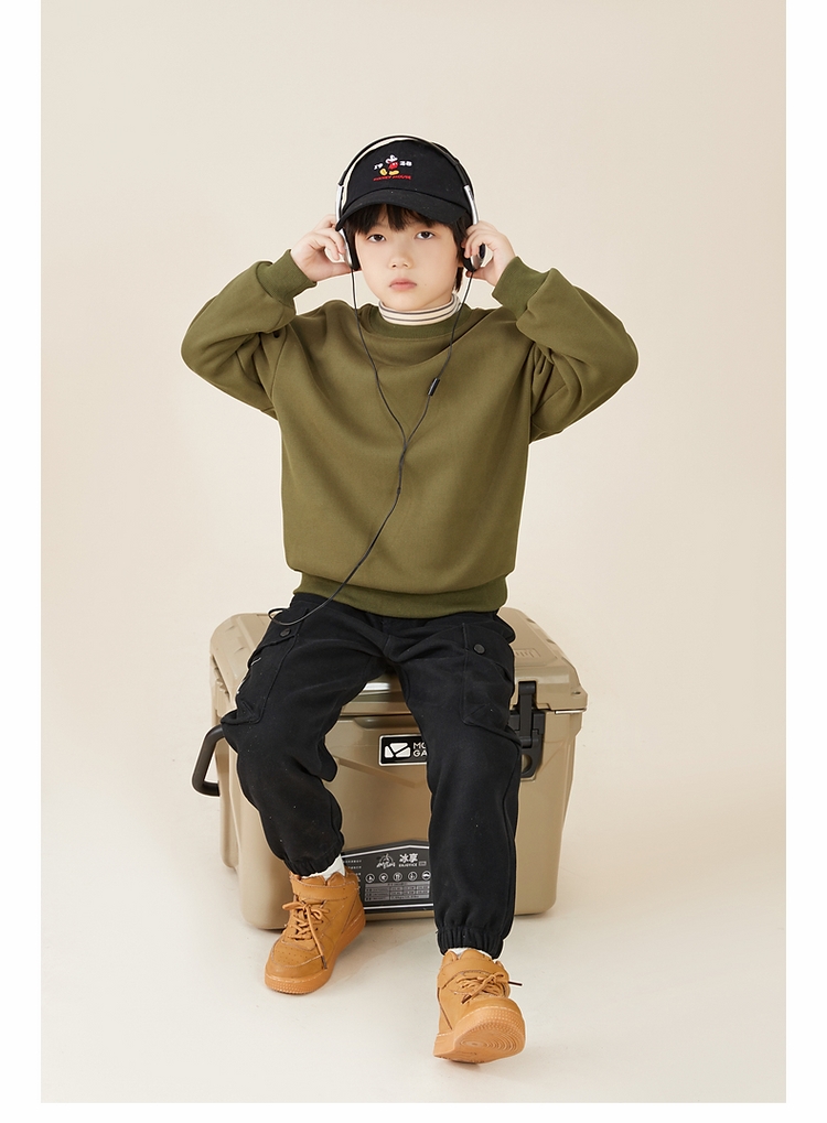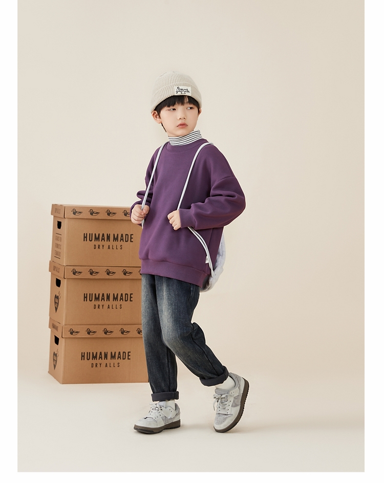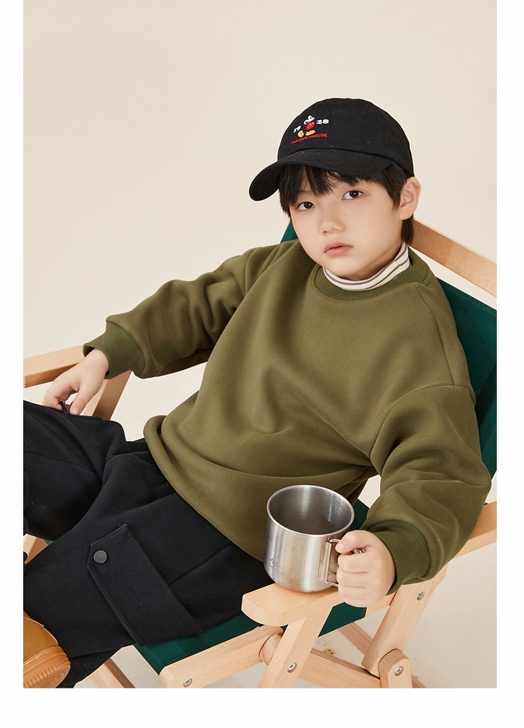 【宠粉专享团购价59.9元】多多家中大童儿童时尚简约百搭纯色秋冬加绒卫衣8455