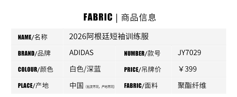SFS阿迪达斯2026世界杯阿根廷短袖训练服 JY7029