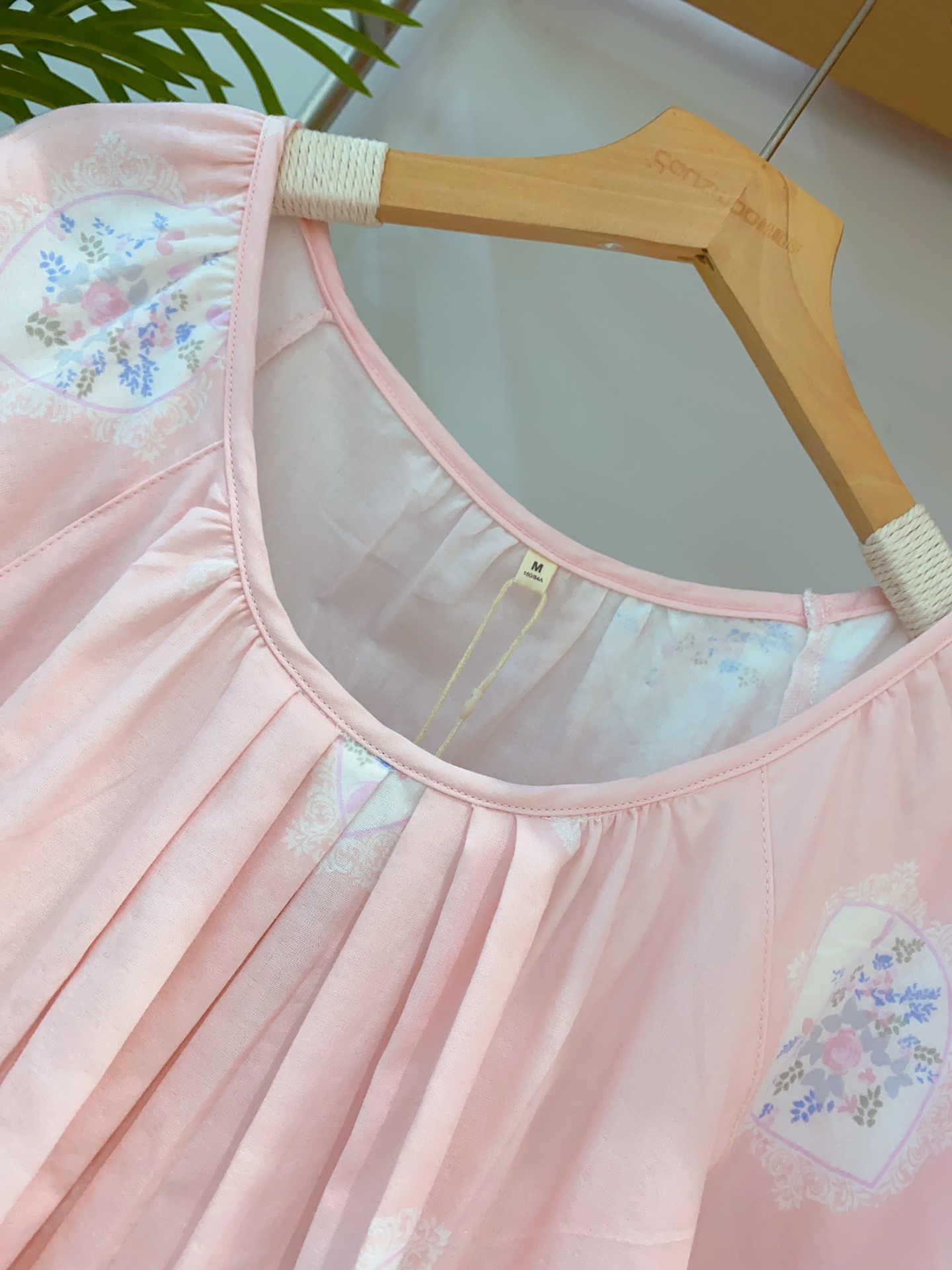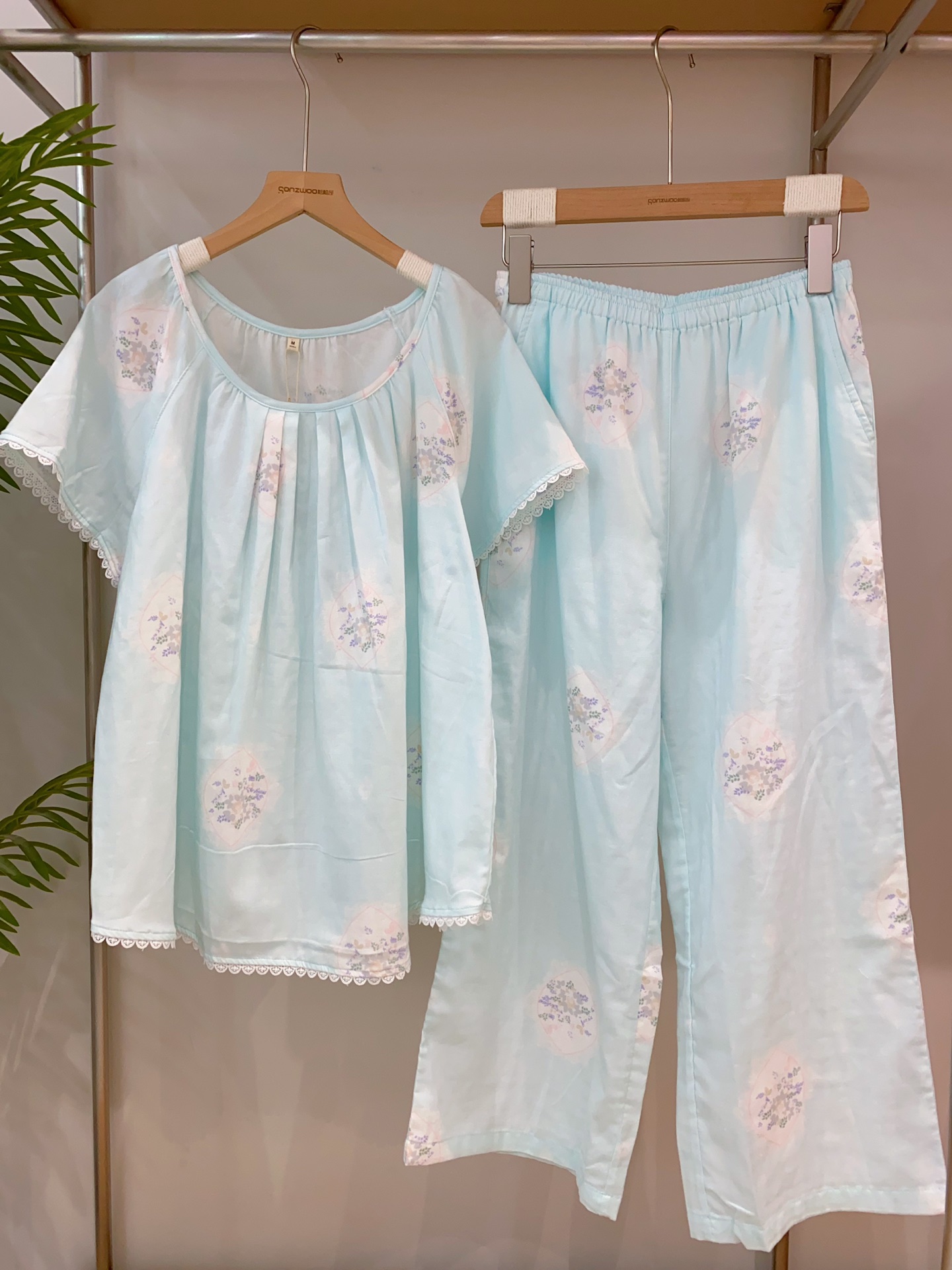 松植屋夏季女款【淑瑶】圆领短袖长裤套装全棉100%纯棉双层纱睡衣家居服