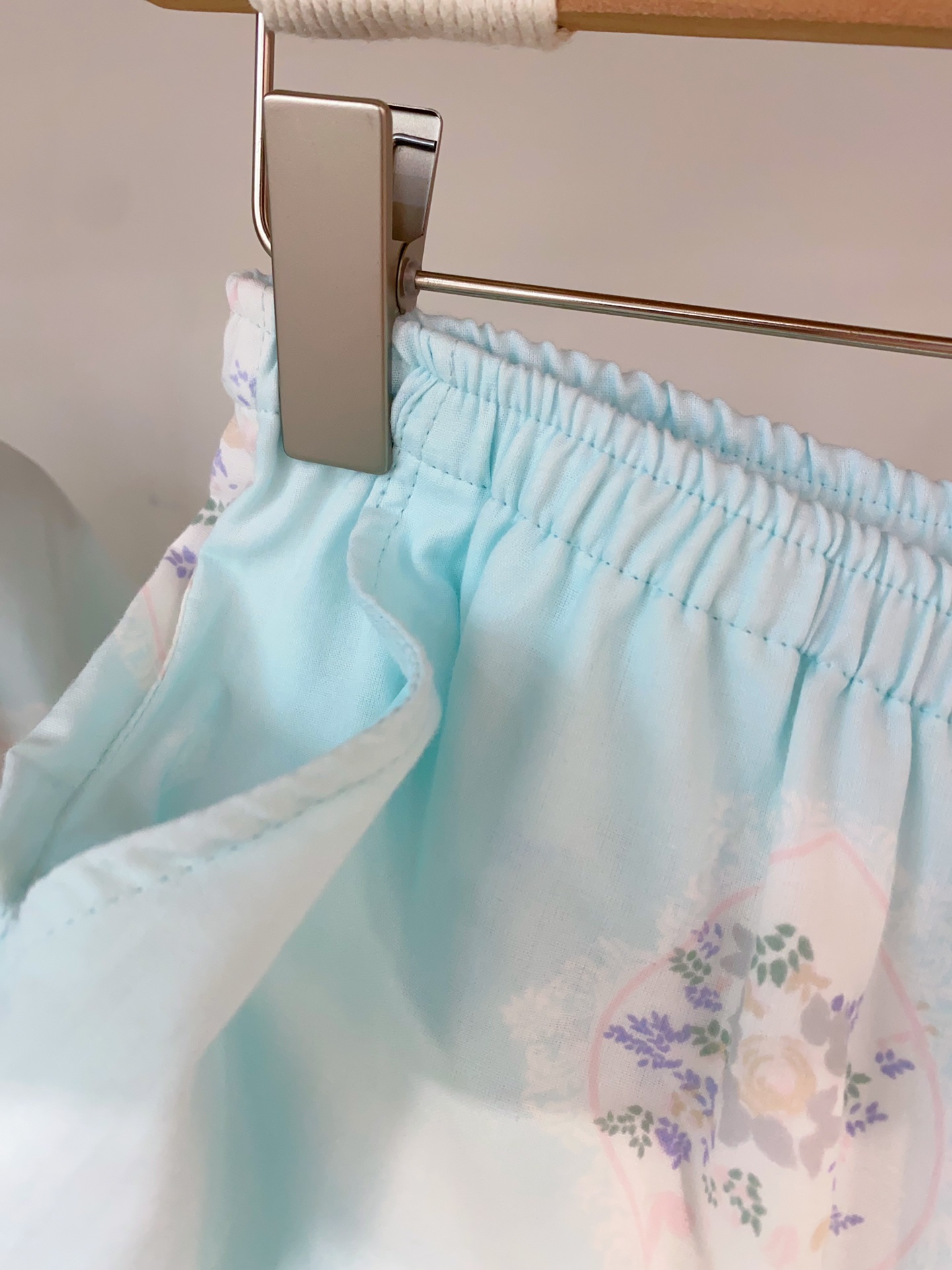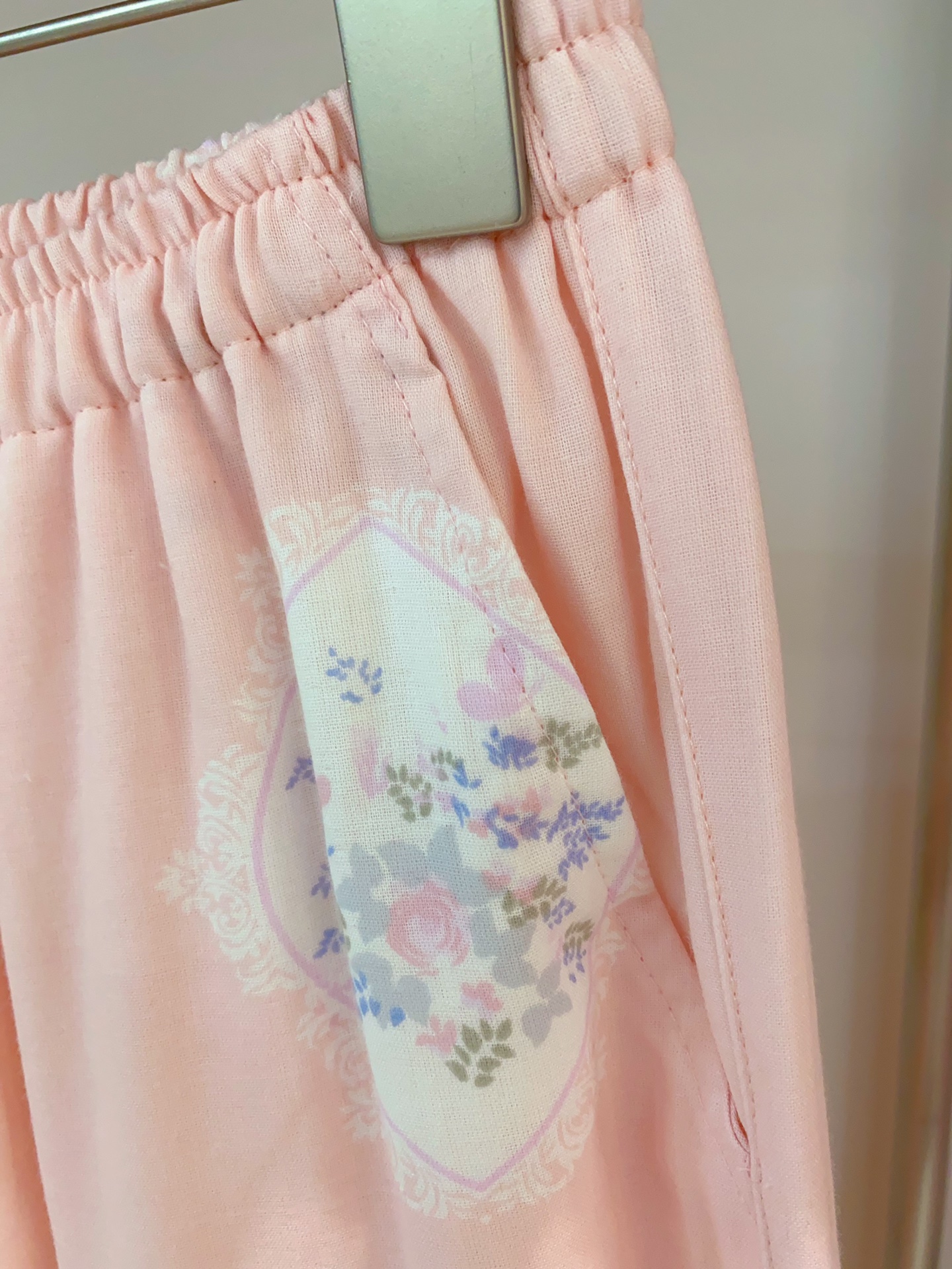 🌸 碎花图案清新治愈;蕾丝包边点缀+宽松版型,直筒裤带口袋实用藏肉。
