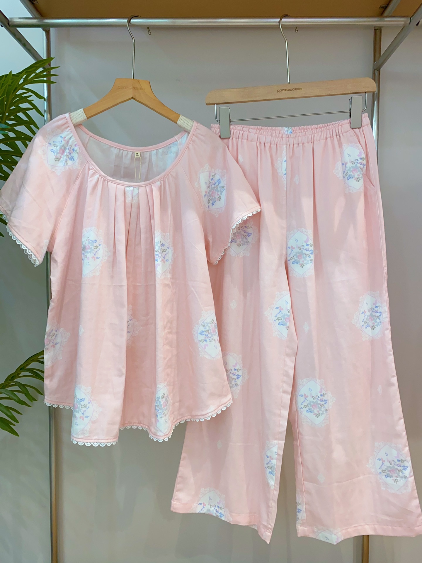 松植屋[淑瑶]女士圆领短袖长裤套装