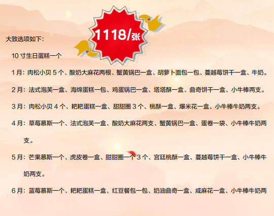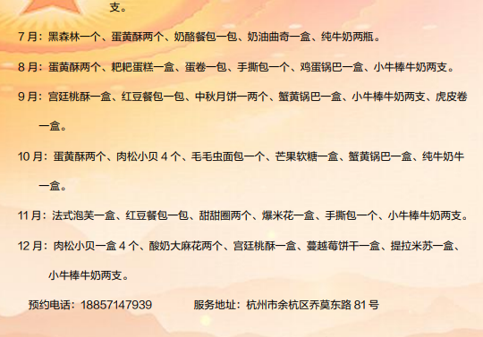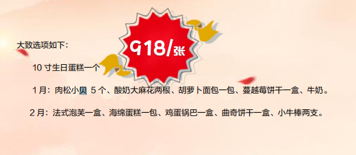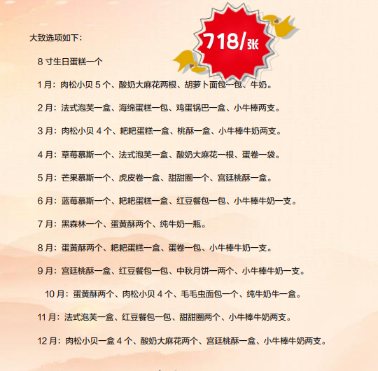 预定生日蛋糕可按服务卡说明提前预定
