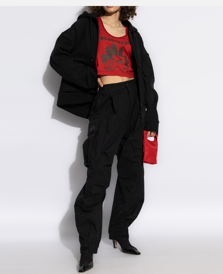 DSQUARED2 女士徽标贴花棉质休闲裤 黑色 S80KA0047 D35224 900