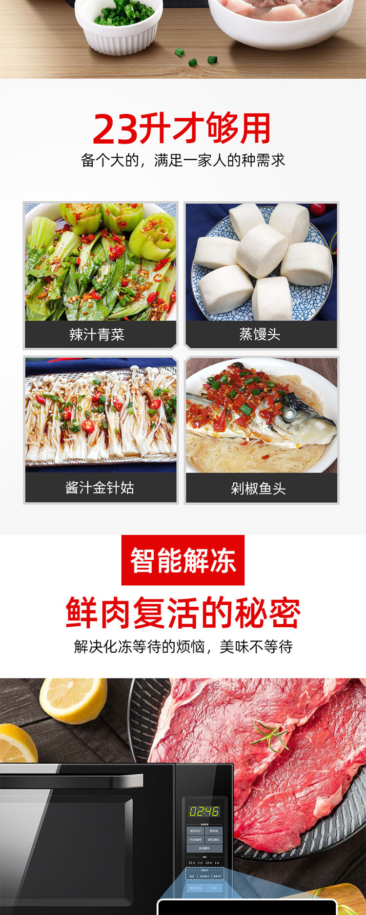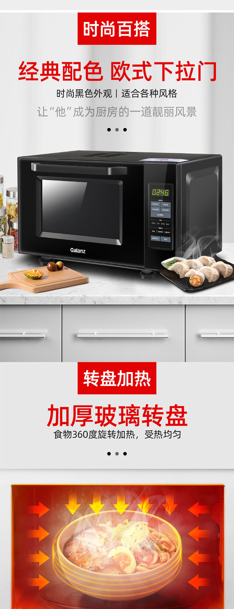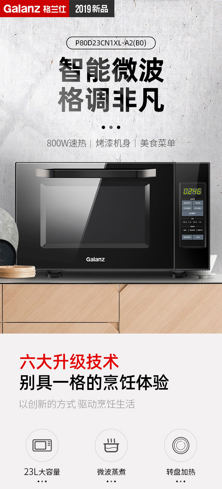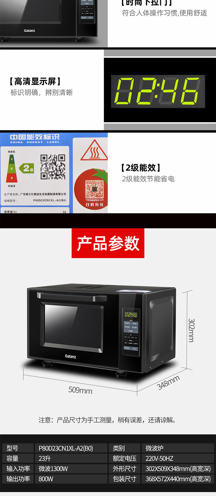 格兰仕(Galanz) 家用23升微波炉 转盘加热智能解冻 下拉门P80D23CN1XL-A2(B0)