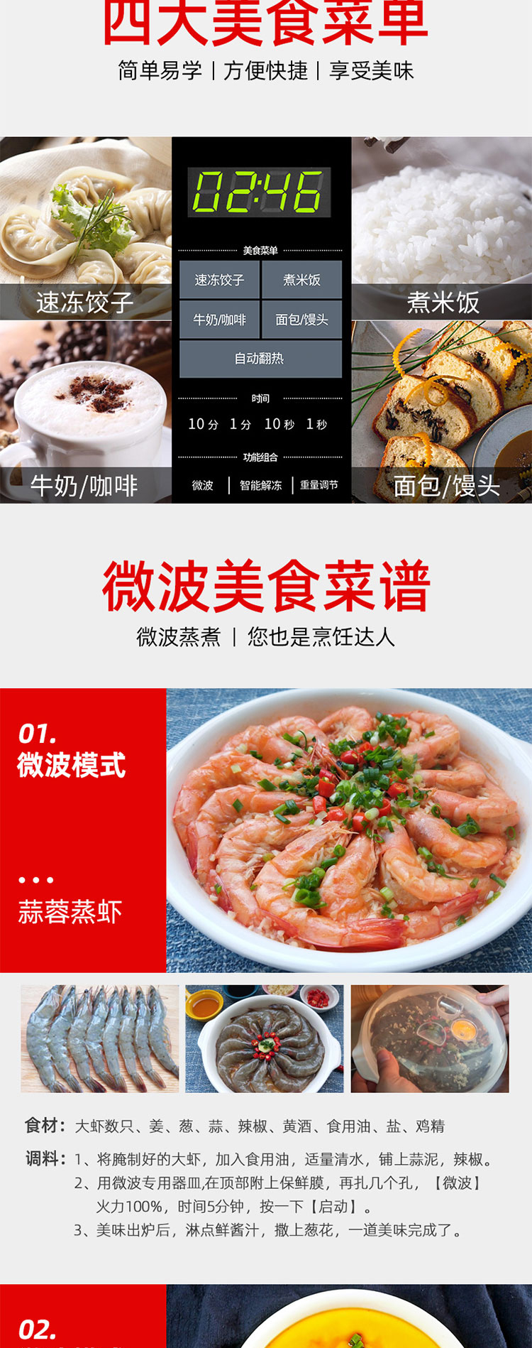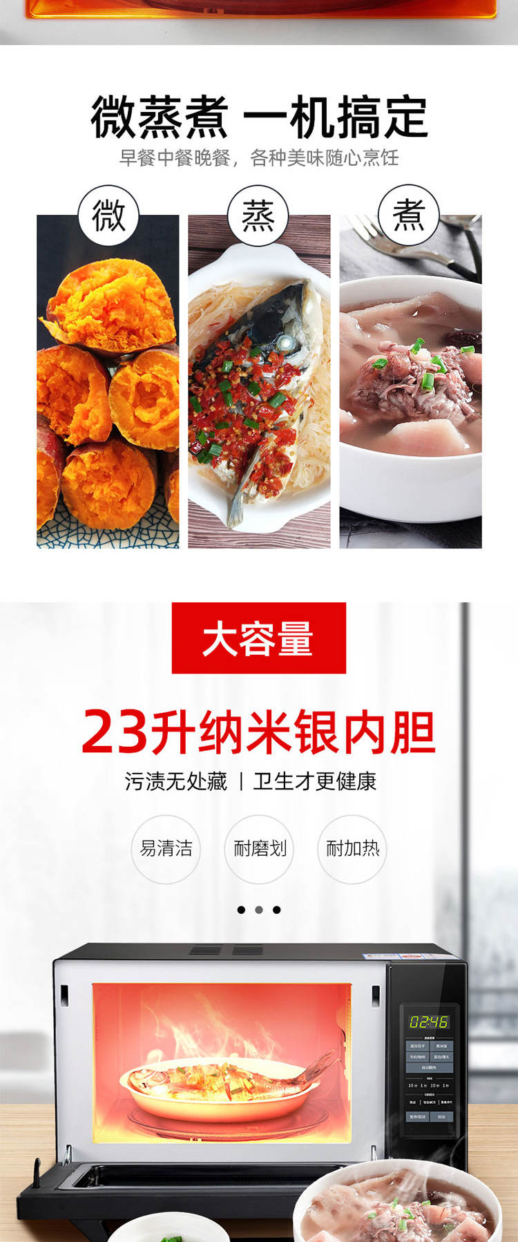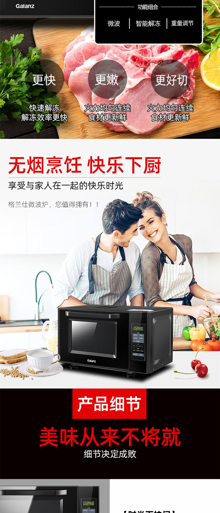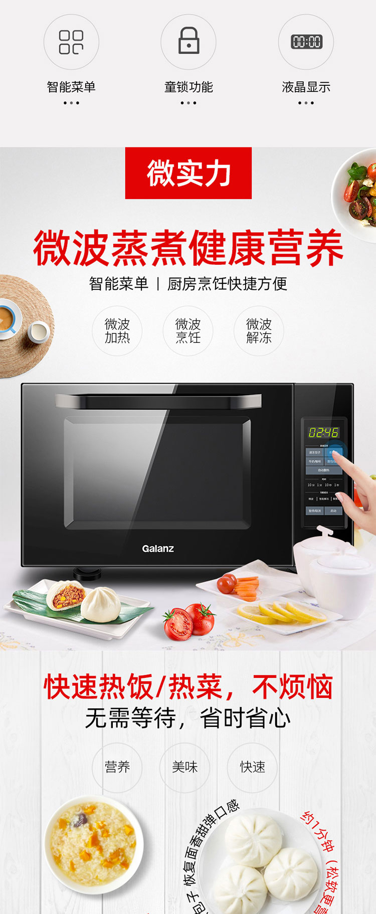 格兰仕(Galanz) 家用23升微波炉 转盘加热智能解冻 下拉门P80D23CN1XL-A2(B0)