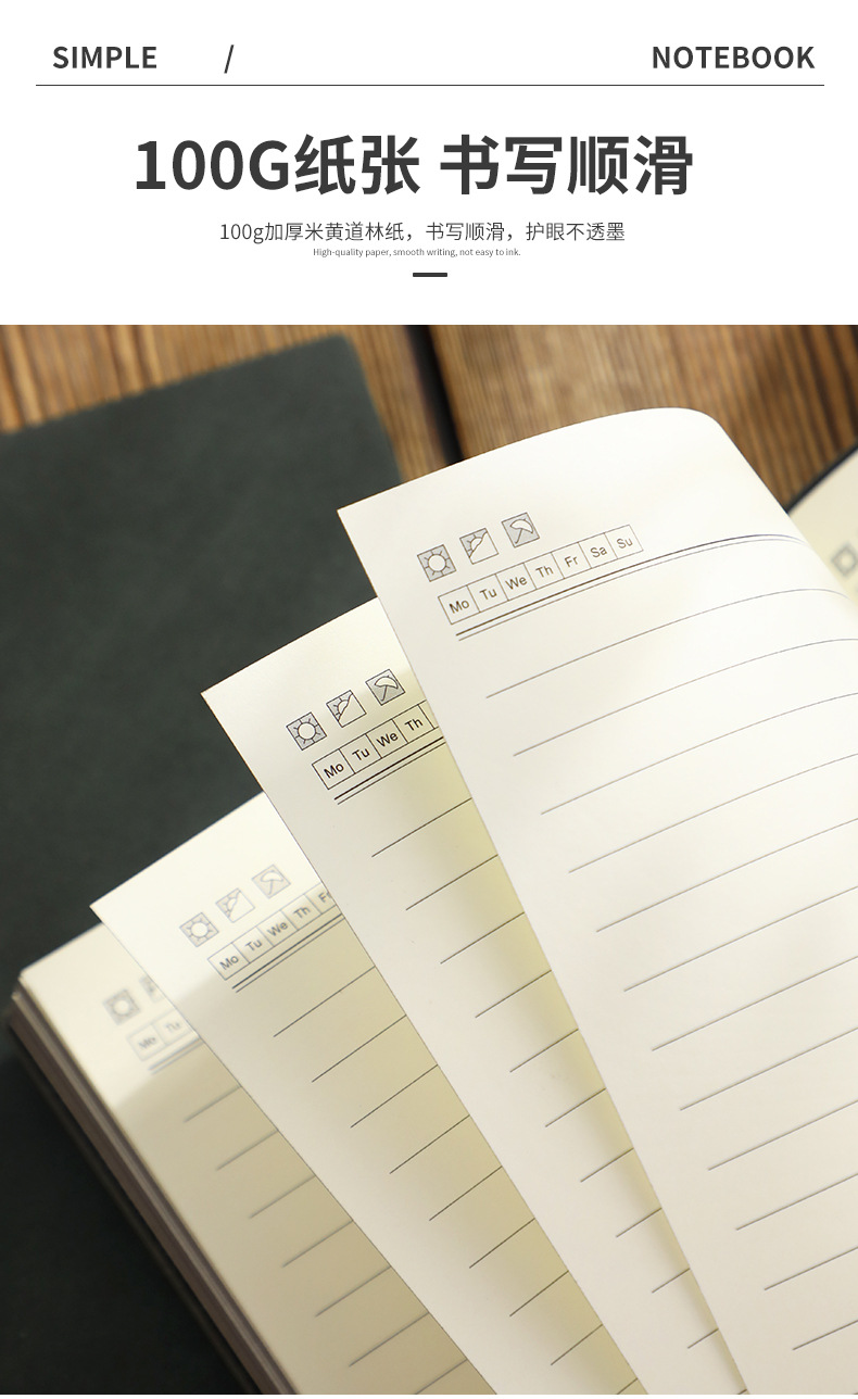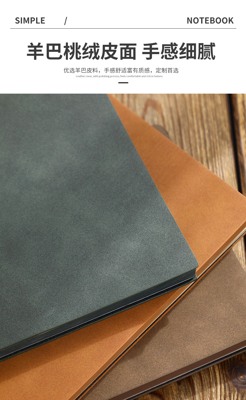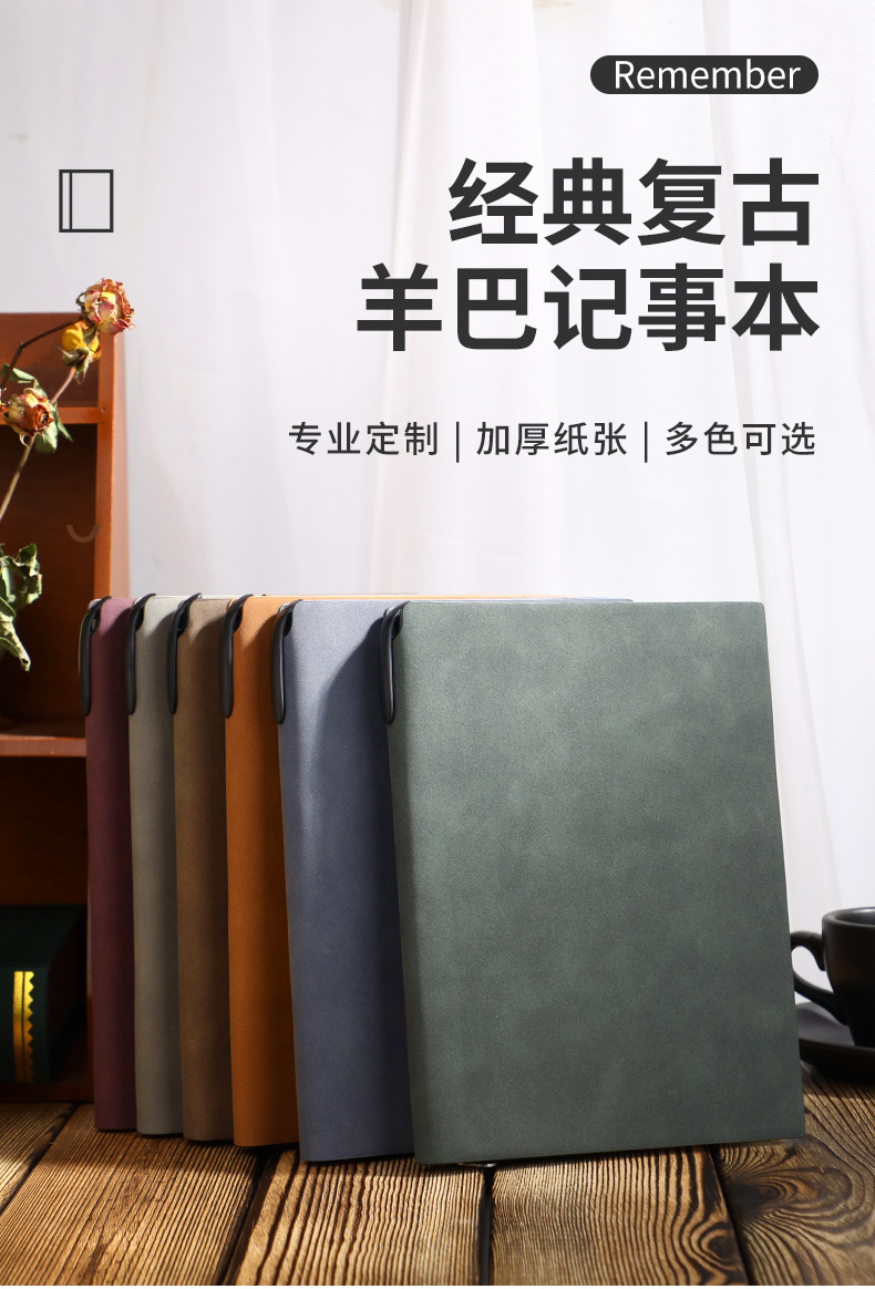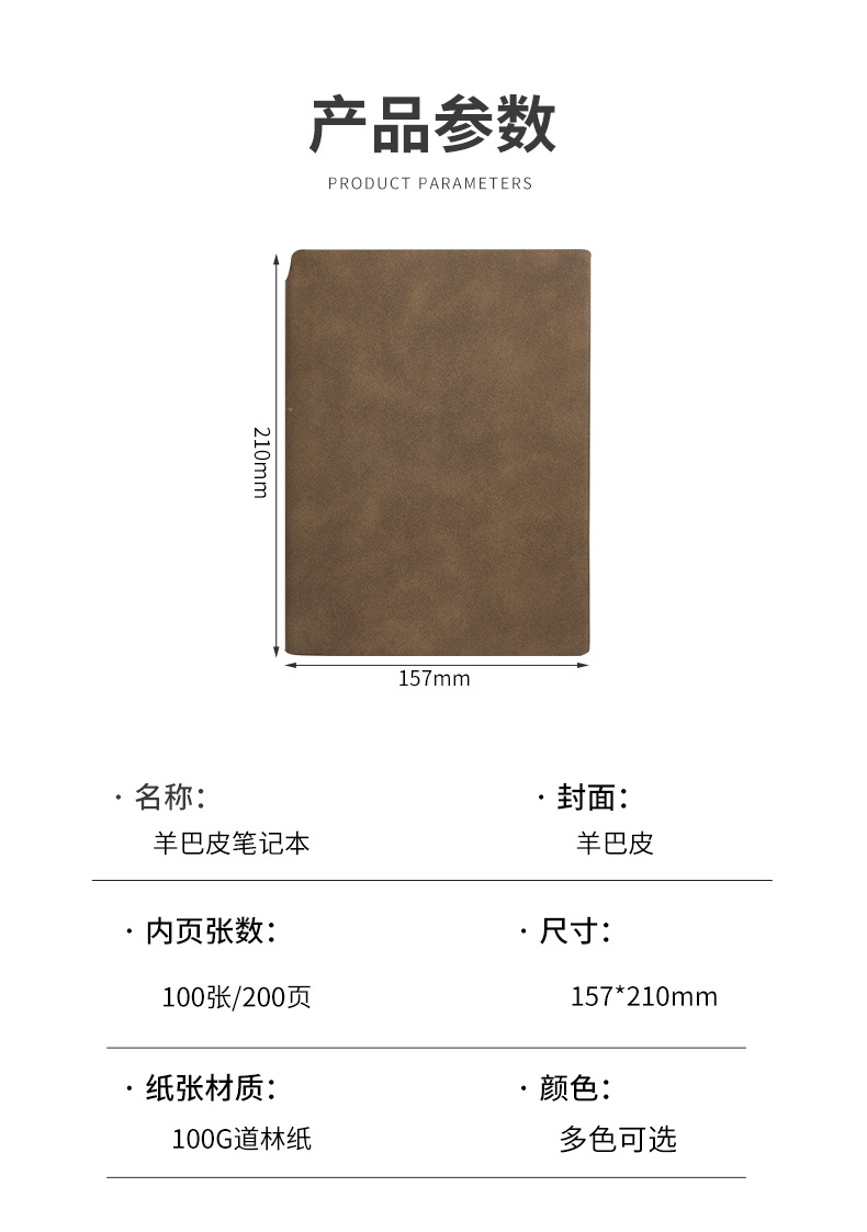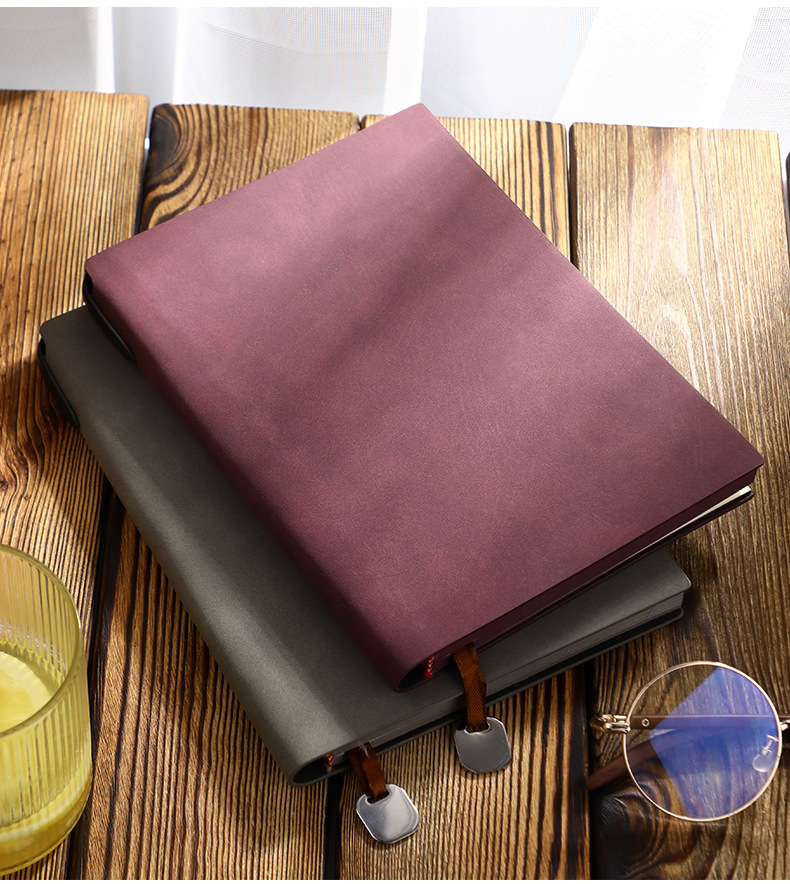 【甄选羊巴皮 100g米黄道林纸】加厚A5简约工作笔记本/加厚高级肤感记事本 软皮日记本