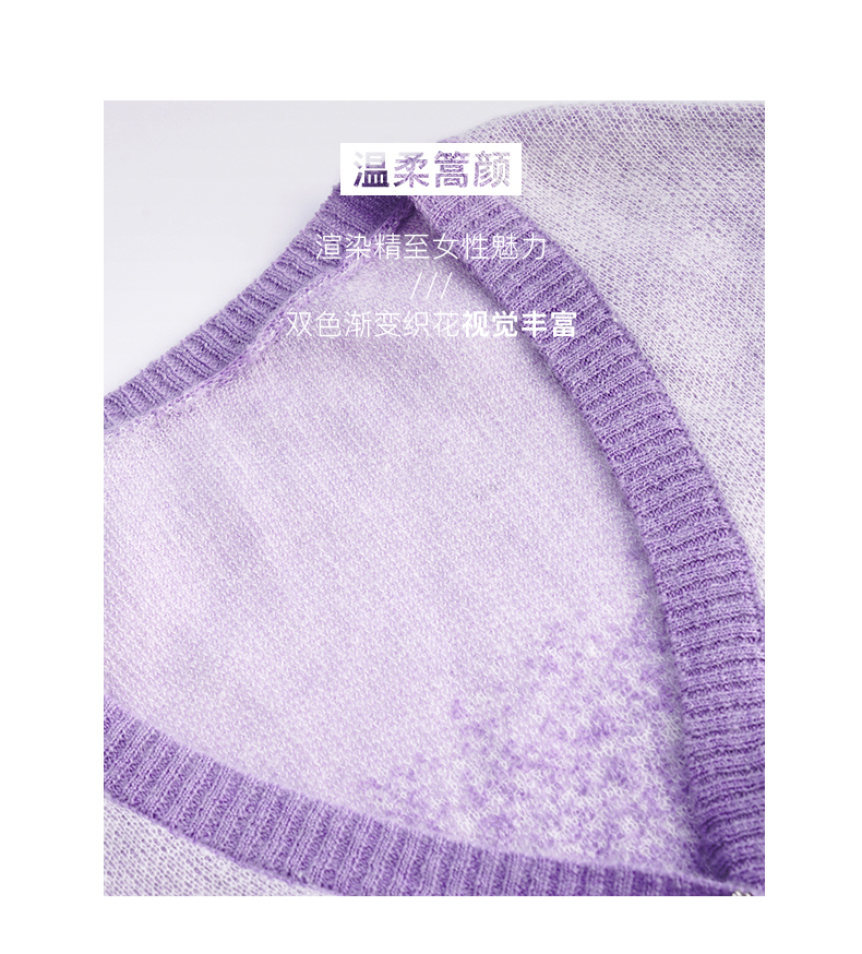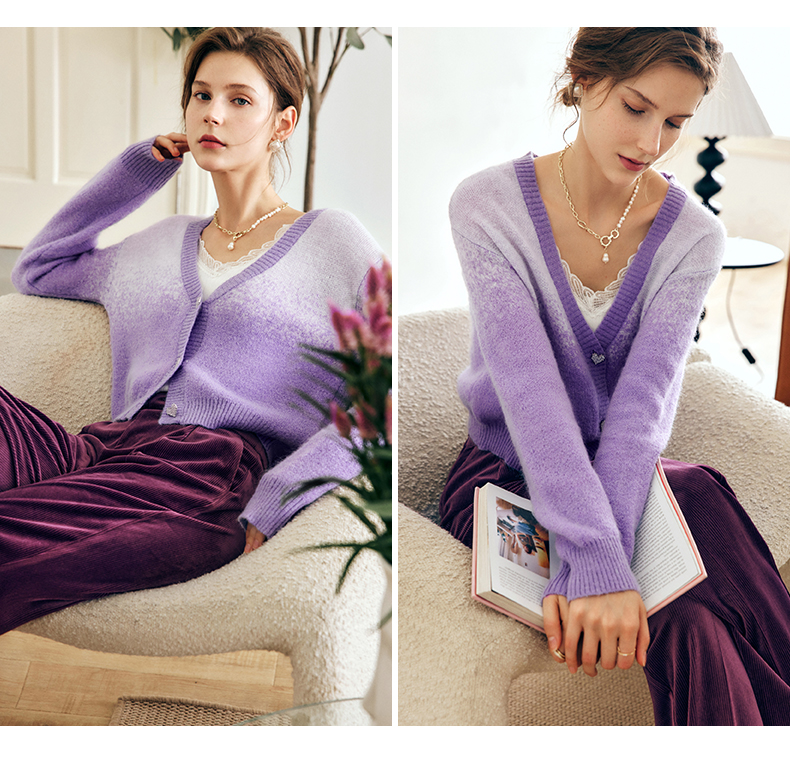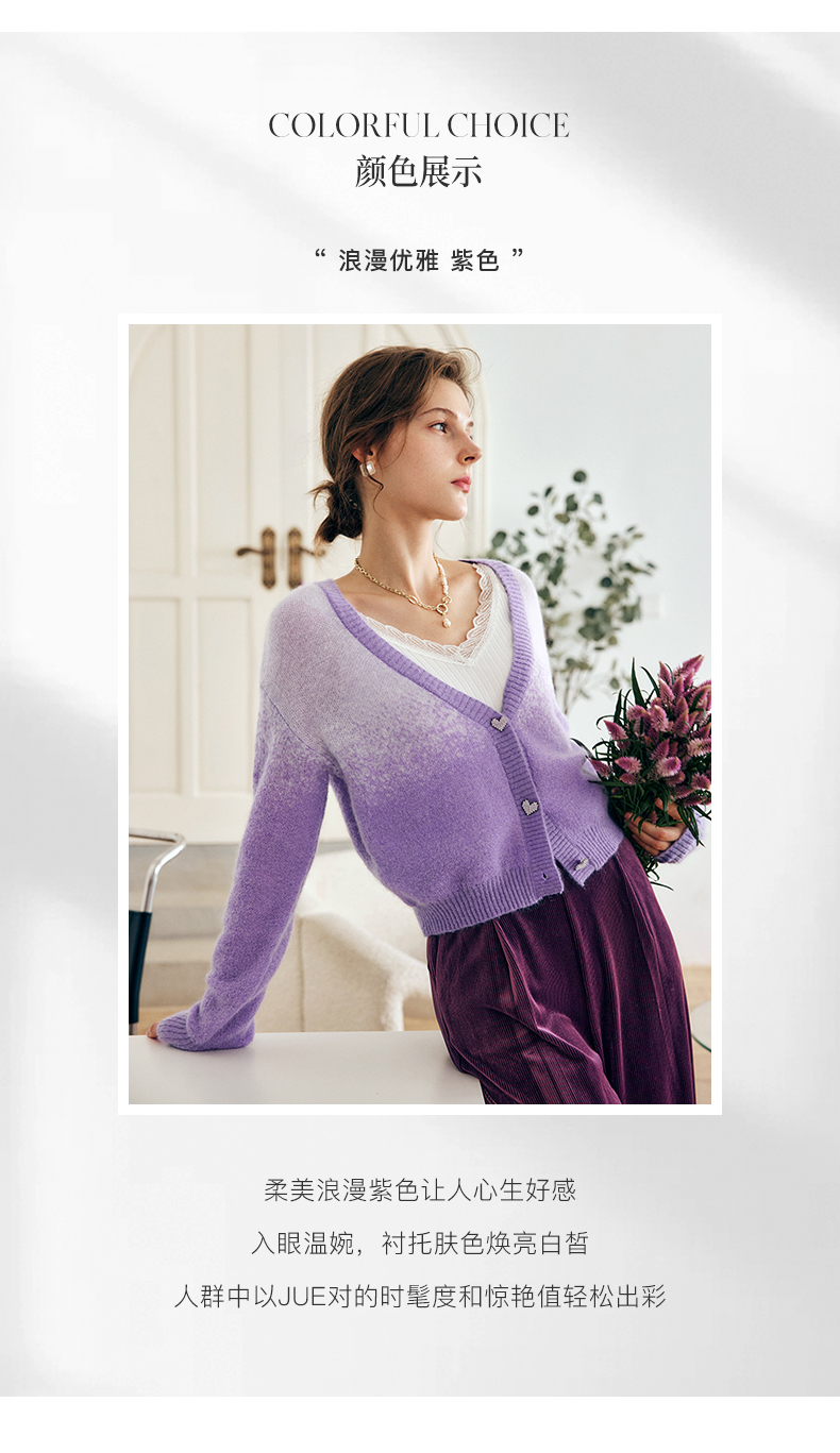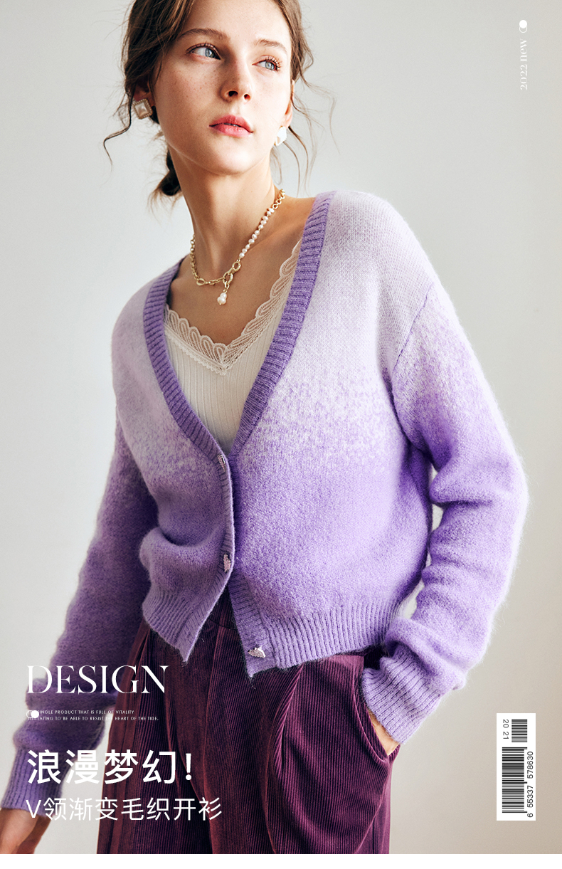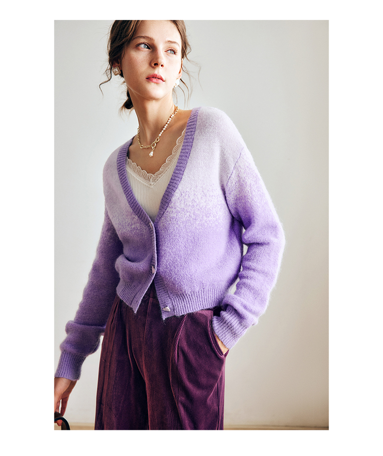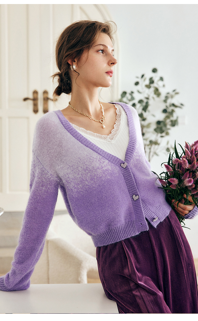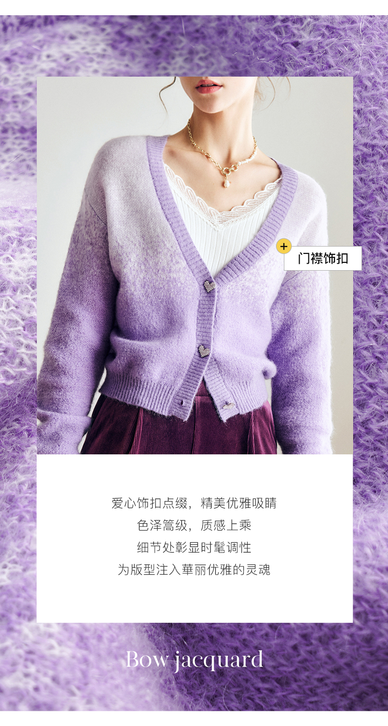 OLrain欧芮儿法式紫色开襟毛衣女早秋2022新款显瘦渐变色针织开衫