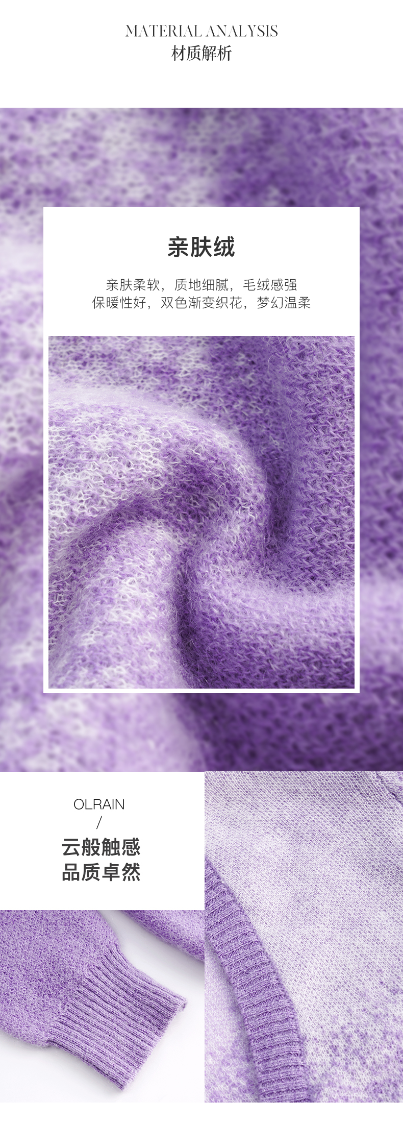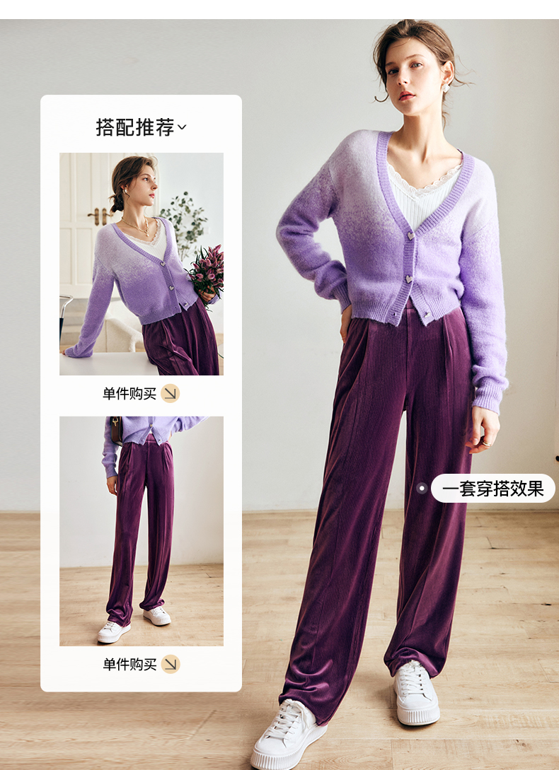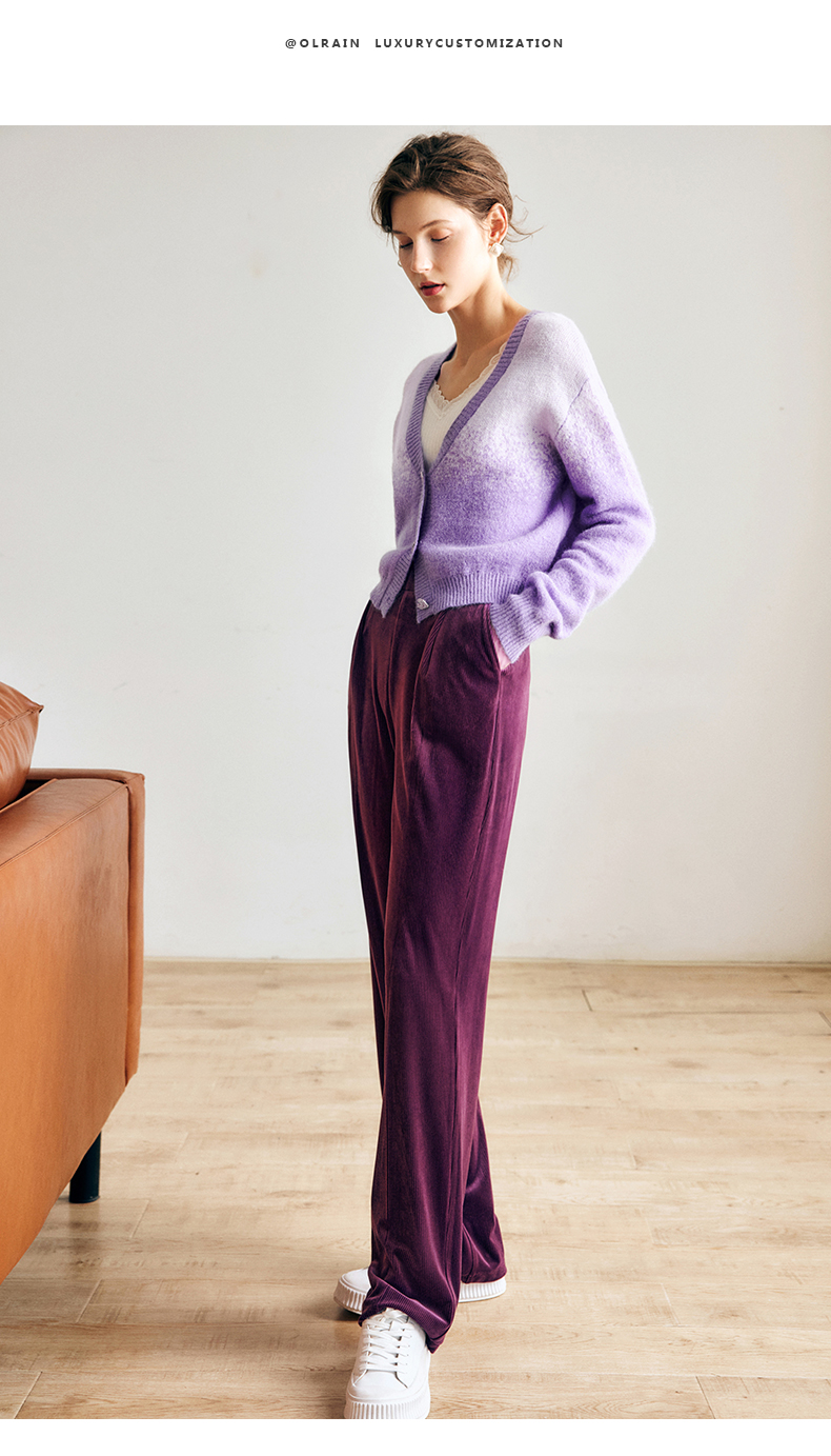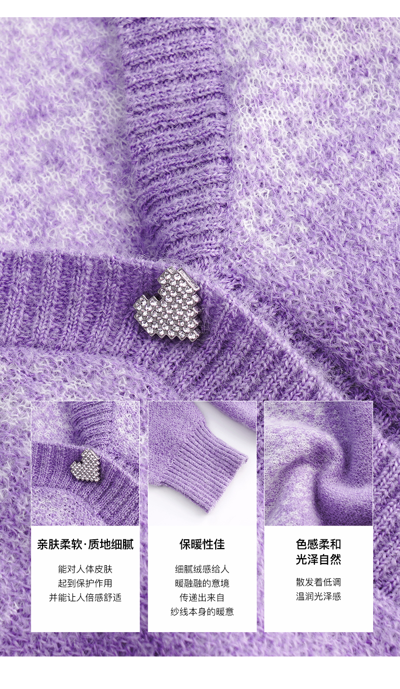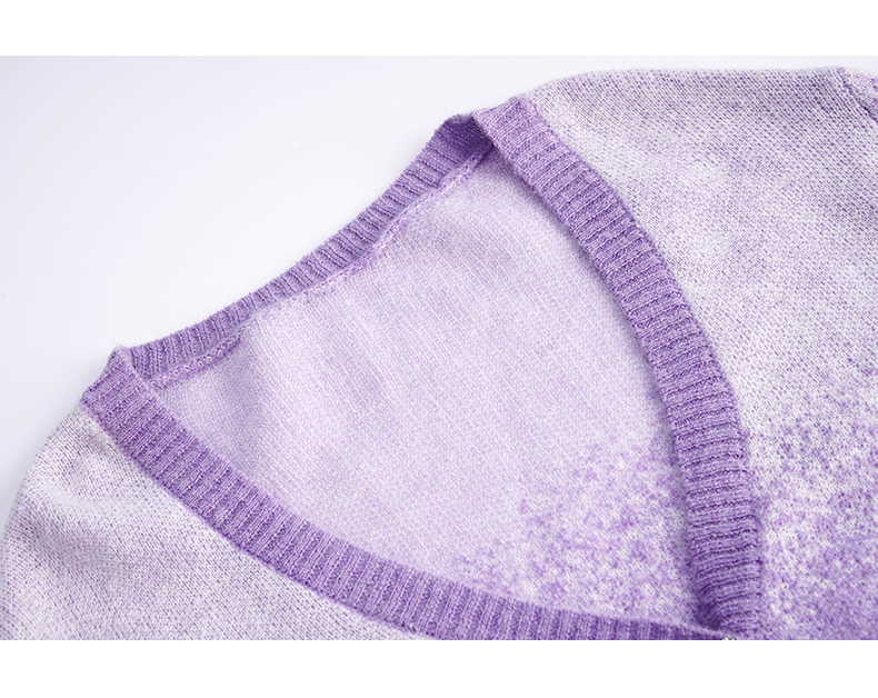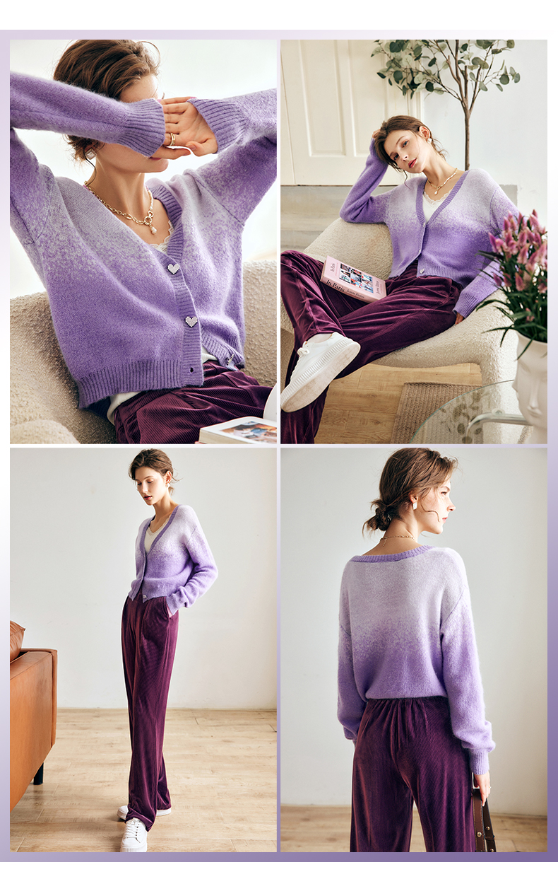 OLrain欧芮儿法式紫色开襟毛衣女早秋2022新款显瘦渐变色针织开衫