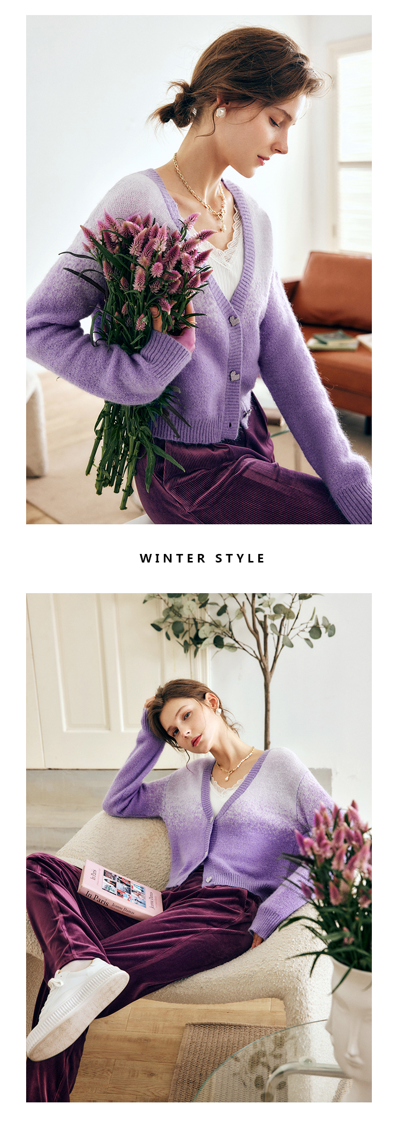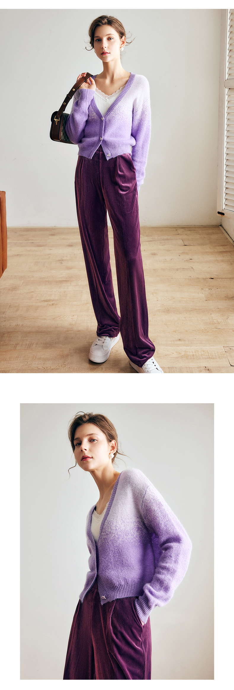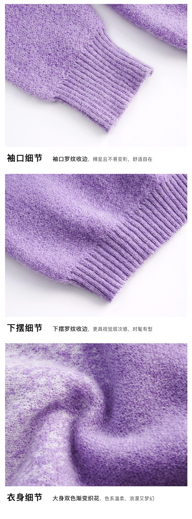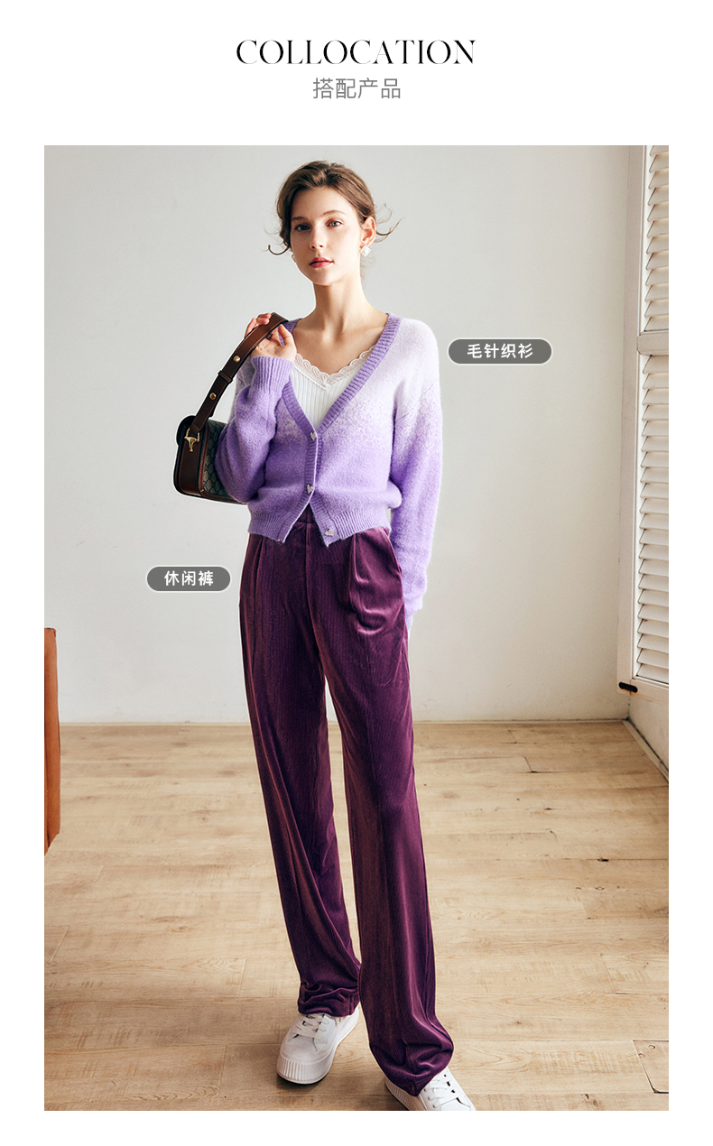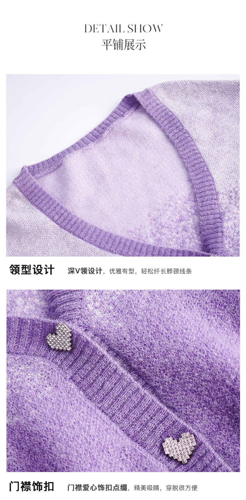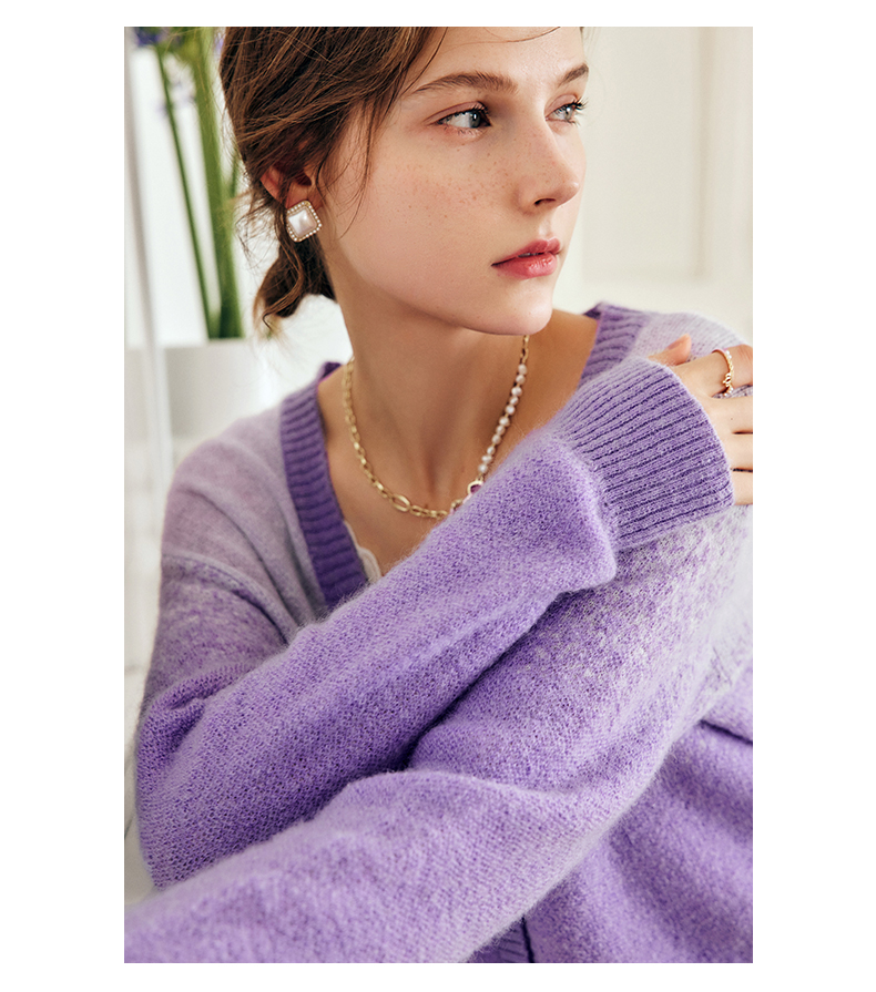 OLrain欧芮儿法式紫色开襟毛衣女早秋2022新款显瘦渐变色针织开衫