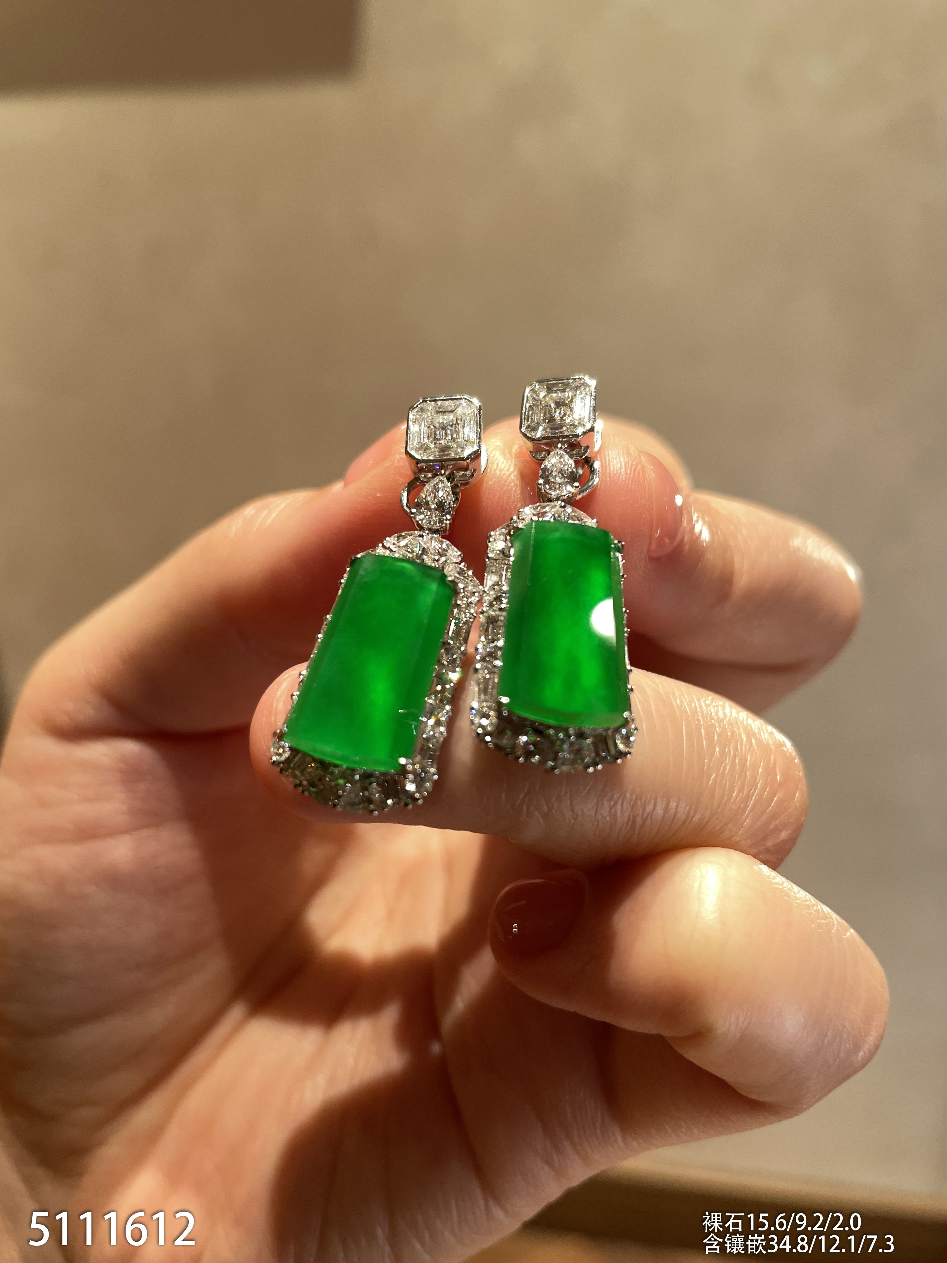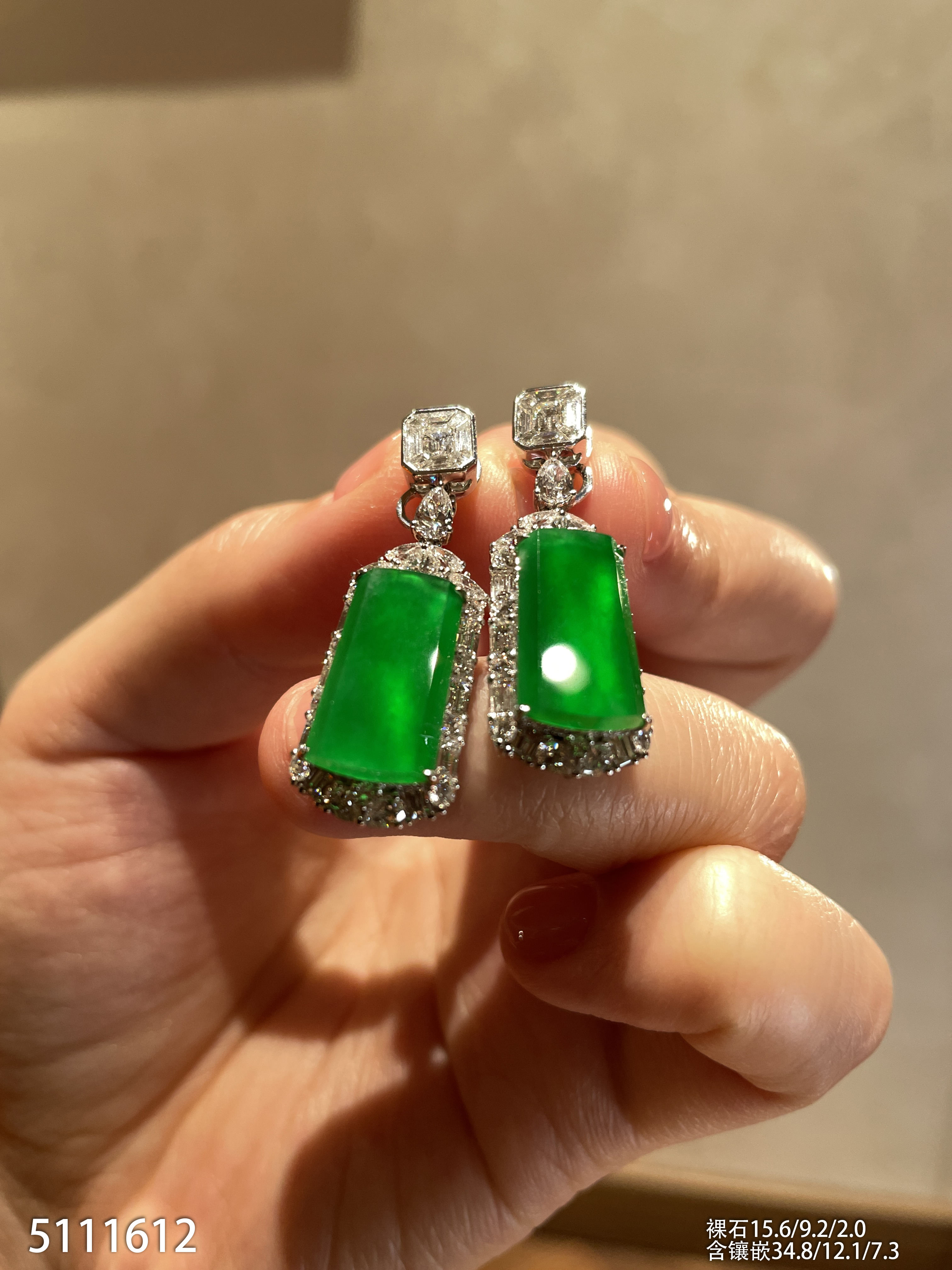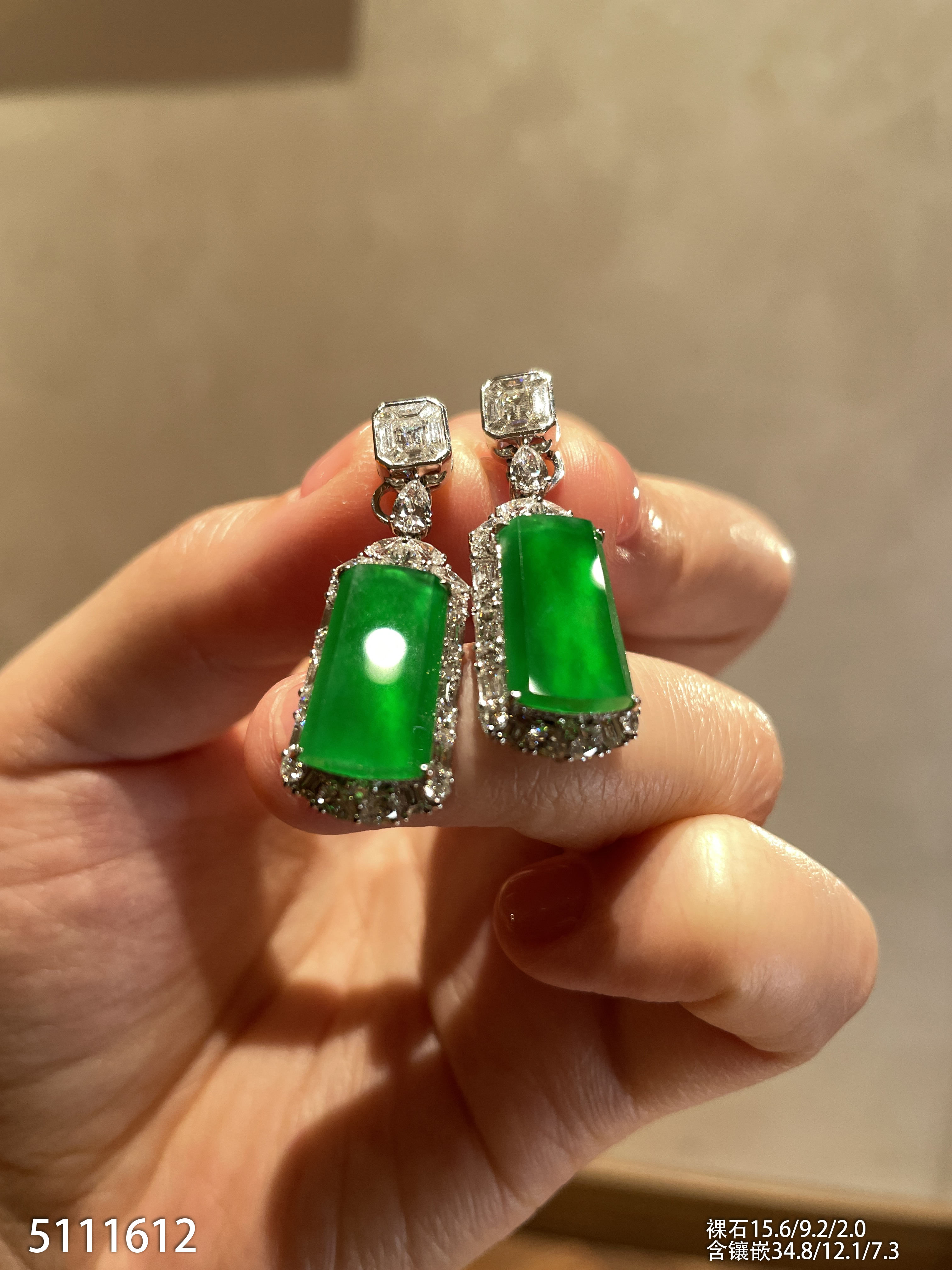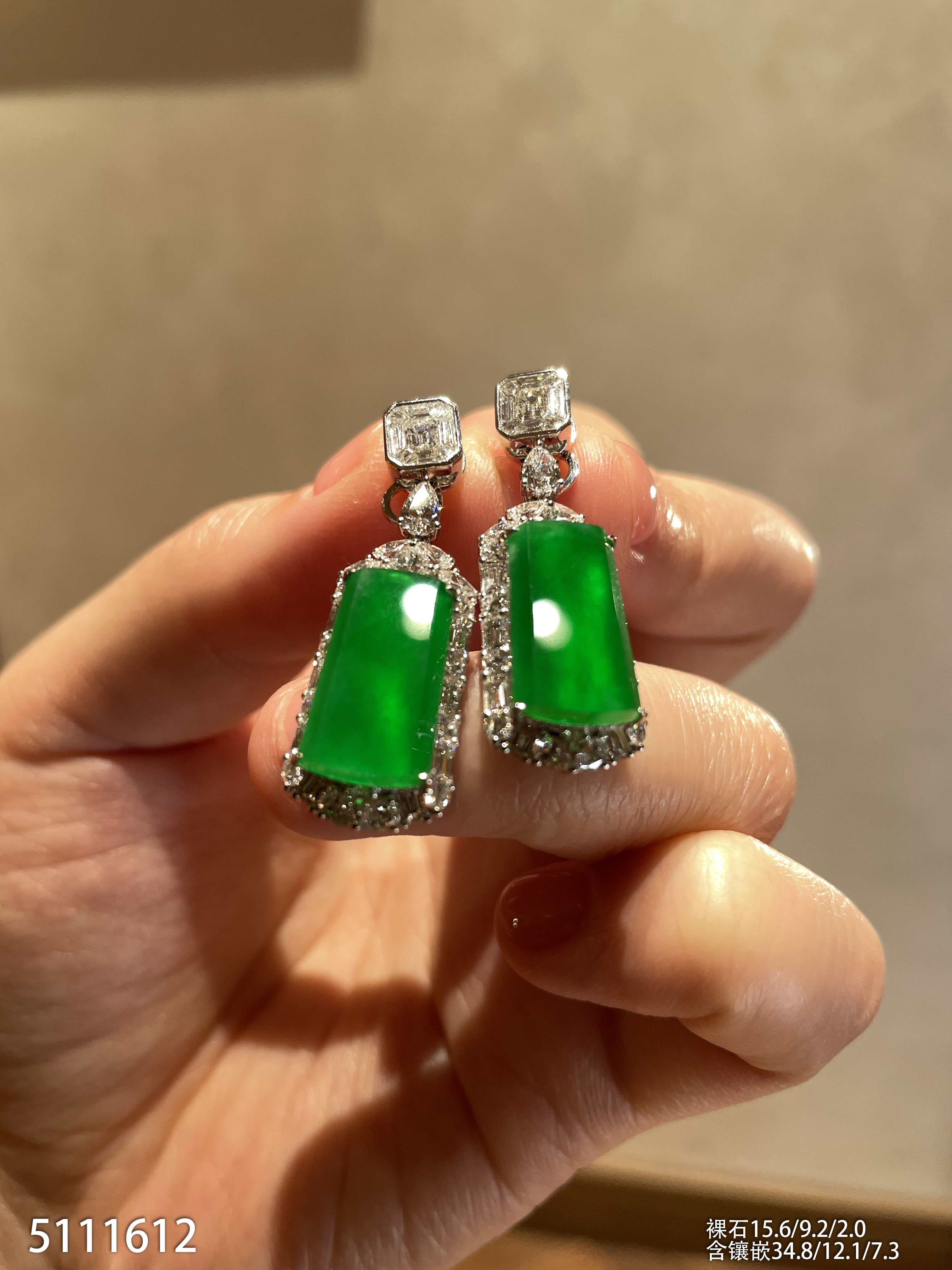 玻璃种帝王绿蛋面耳坠【6023104】具体价格微信咨询