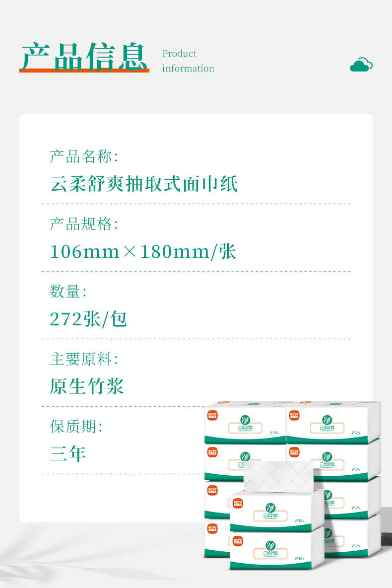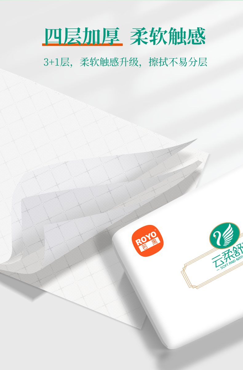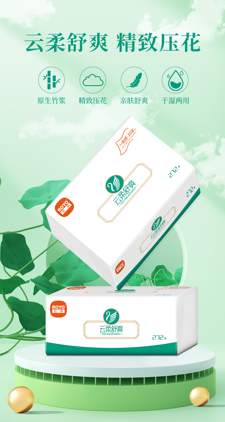 若禺商用软抽纸云柔舒爽系列抽取式面巾纸4层加厚272张/包原生竹浆柔软亲肤1件120包LZ2R04