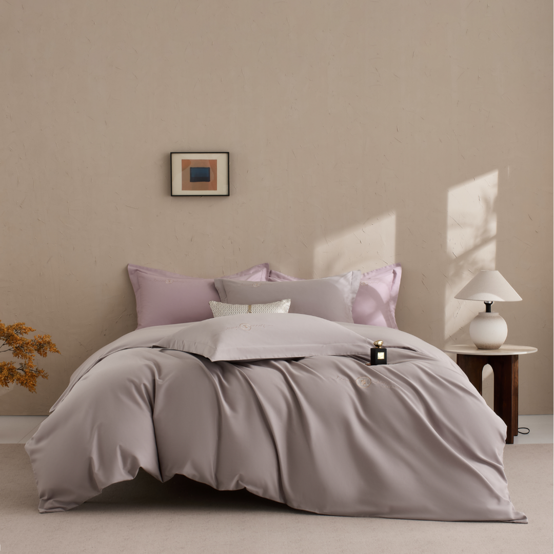 馨韵磨毛四件套走得也是简约风格,但相对雅悦系列的“商务风”,这两款产品在色彩的选择上更加活泼,有月光紫和朦胧灰两种款式。