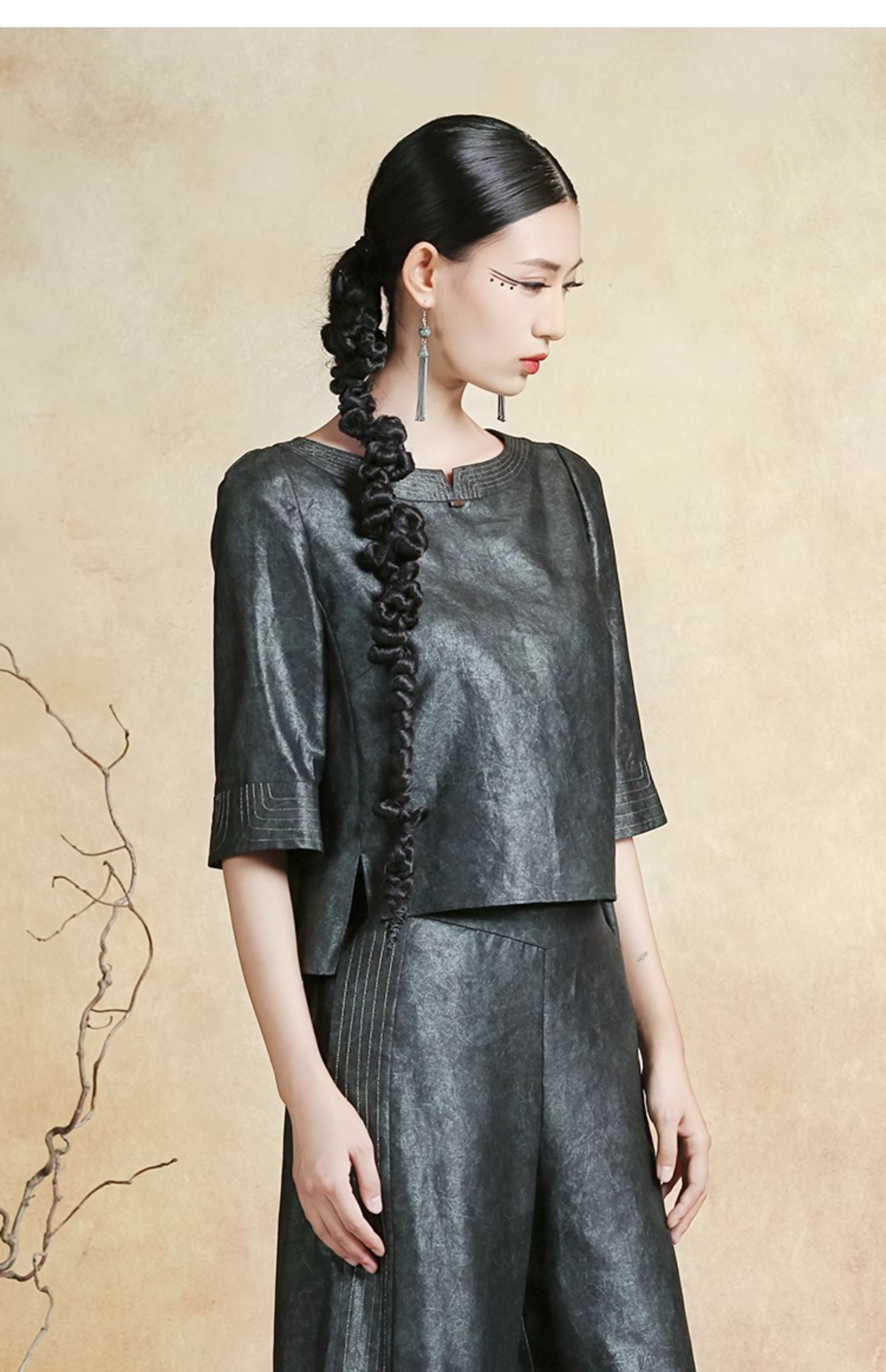 吉祥衣家新中式国风桑蚕丝裙子气质修身女装青铜器套装