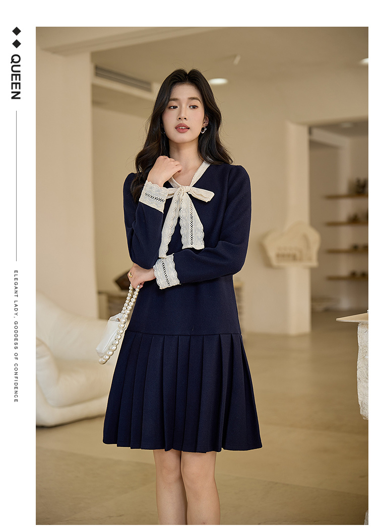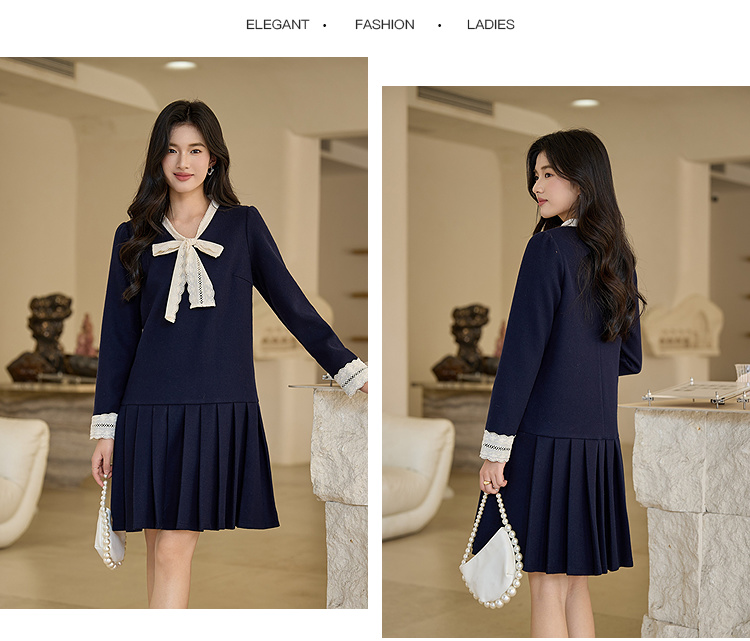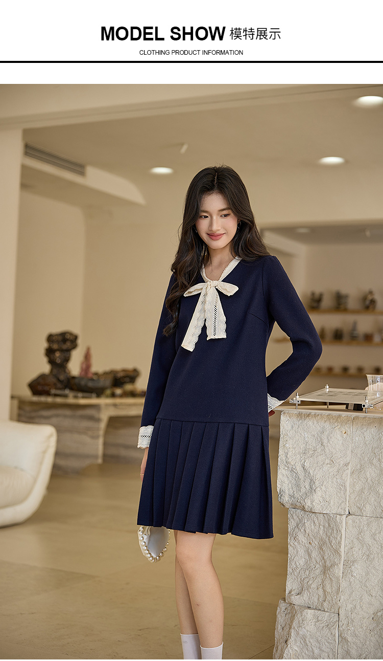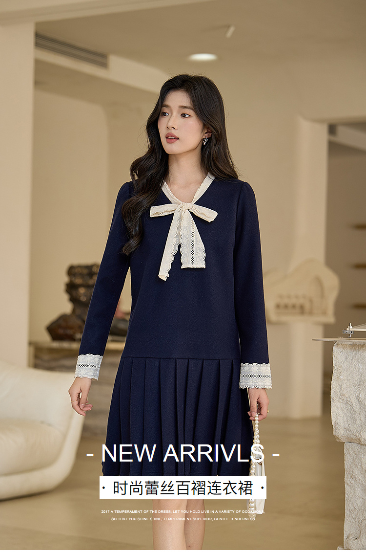 奢姿大码女装2026冬季时尚蕾丝设计百褶连衣裙胖妹妹气质减龄长裙9954894457