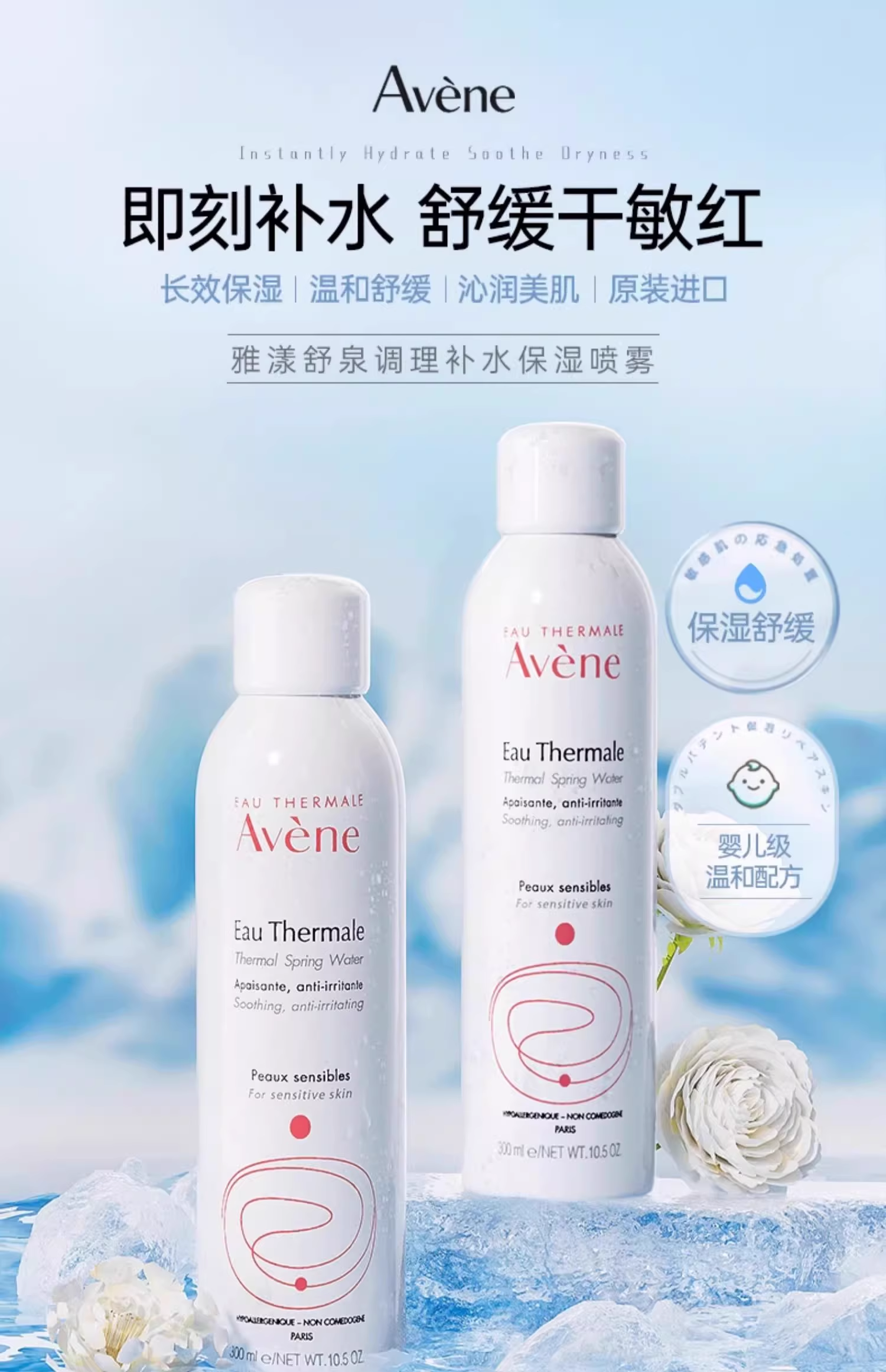 Avene/雅漾活泉水喷雾300ml/专研保湿修护面膜5片/盒
