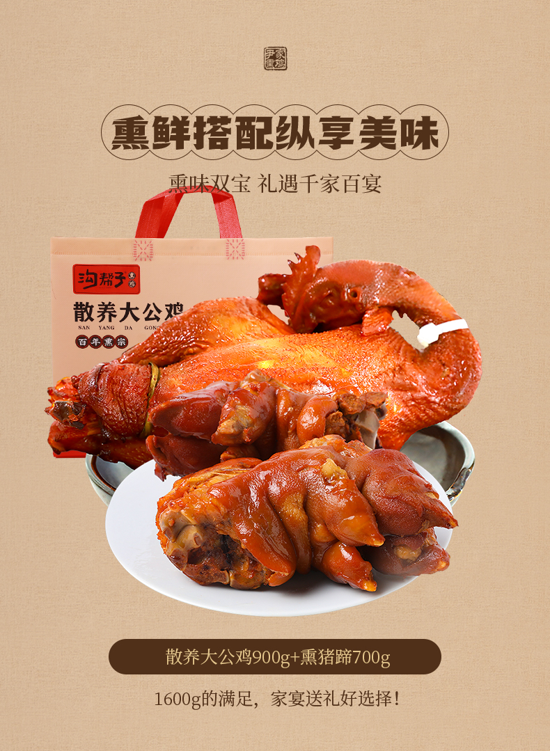 沟帮子熏鸡三宝 礼盒熏鸡700g猪蹄700g猪头肉400g