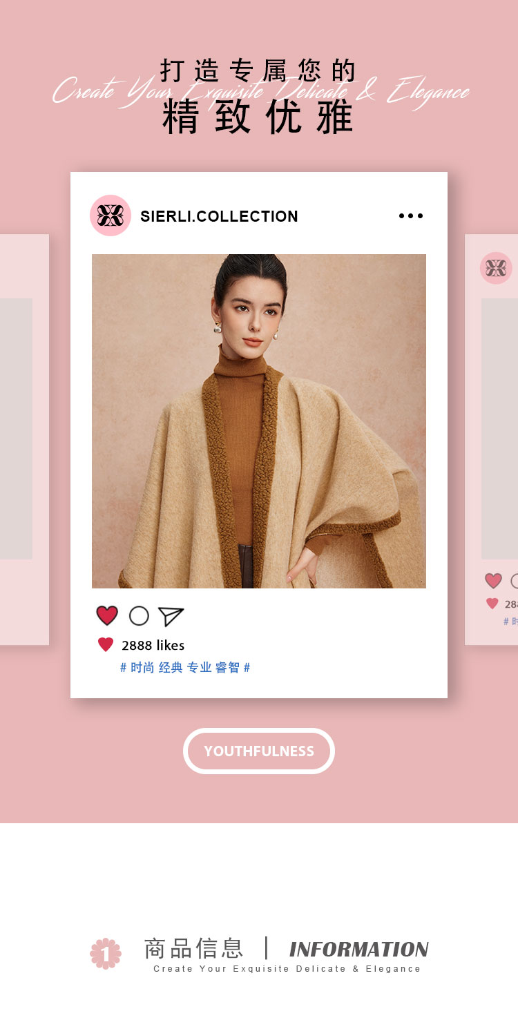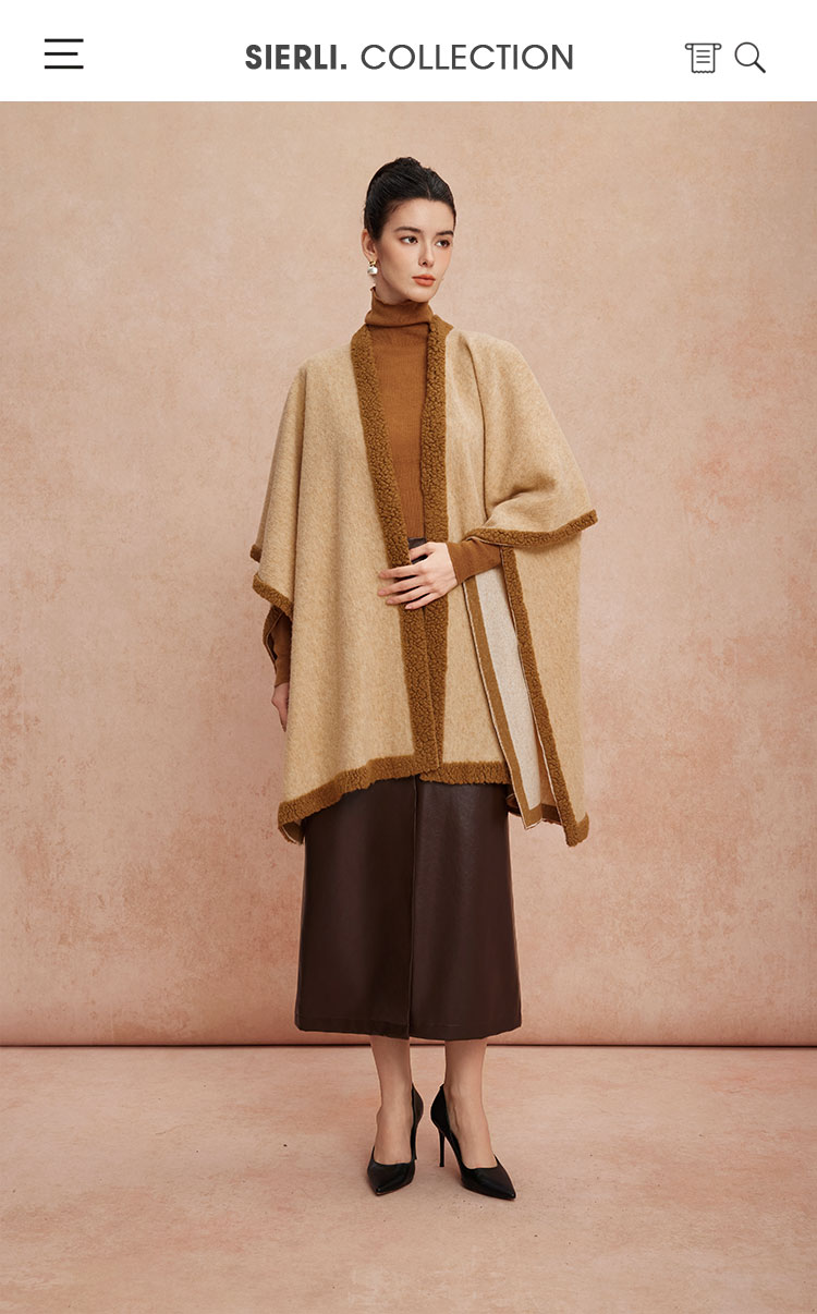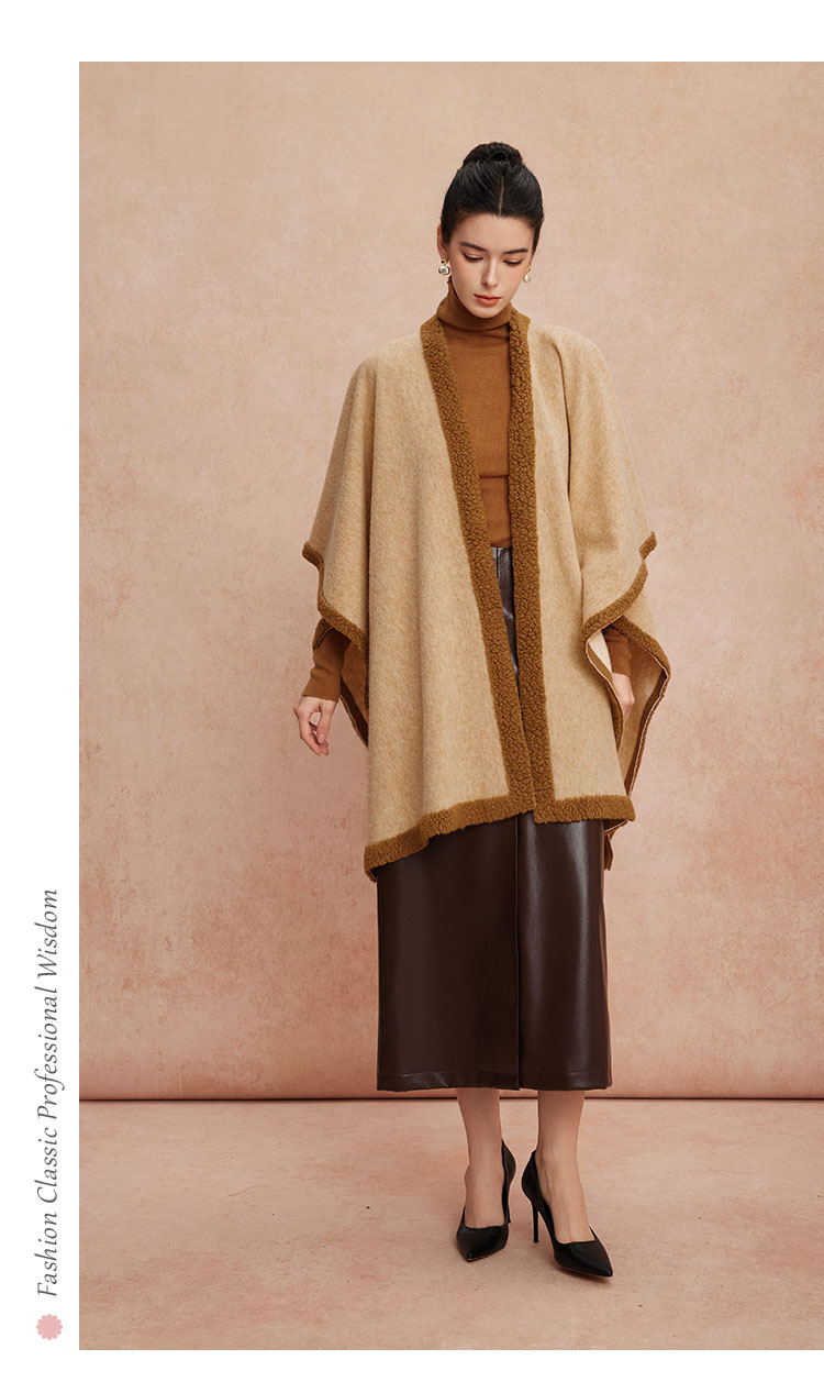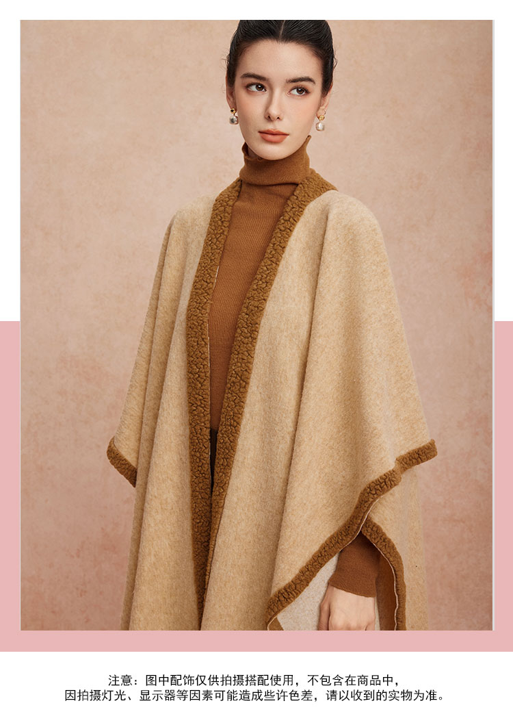 QG635斯尔丽25新款含羊毛净色秋冬高级感百搭披肩斗篷复古大气围巾