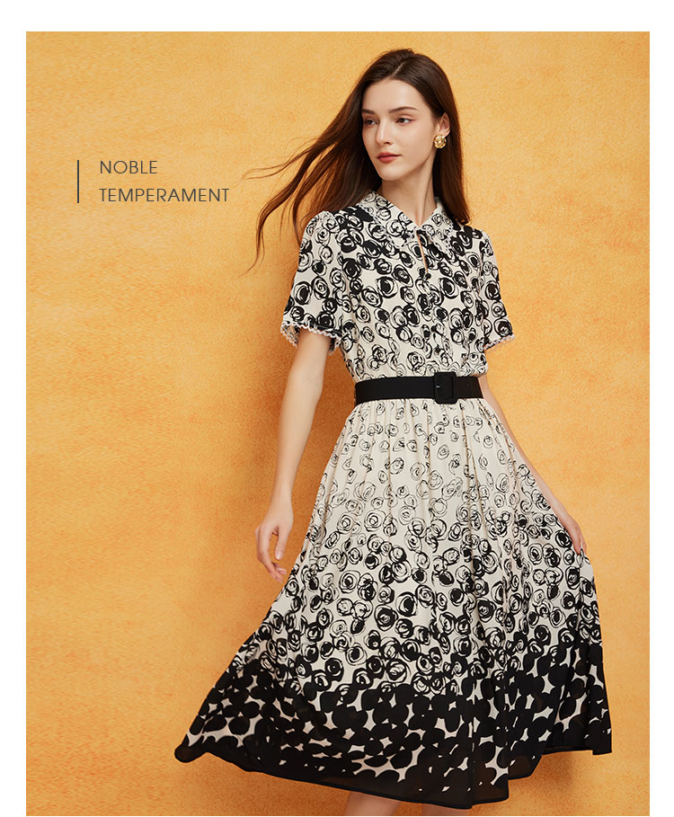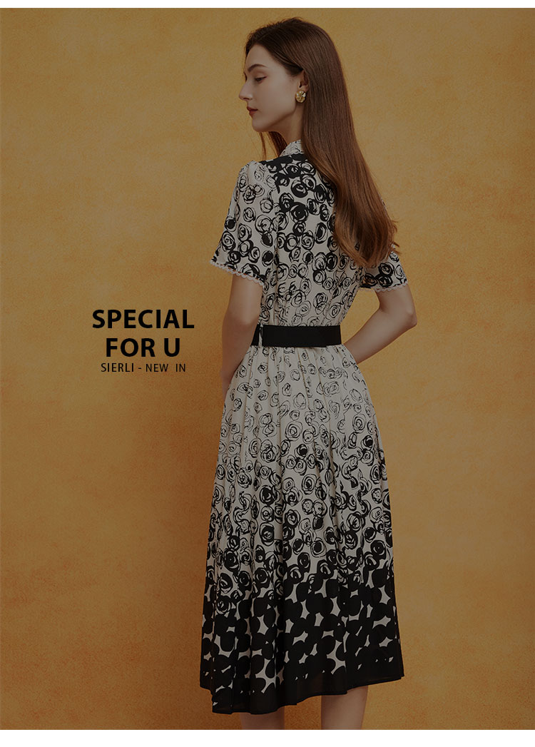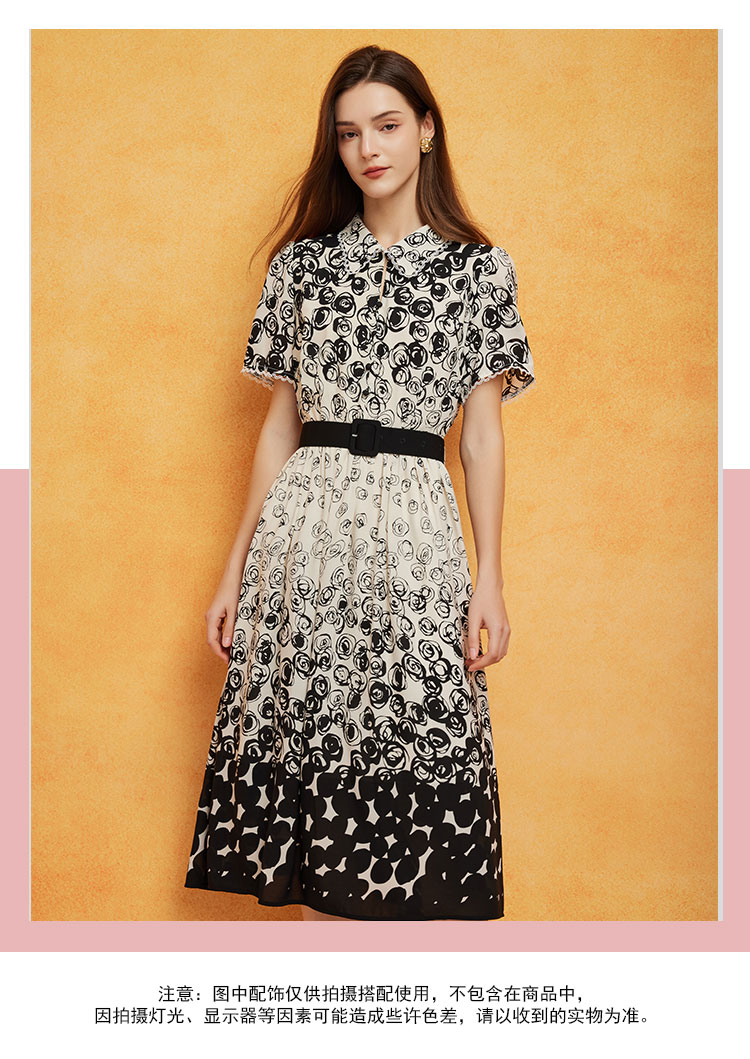PF8B5斯尔丽24新款定位花配腰带收腰放摆显高显瘦连衣裙