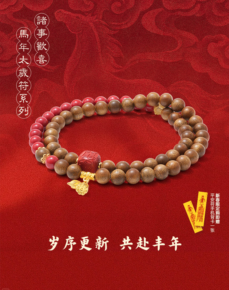 【马年太岁符 好运不打折】 钻石世家X心喜 诸事欢喜马年太岁符系列 马年太岁符朱砂沉香手串 鸿运当头 六面吉文 炽烈好运 事事顺遂【结缘定制、无质量问题不支持退换货】预计3-5天发货