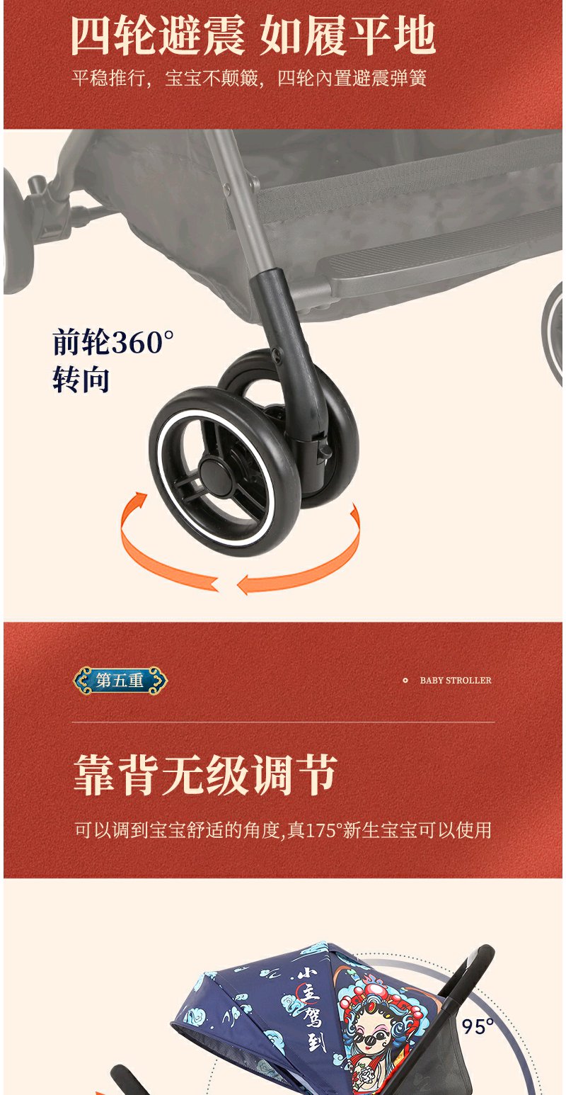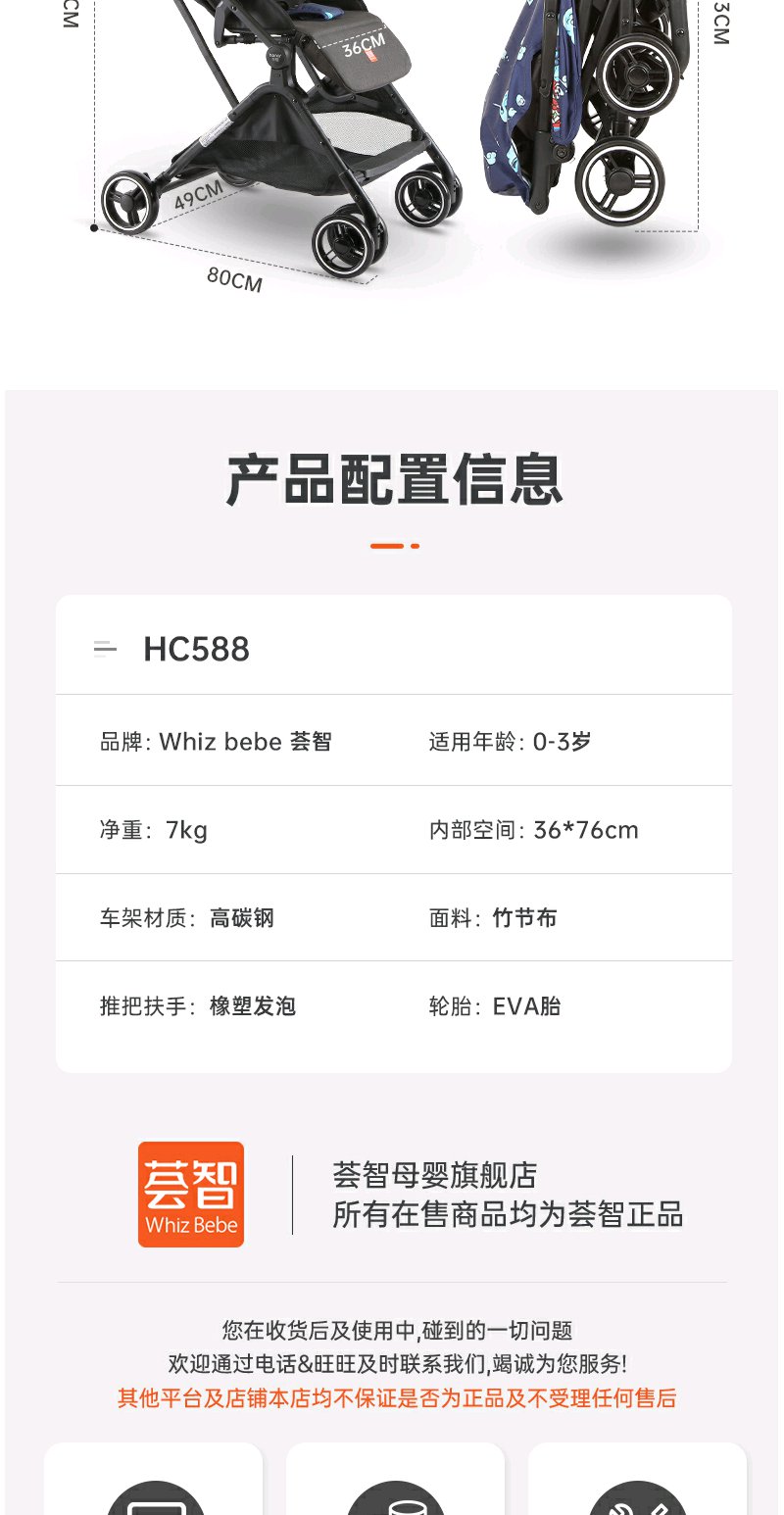 荟智婴儿推车轻便便携可坐可躺折叠高景观四轮推车HC588