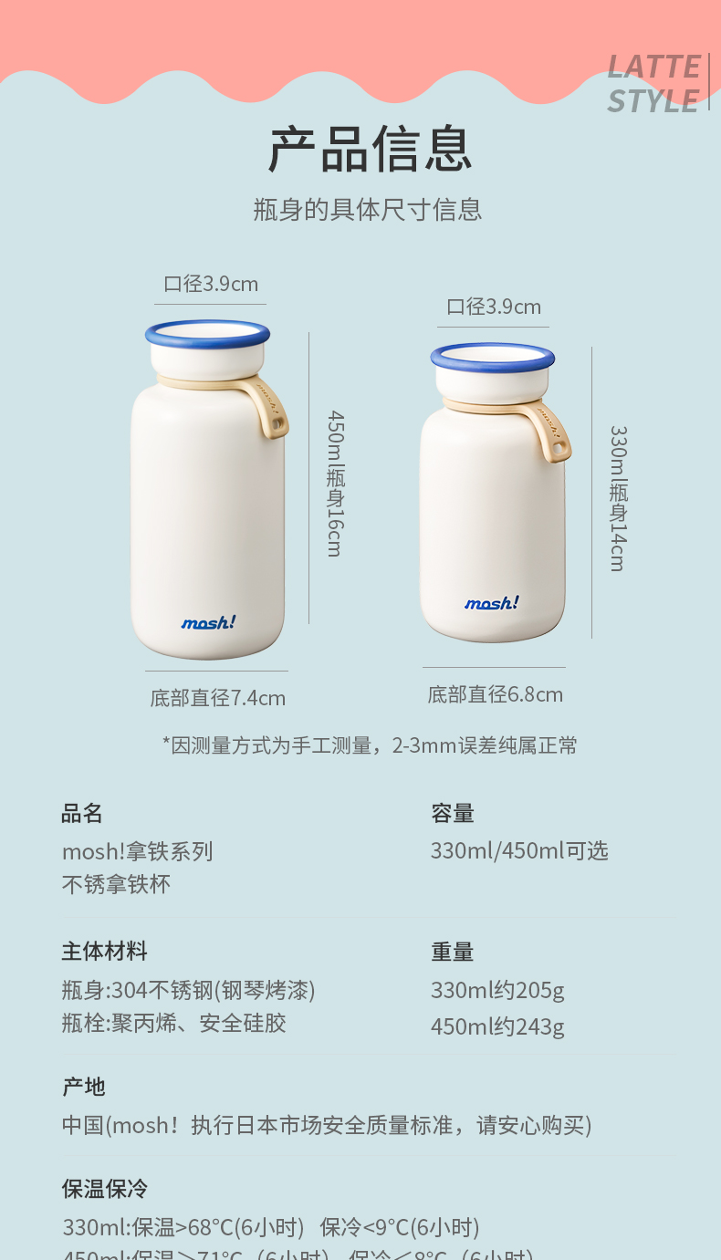 日本mosh!拿铁保温保冷杯350ml/450ml