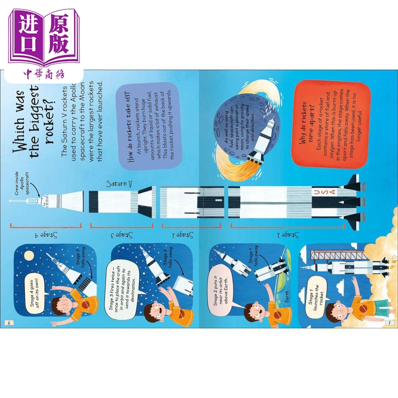 整本书都有特殊的双页,重点关注*非凡的事物。 您的孩子会着迷于令人难以置信的数字,例如 924,675 是土星五号火箭di一级使用的燃料数量,流行的“你愿意”游戏,例如进行太空行走或控制空间站,以及 你知道吗……有一辆特斯拉汽车在绕地球轨道运行。