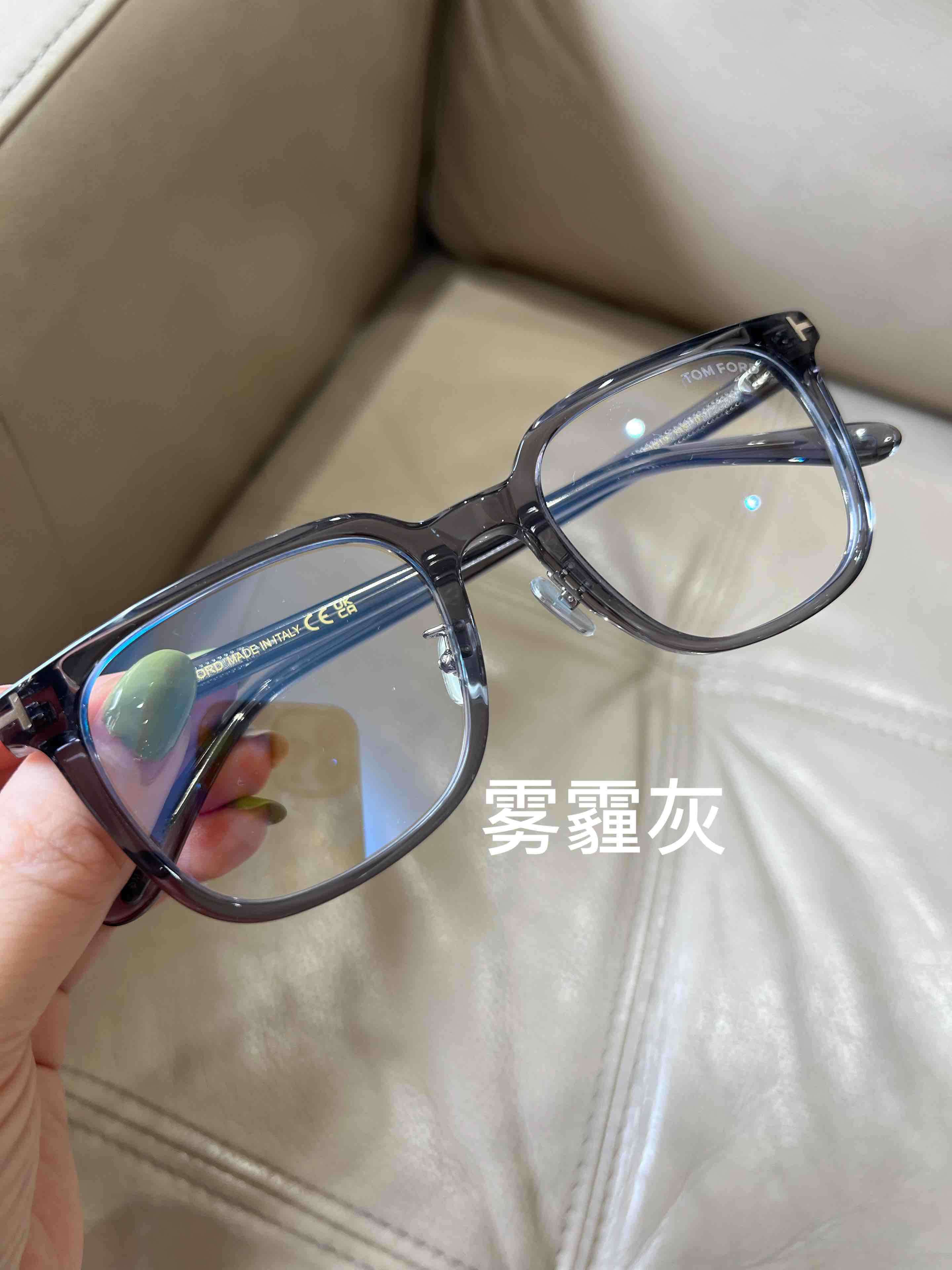 通透的灰色,我愿意称之为,雾霭灰,防蓝光眼镜,可以省了,确实带着看电脑眼镜会舒适许多。可以做防蓝光眼镜,可以做素颜镜框,也可以自己换近视镜片,这个我自留了,鼻托的位置够高,因此刷了夸张眼睫毛的姑娘,也不会戳到。