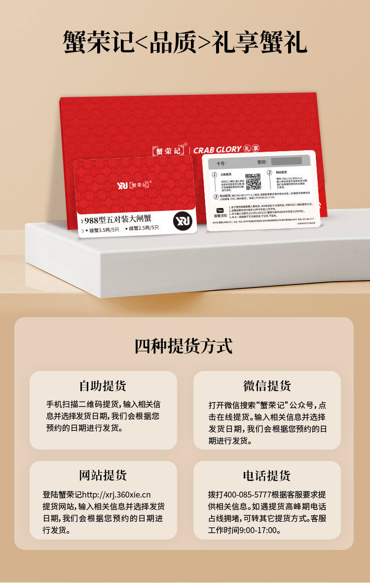 5对装|蟹荣记阳澄湖大闸蟹礼品卡券 798型 | 988型 | 1188型 | 1998型 | 2798型 A-464-469